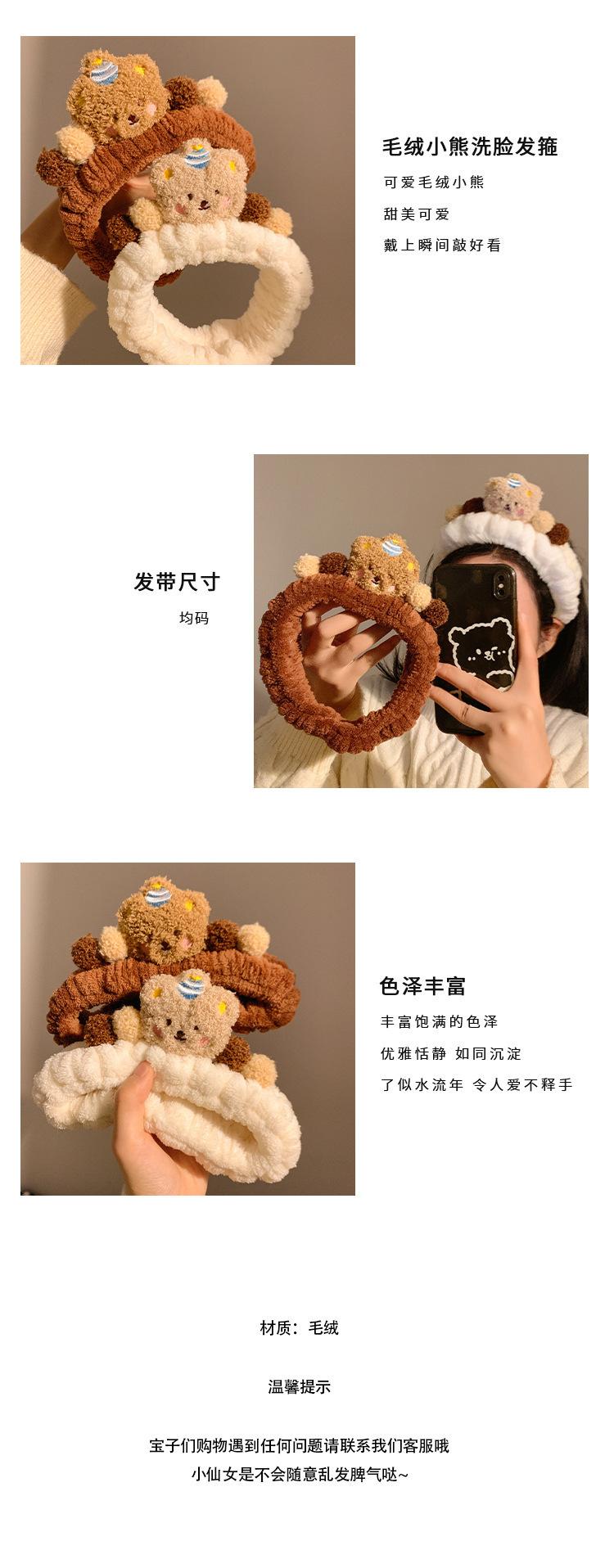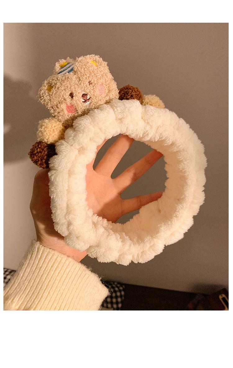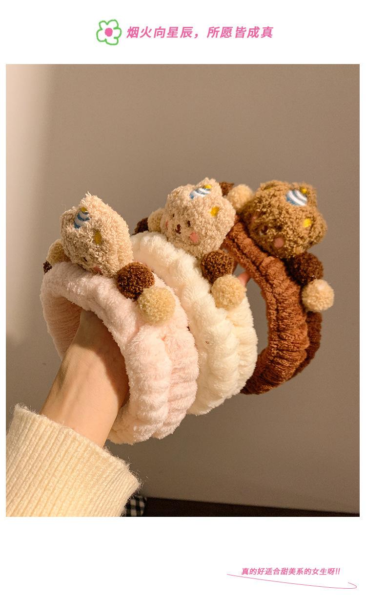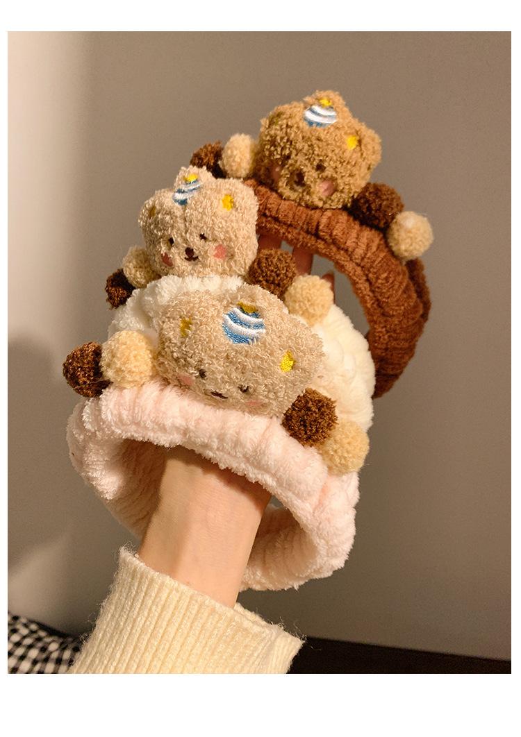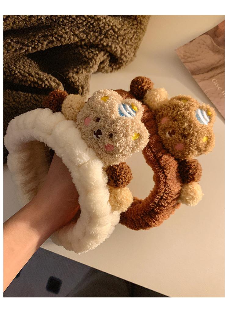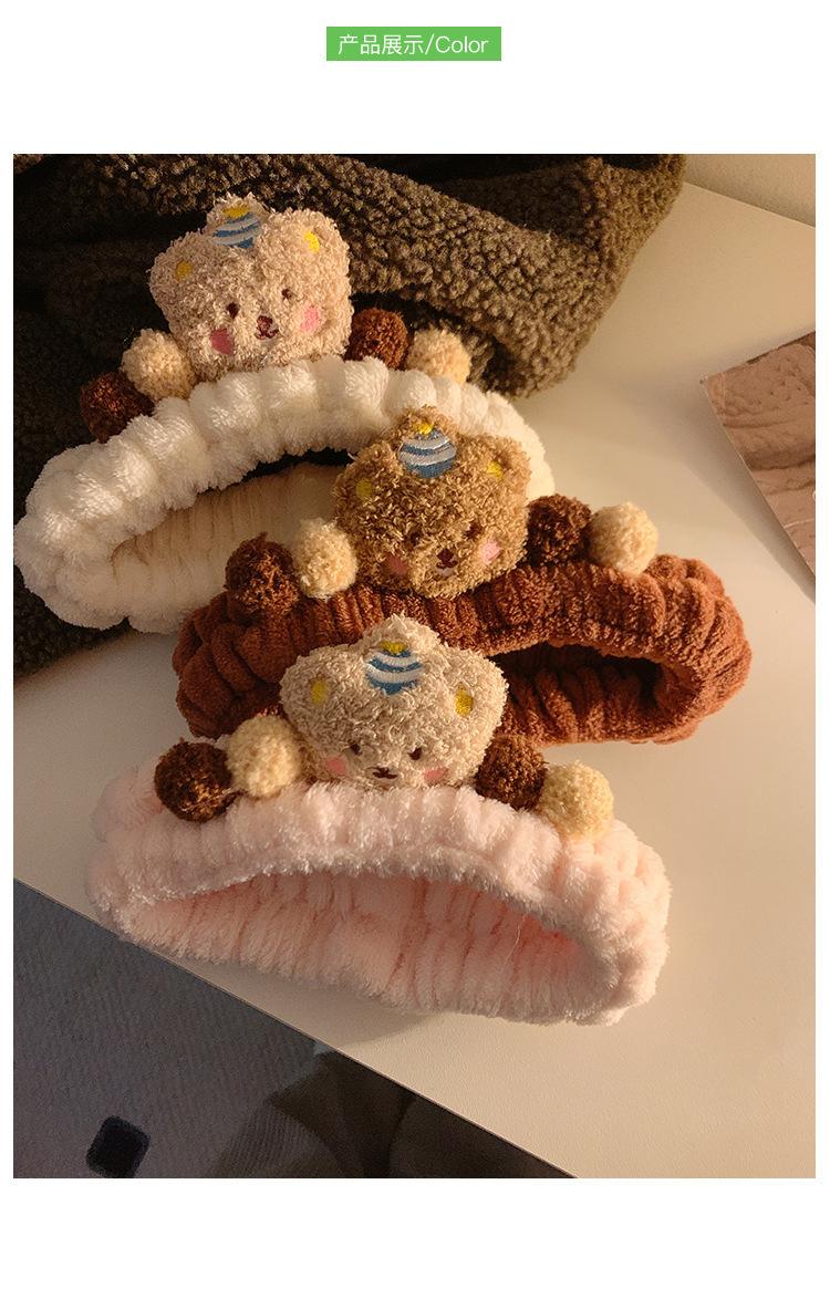 Nueva banda para el cabello de oso marrón de dibujos animados, banda para el cabello de felpa para lavarse la cara, maquillaje, aplicar mascarilla, banda para el cabello de otoño e invierno, diadema para mujer