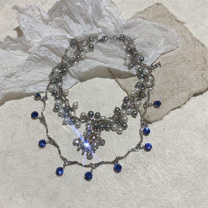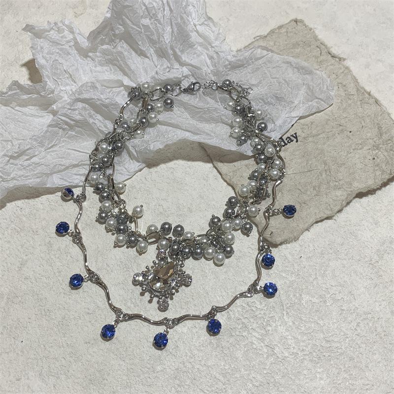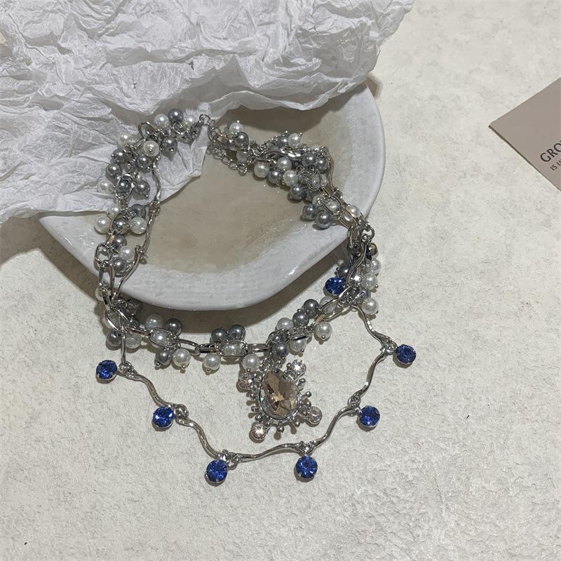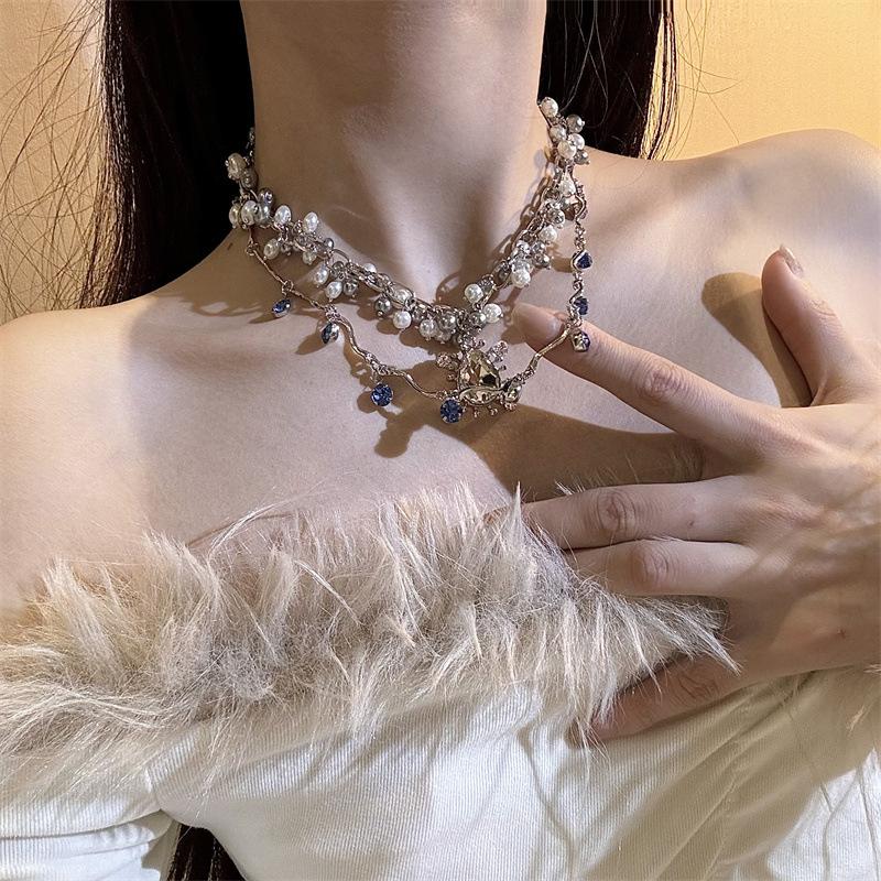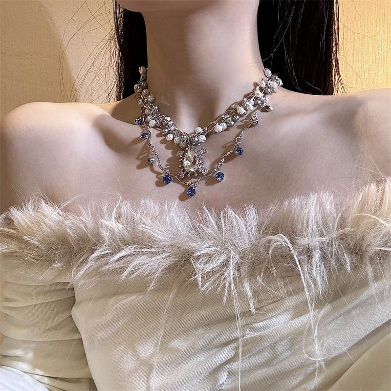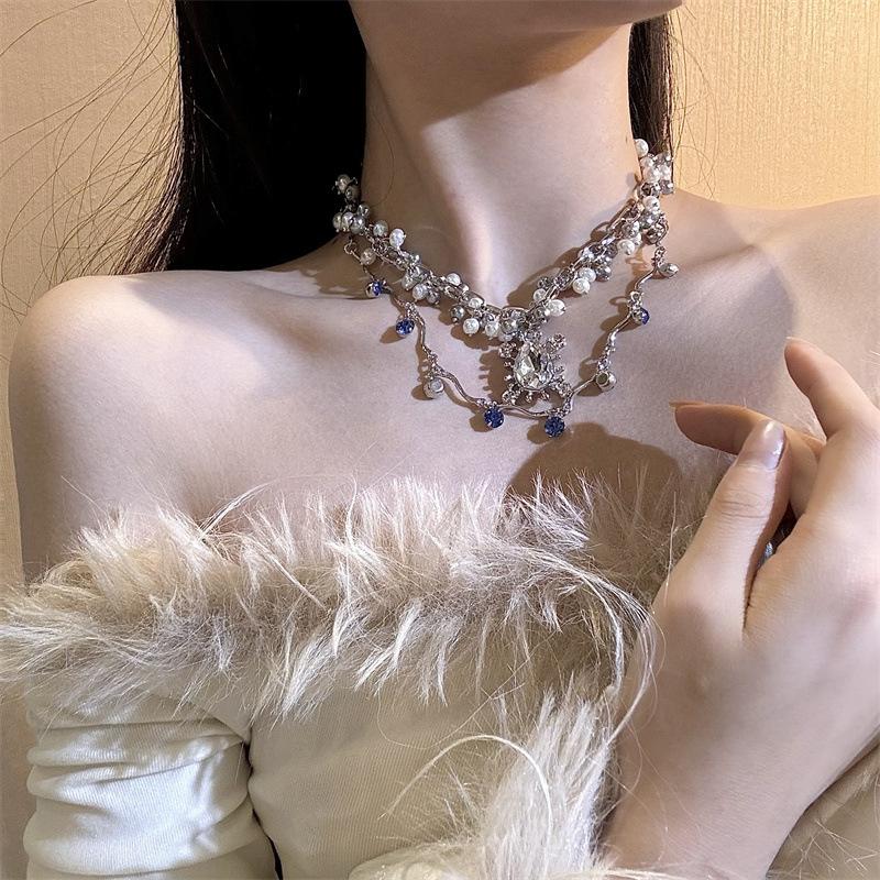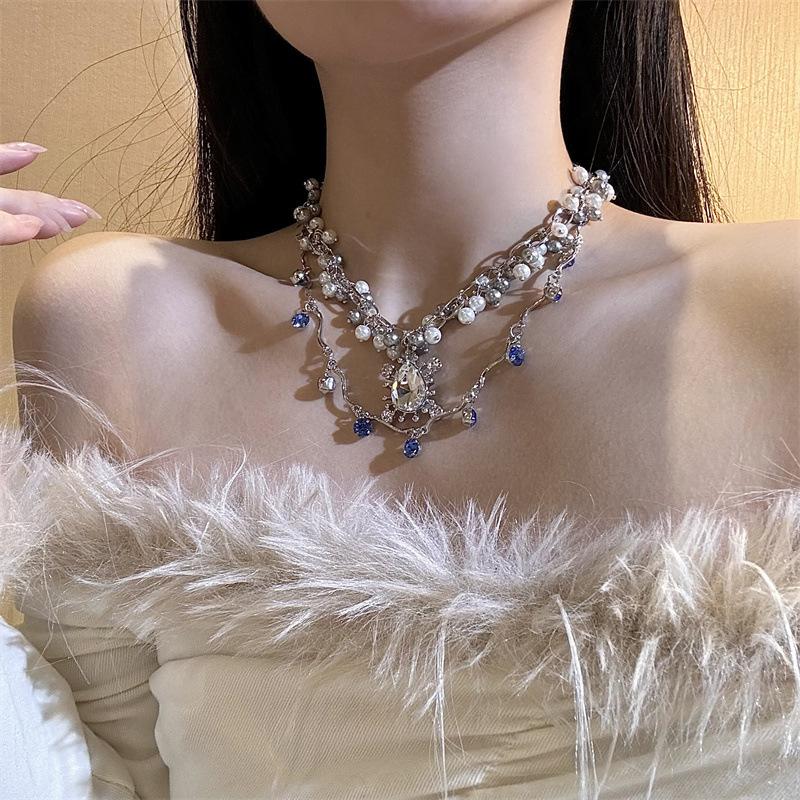 Collar de perlas y diamantes con forma de gota de agua, estilo corte francés, elegante y moderno collar con cadena de clavícula para mujer.
