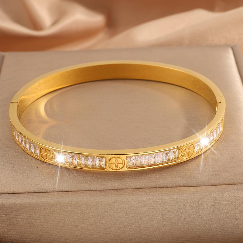 Nueva pulsera de cruz de diamantes estrella de moda europea y americana, nicho de lujo ligero de alta gama para mujer, joyería de pulsera de acero de titanio