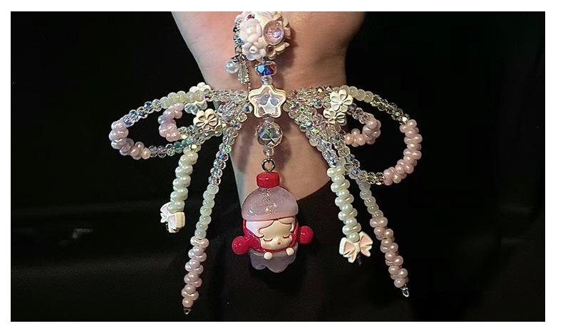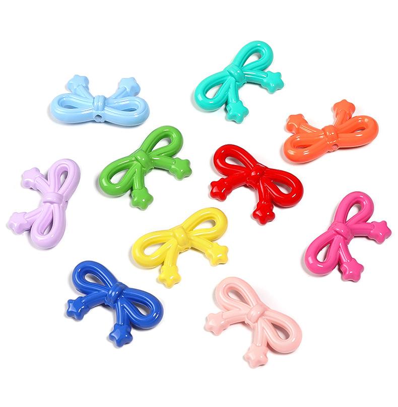 Lazo de estrella de color macarrón con agujero vertical, cuentas acrílicas para llavero, cadena para teléfono móvil, accesorios para bricolaje