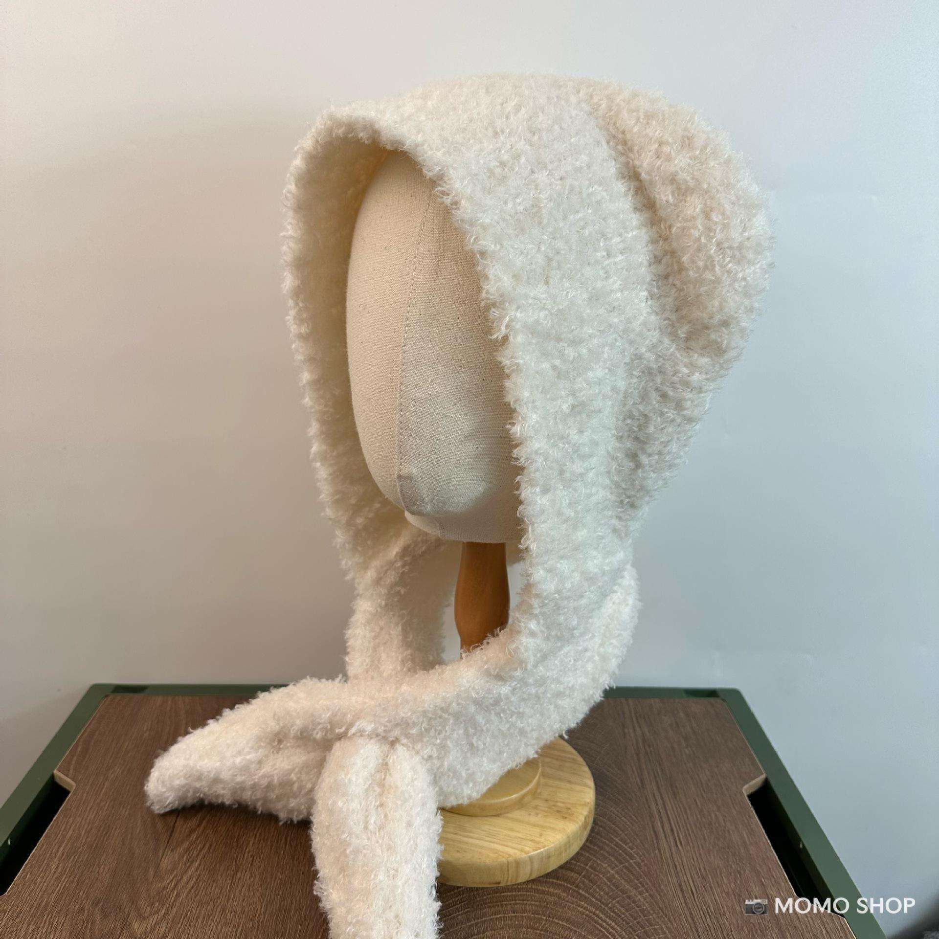 Gorro y bufanda de felpa con orejas de oso para mujer, de una pieza, para ciclismo de invierno, grueso y cálido, con protección para las orejas, tejido Lei Feng.