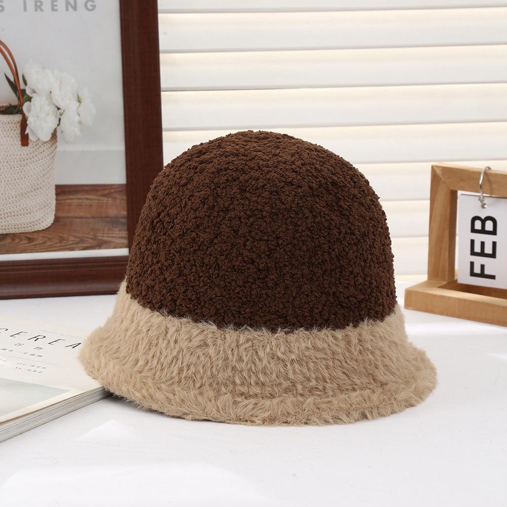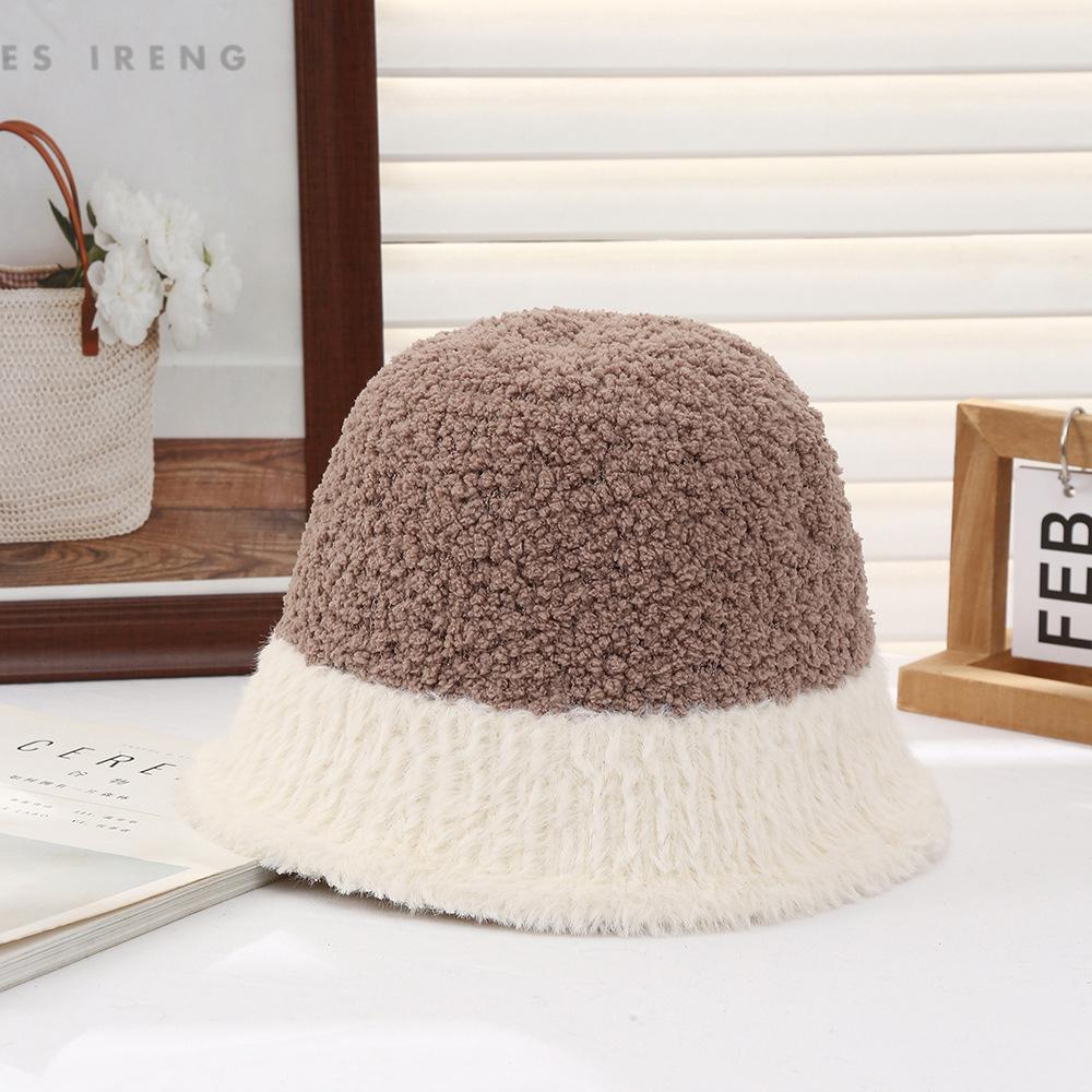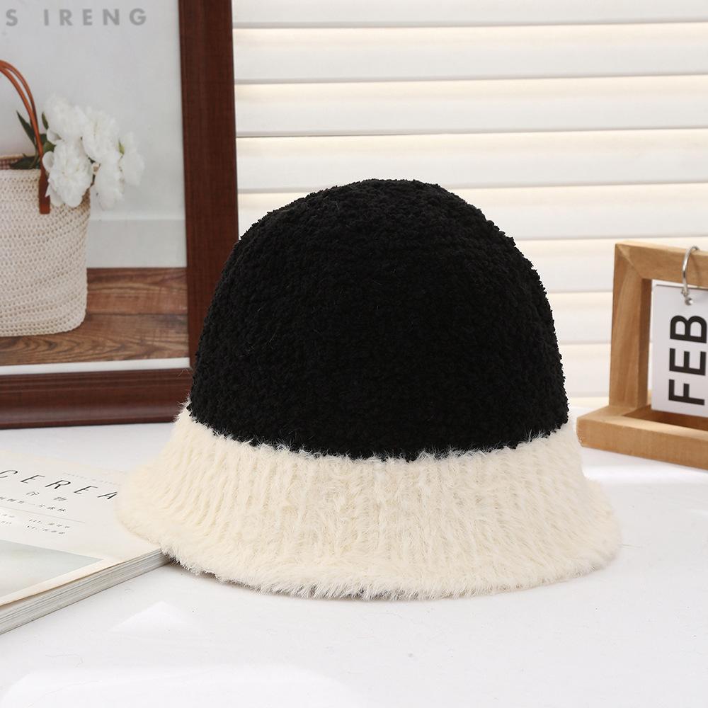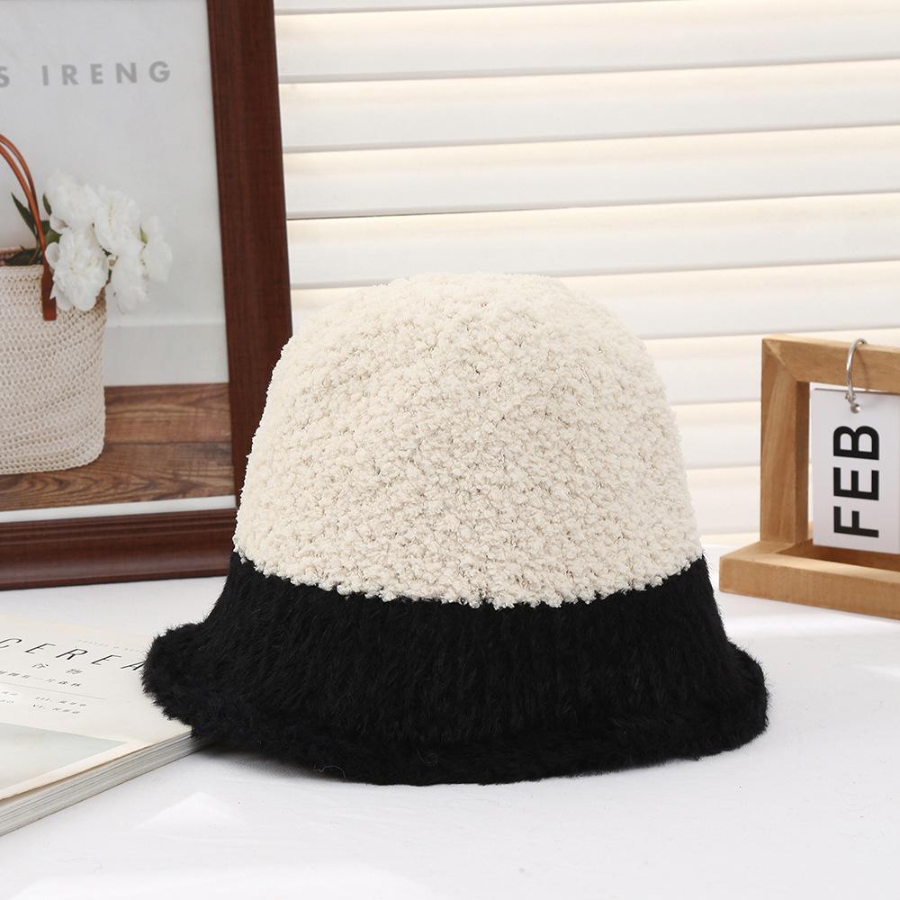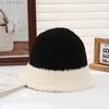Sombrero de Cubo Bicolor Estilo Coreano Invierno Sombrero Grueso Cálido de Felpa Nuevo Color de Contraste Moda Sombrero de Pescador Tejido para Mujer