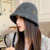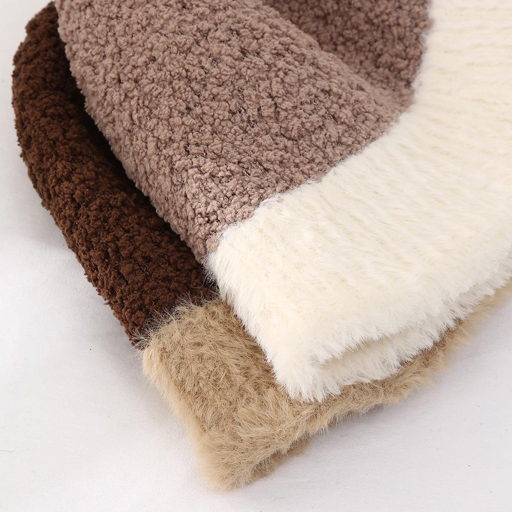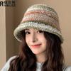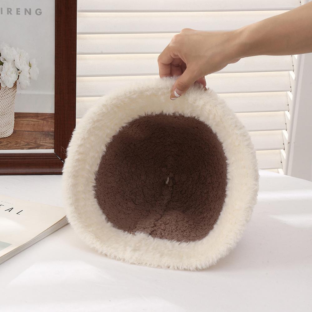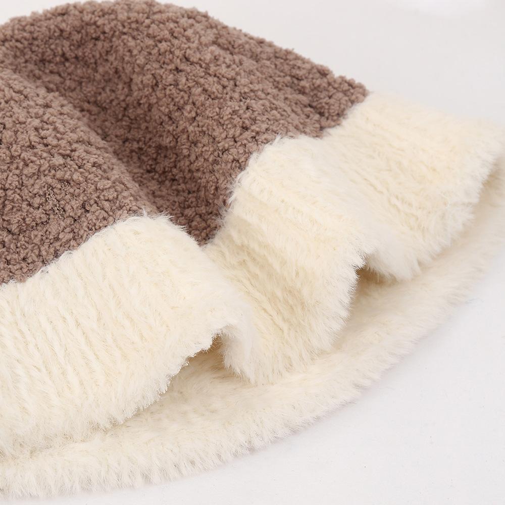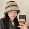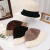 Sombrero de Cubo Bicolor Estilo Coreano Invierno Sombrero Grueso Cálido de Felpa Nuevo Color de Contraste Moda Sombrero de Pescador Tejido para Mujer