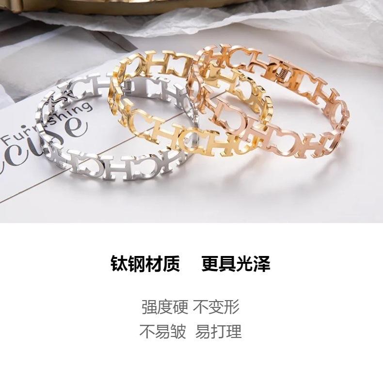 Nueva Pulsera Hueca de Acero de Titanio para Mujer Moda de Alta Gama Sentido Personalizado Pulsera Nicho Lujo Ligero Sin Color Todo Combinable Joyería