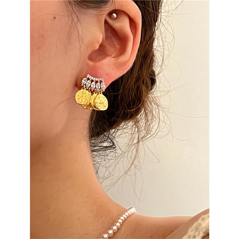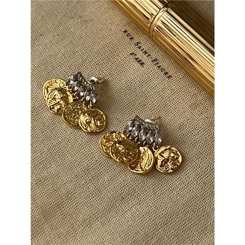 Compra Pendientes de Borla con Gota de Diamante Redondo Plisado Aguja de Plata Pendientes de Lujo Accesible Retro Francés Pendientes Simples de Moda al por mayor en Joom.pro