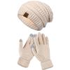 Sombrero de Lana Tejido de Moda de Invierno Más Caliente de Amazon Sombrero Cálido para Mujer Guantes Conjunto de Dos Piezas Sombrero para el Frío de Terciopelo Grueso