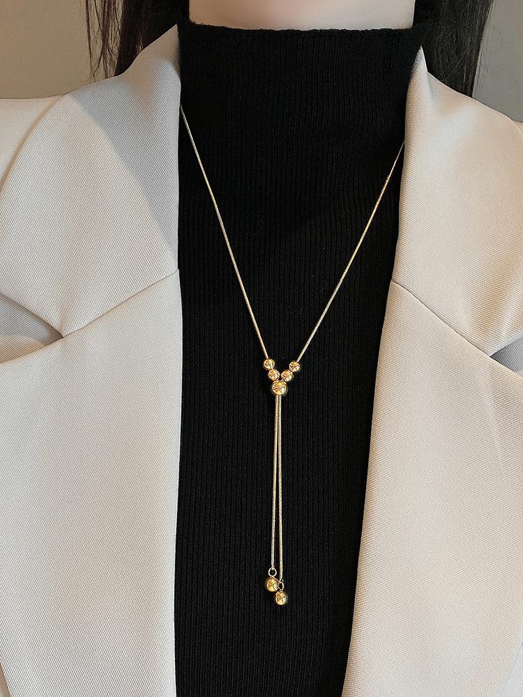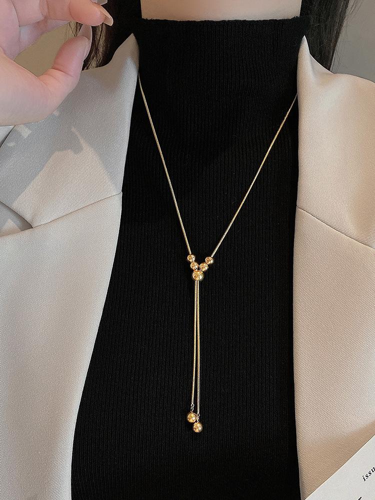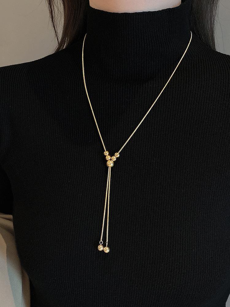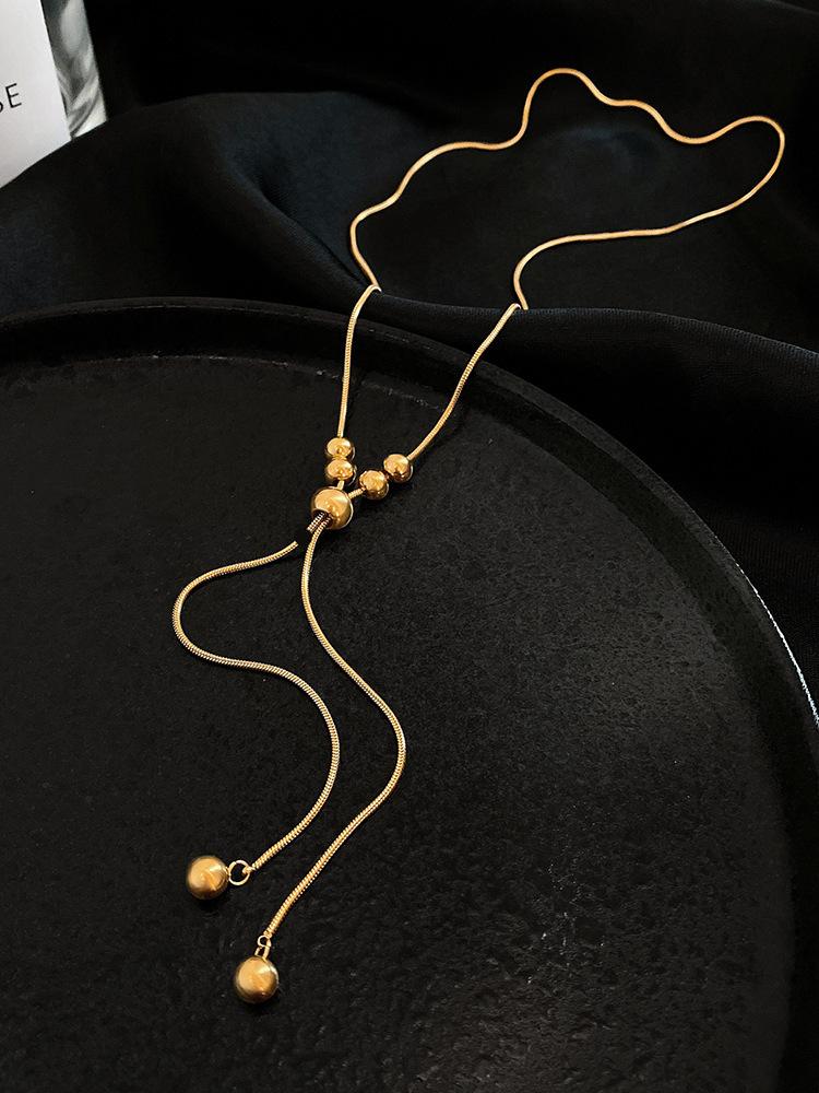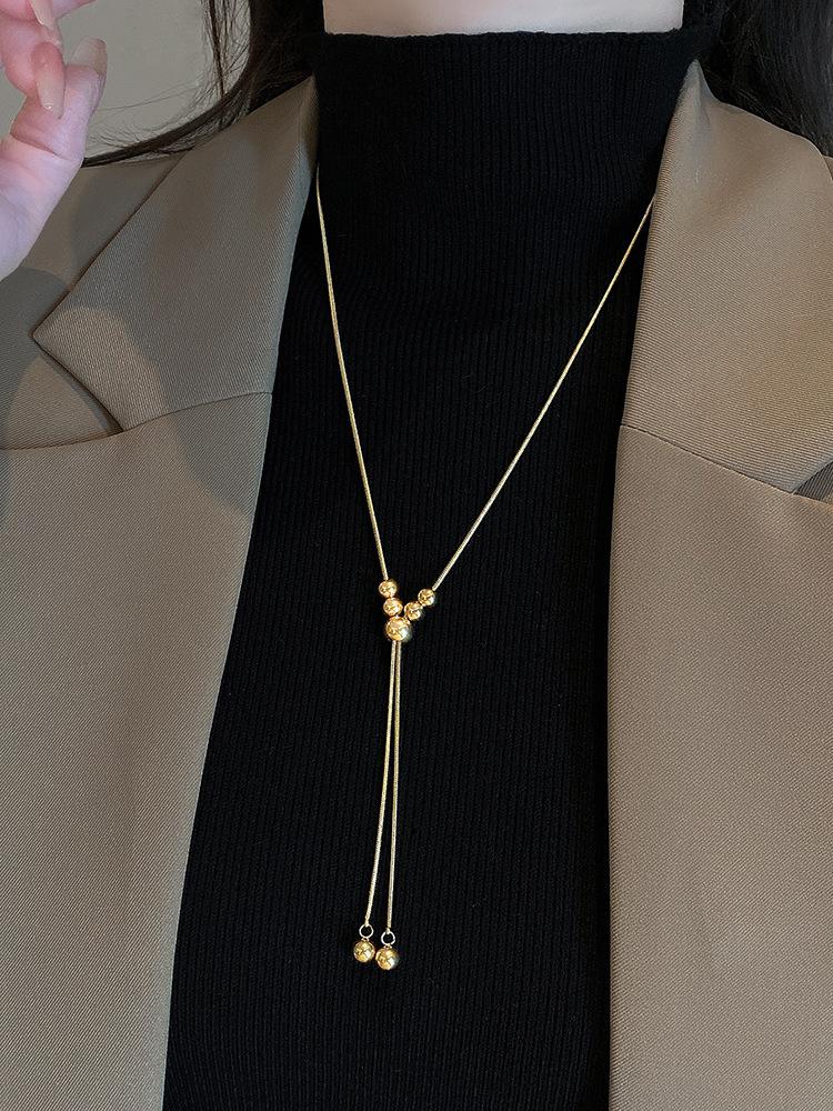 Collar largo con colgante de hueso de serpiente, de acero de titanio, resistente a la decoloración, con cuentas redondas de oro y plata, ajustable, ideal para novias y mujeres.