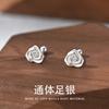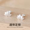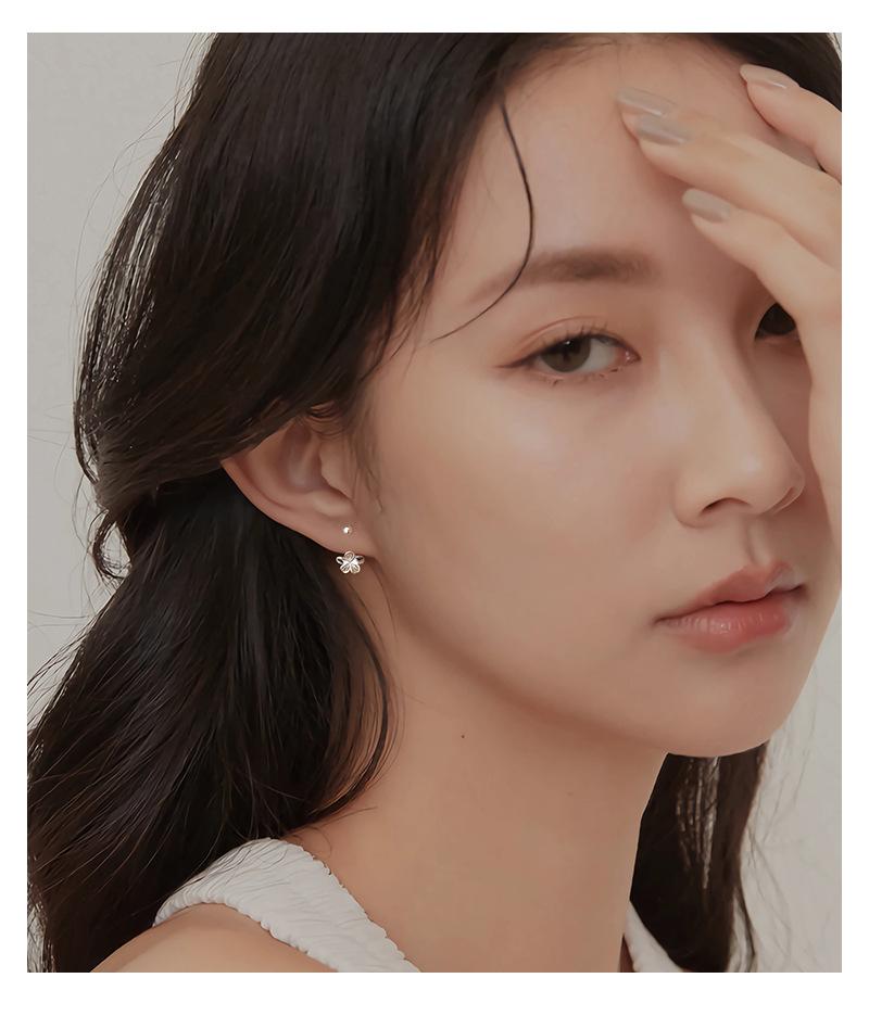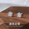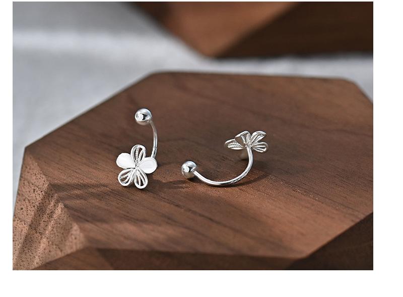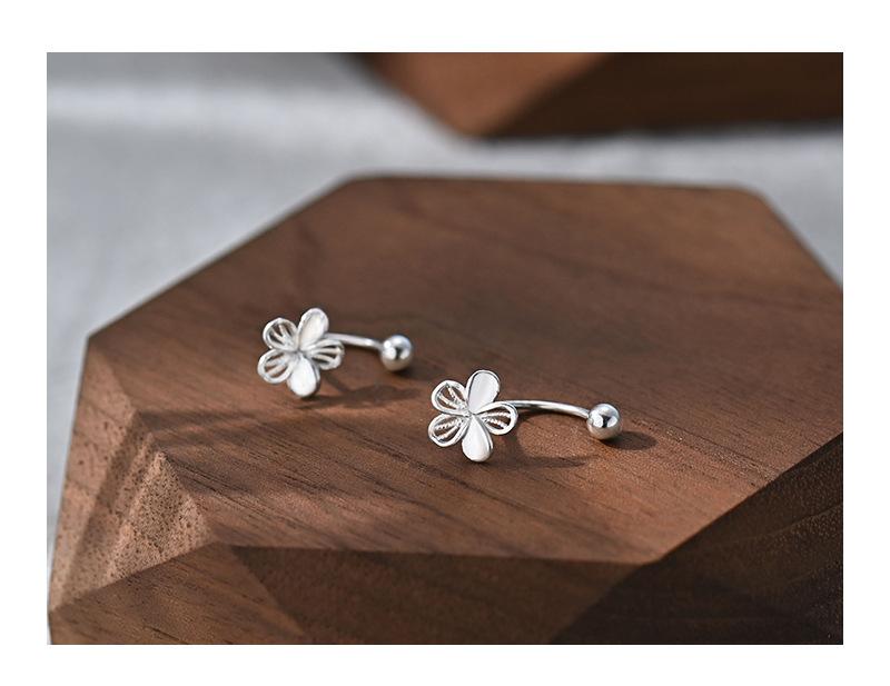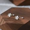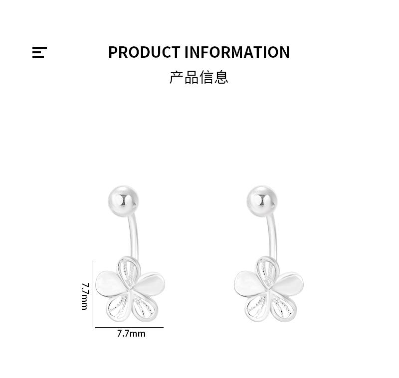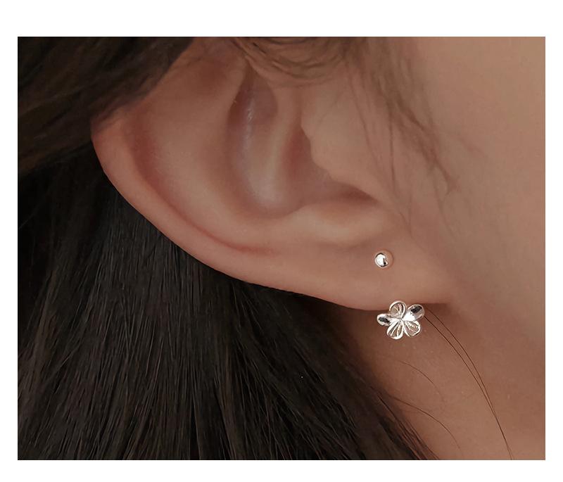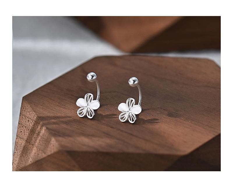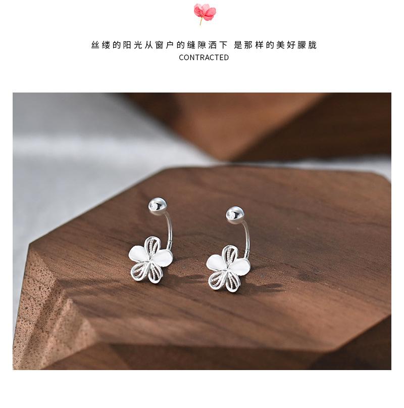 Aretes de Flores para Mujer Plata S999 Simples, Exquisitos y Compactos Aretes para Perforación de Oreja Tornillos Colgantes Traseros