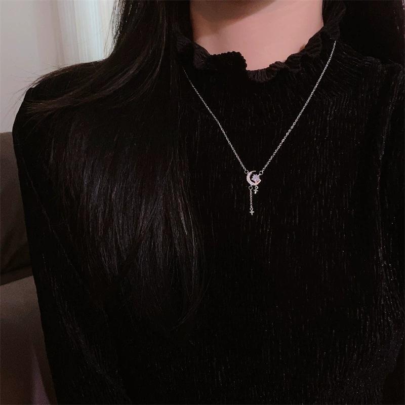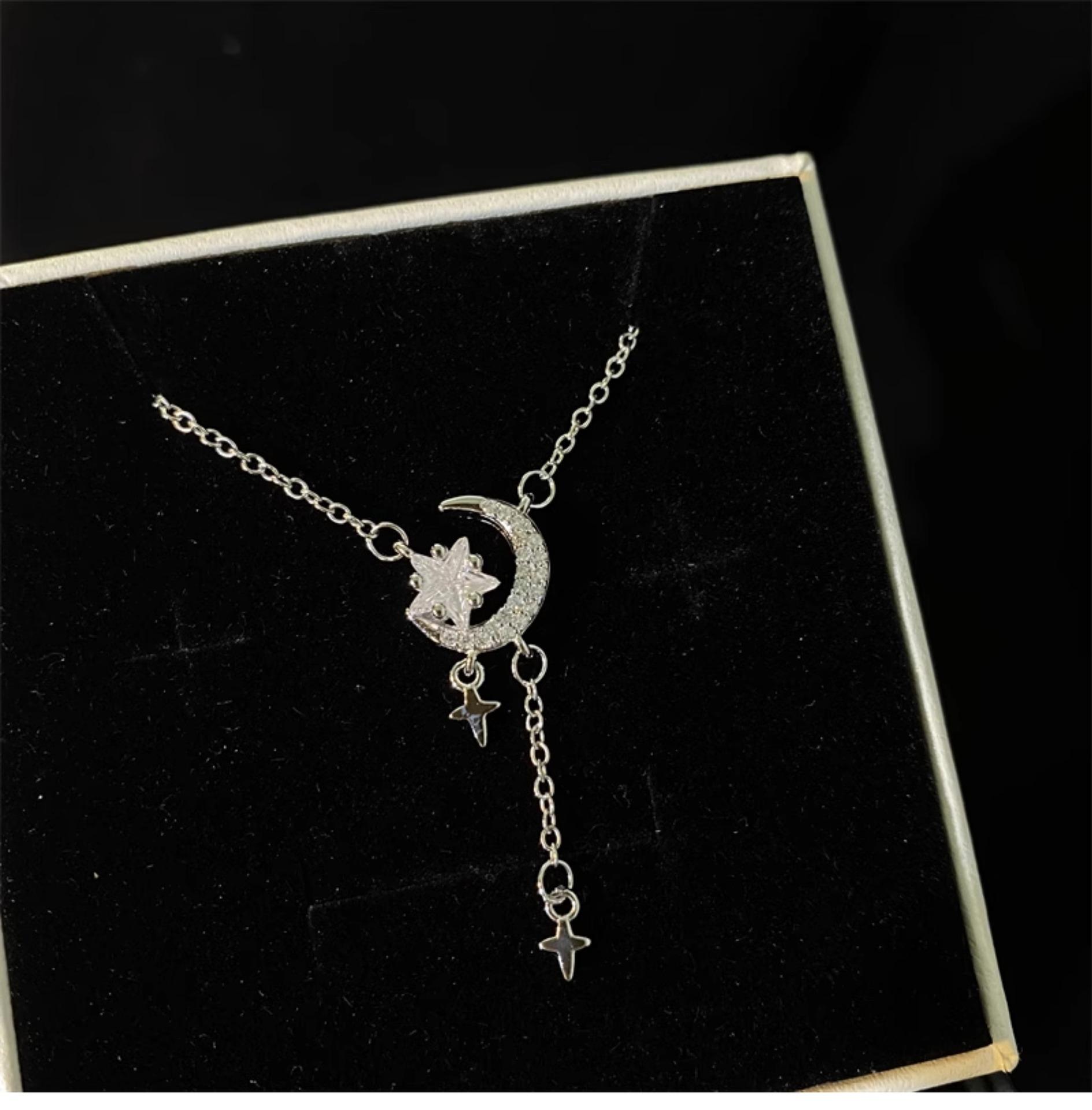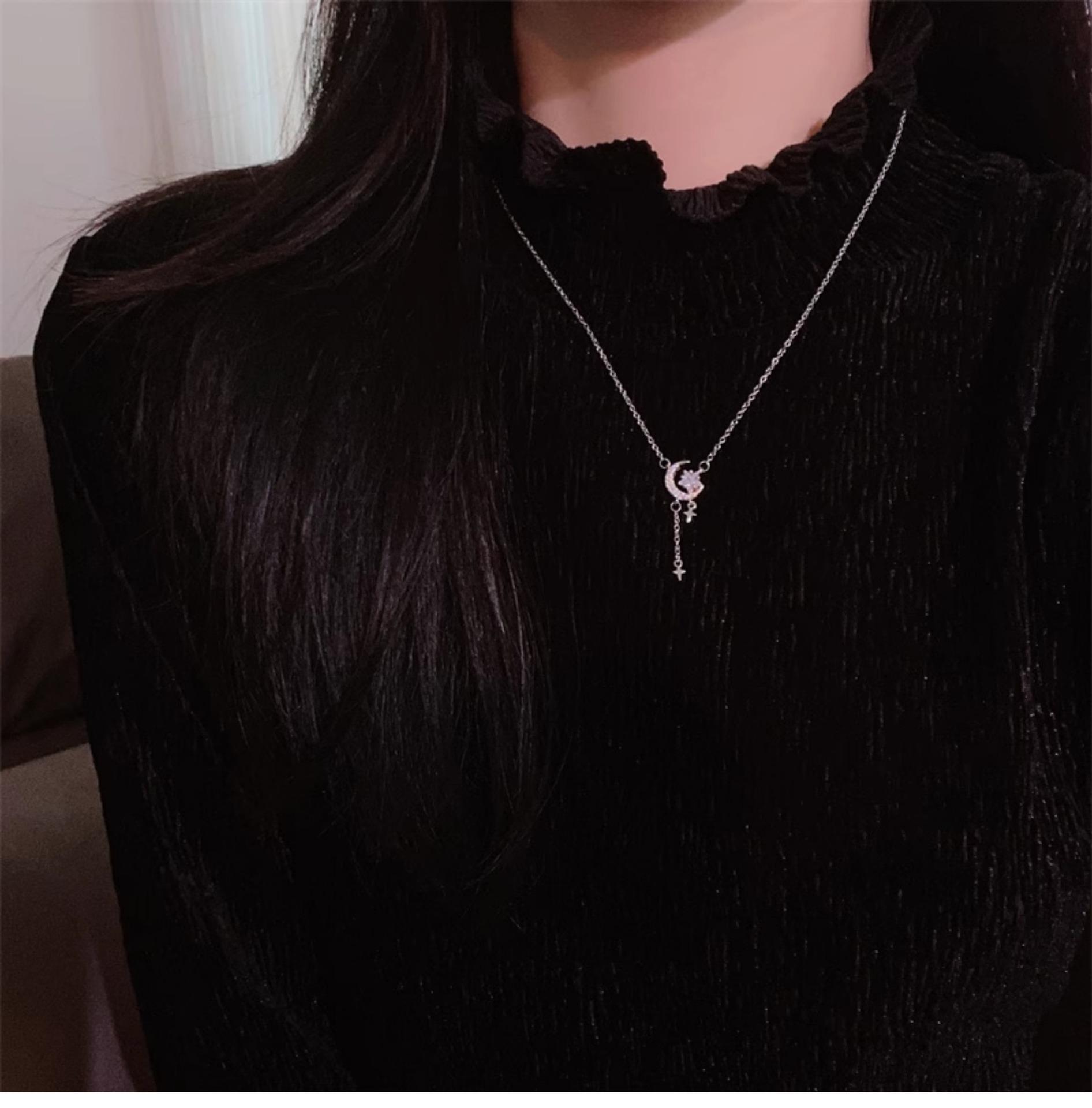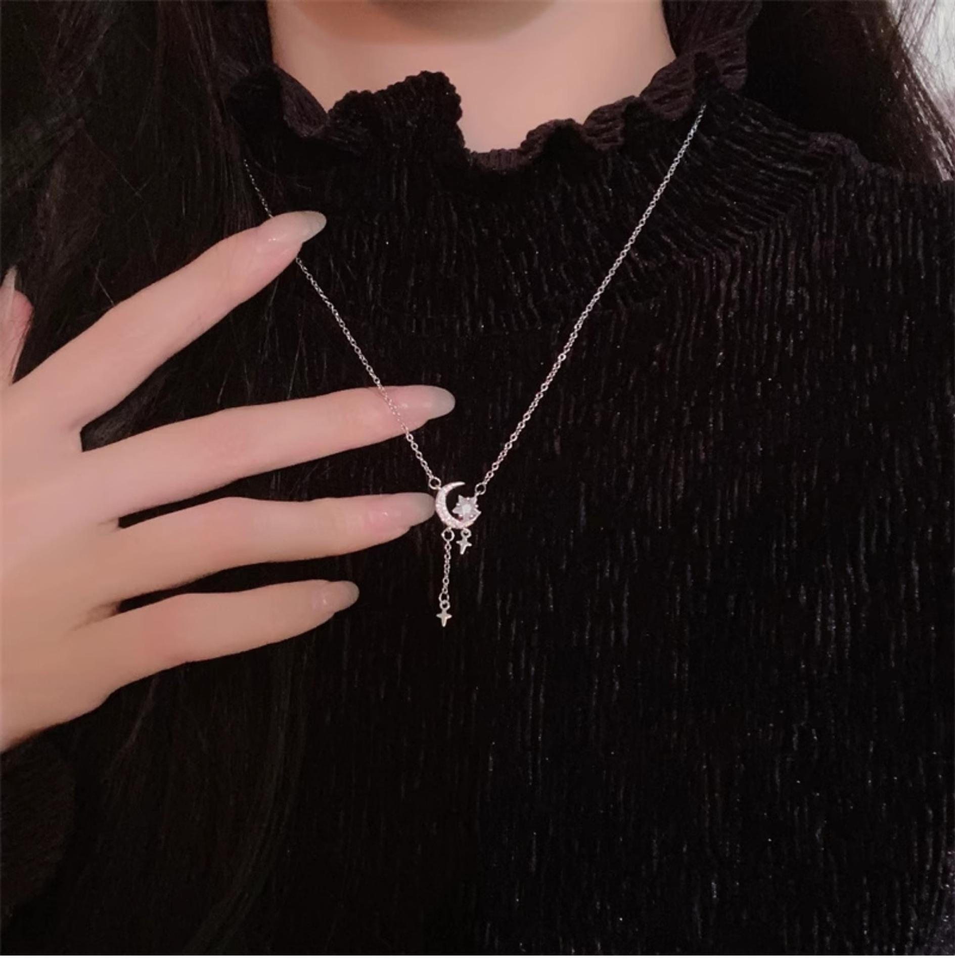 Collar de Borla de Estrella y Luna para Mujer 2025 Nuevo Diseño Nicho de Lujo Ligero Acero de Titanio de Alta Gama Inoxidable Cadena Clavicular Venta al por Mayor