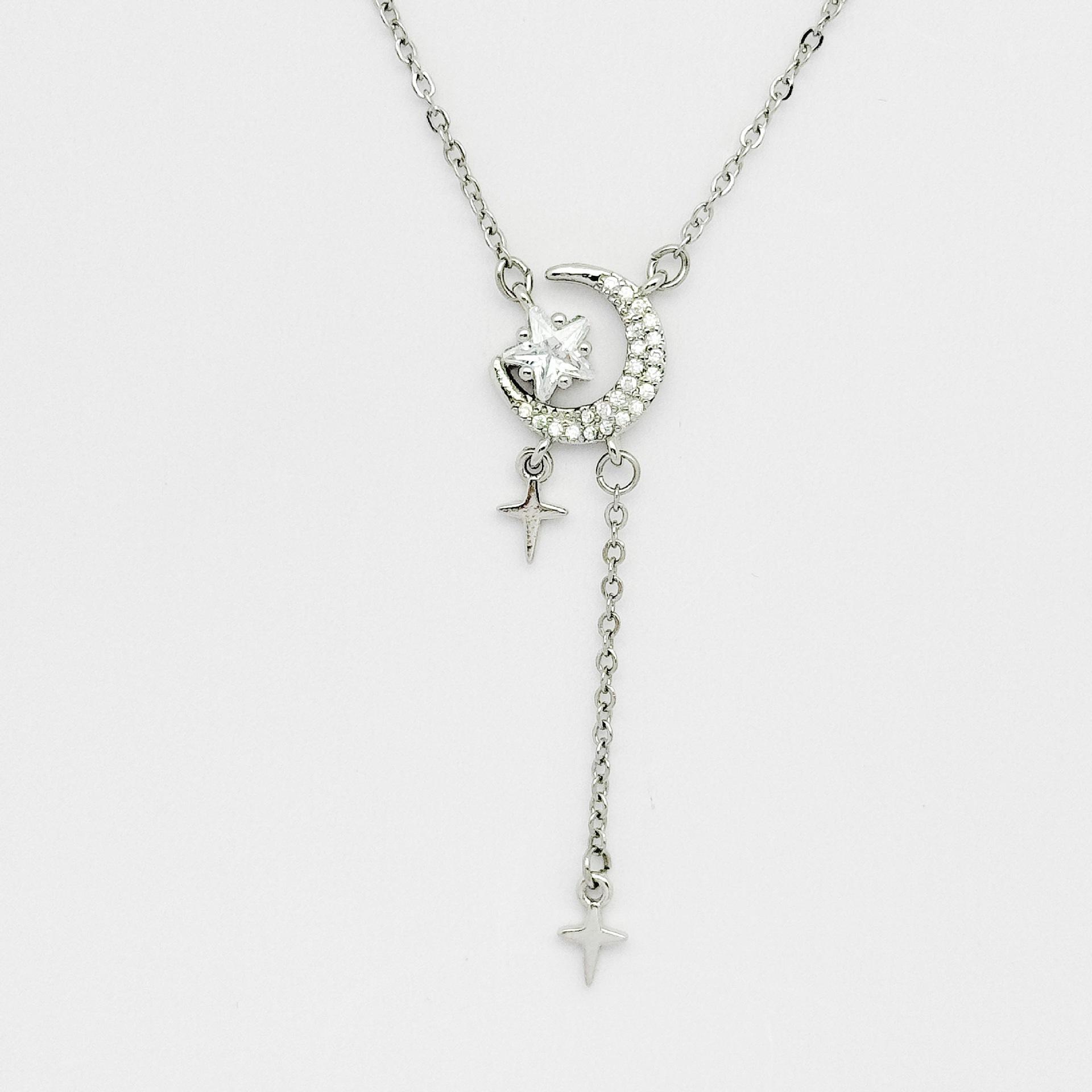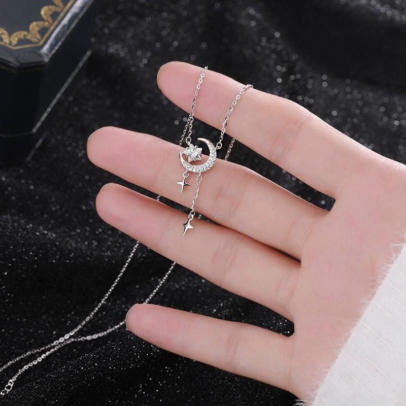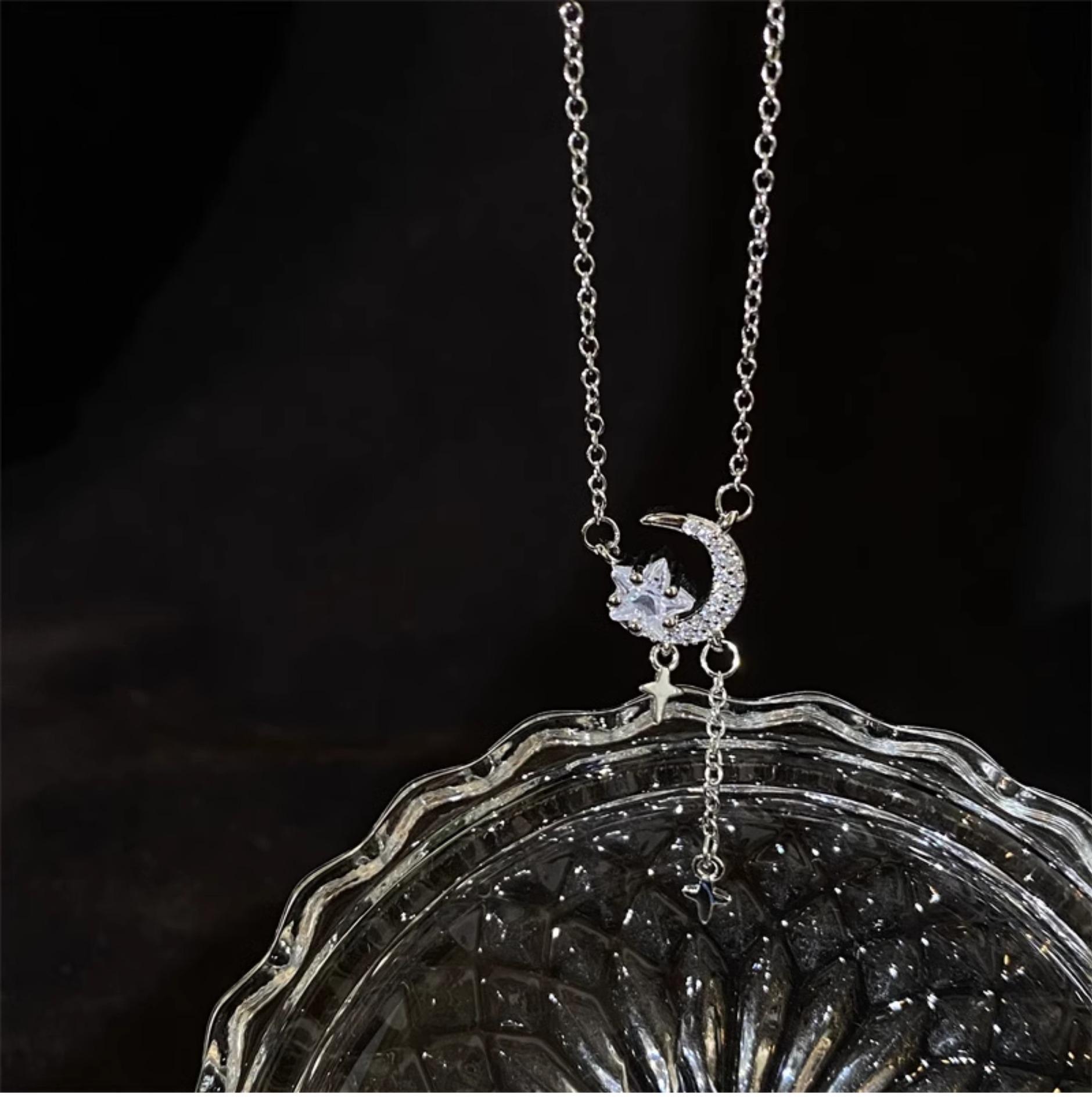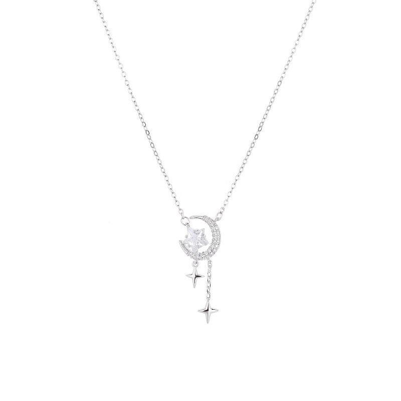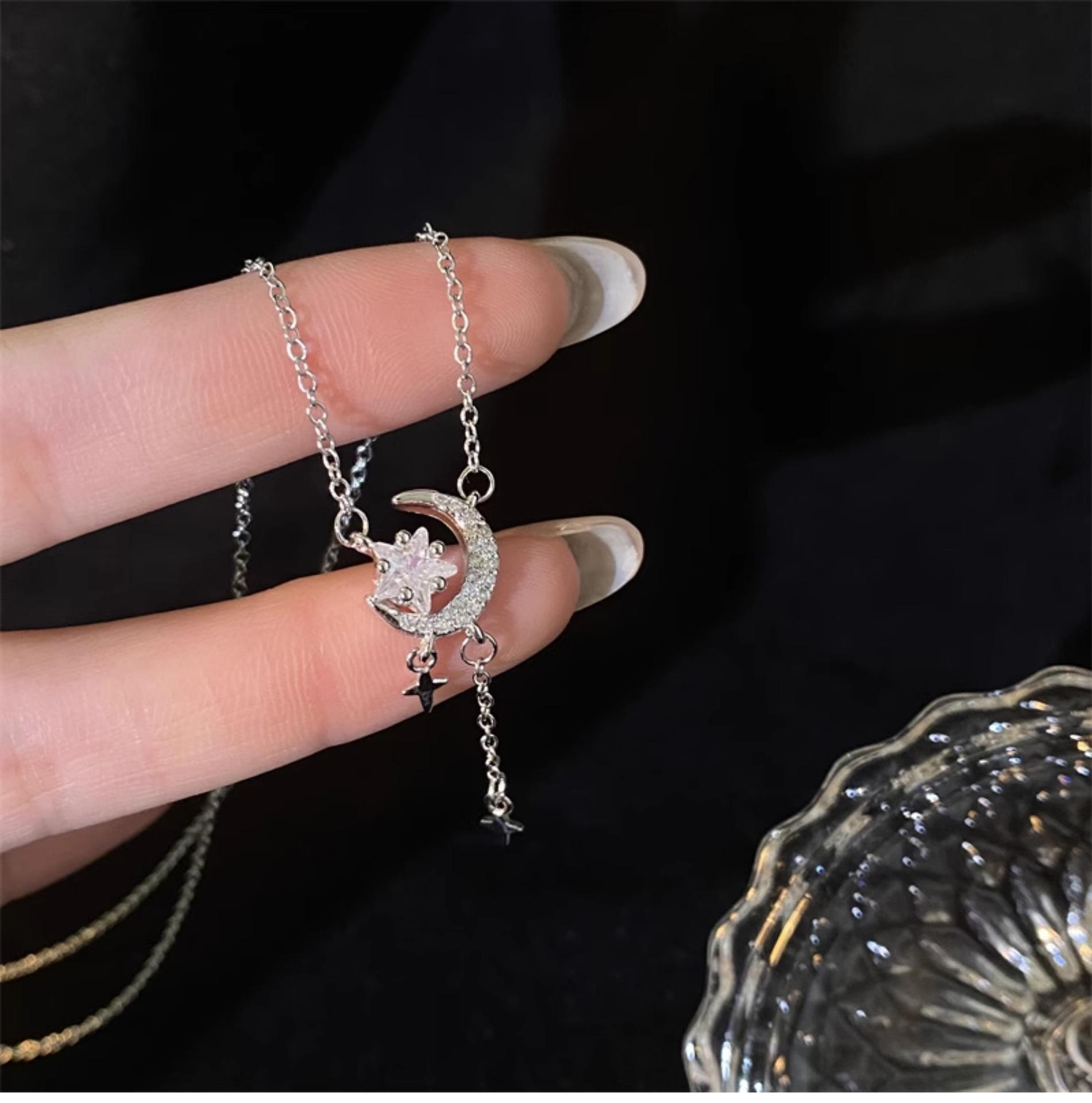 Collar de Borla de Estrella y Luna para Mujer 2025 Nuevo Diseño Nicho de Lujo Ligero Acero de Titanio de Alta Gama Inoxidable Cadena Clavicular Venta al por Mayor