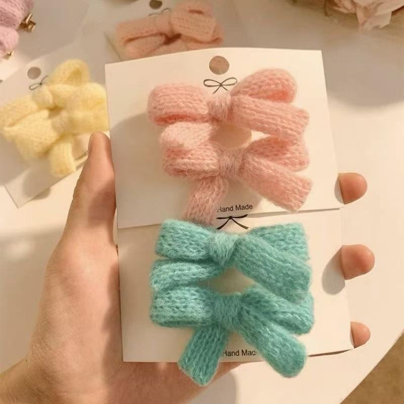5330 wool bow hairpin-pink two (with cardboard), 5330 wool bow hairpin-blue two (with cardboard), 5330 wool bo...