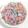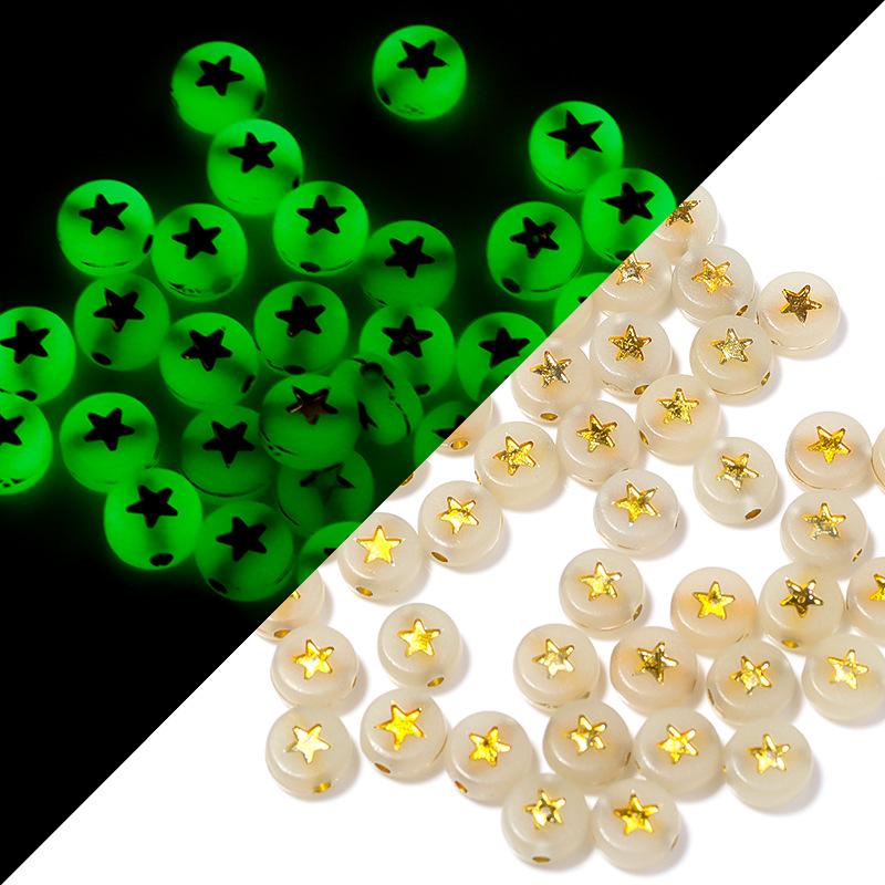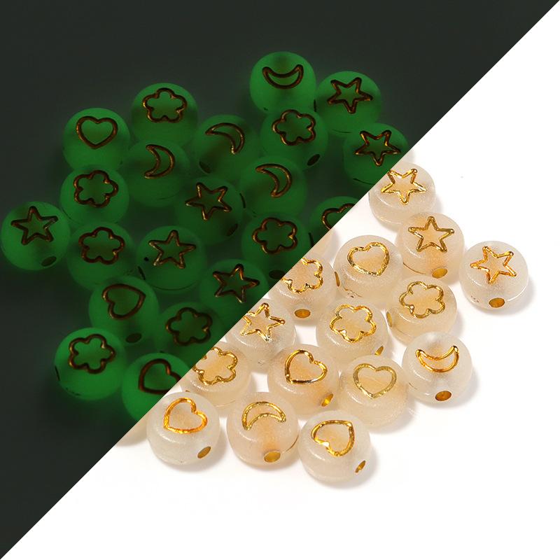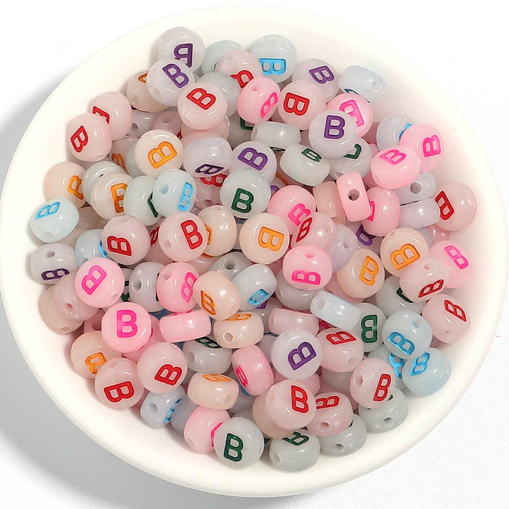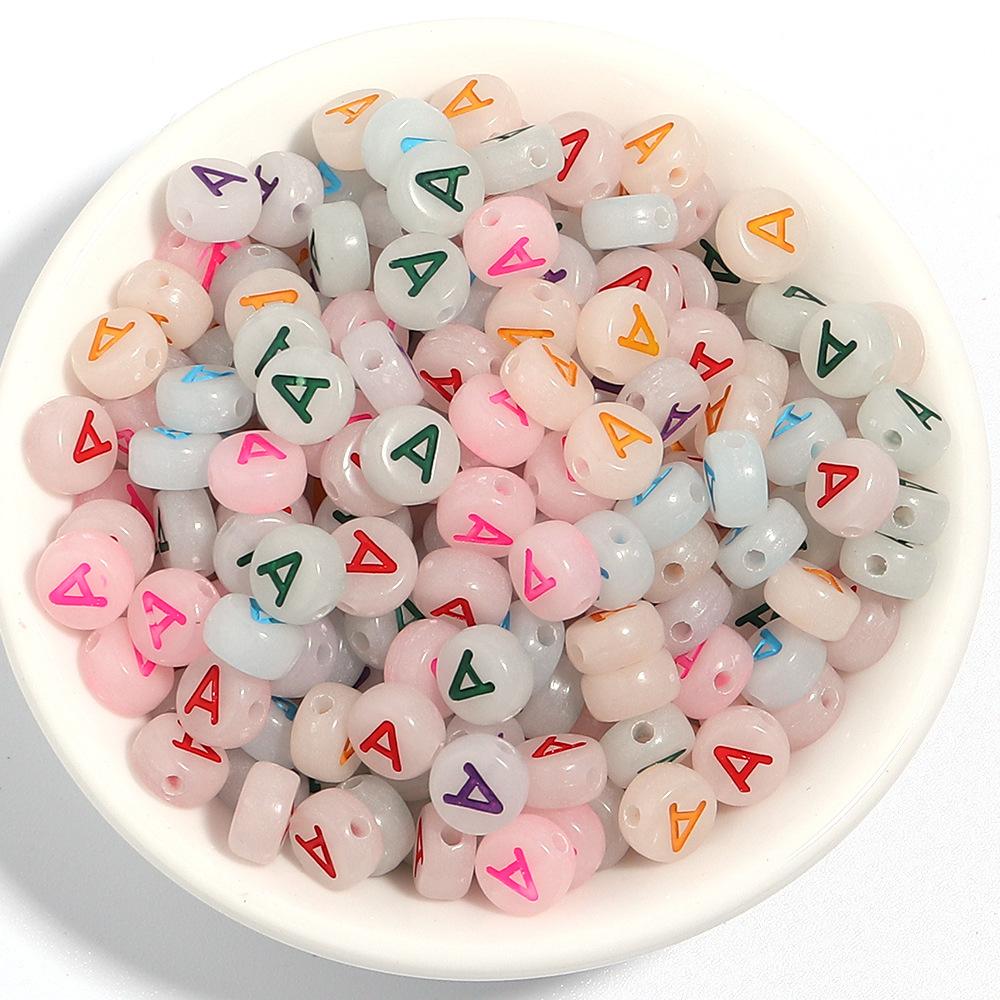 Paquete de 100 cuentas sueltas luminosas acrílicas para manualidades, cuentas translúcidas con alfabeto oblatas, cuentas de amor y cuentas digitales.
