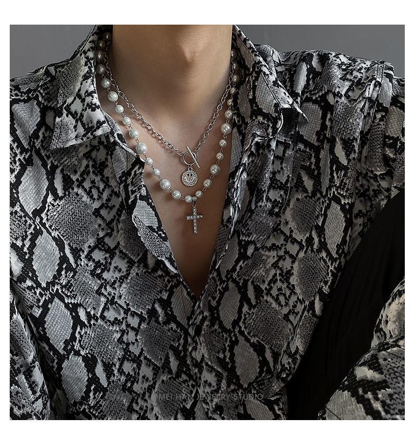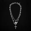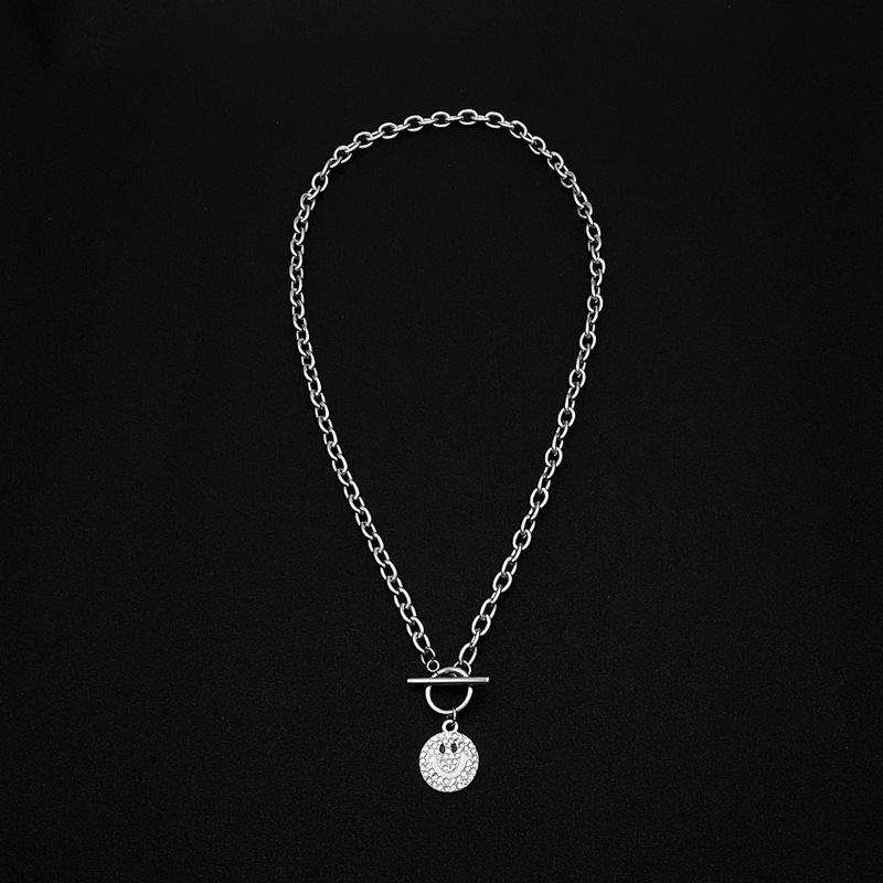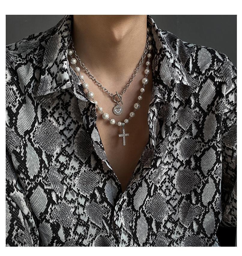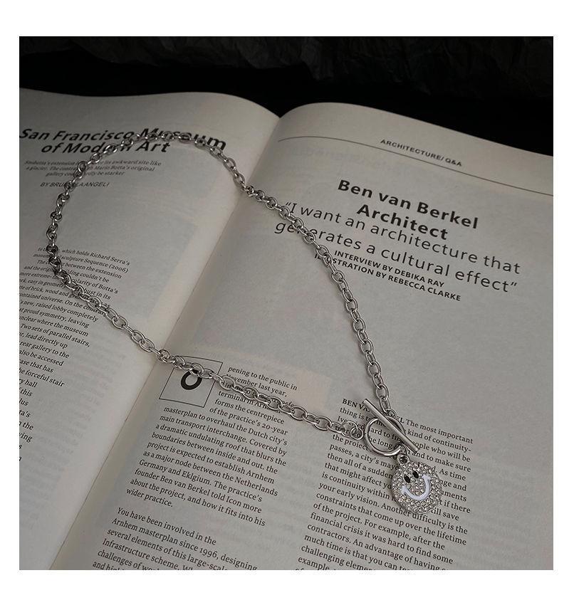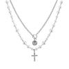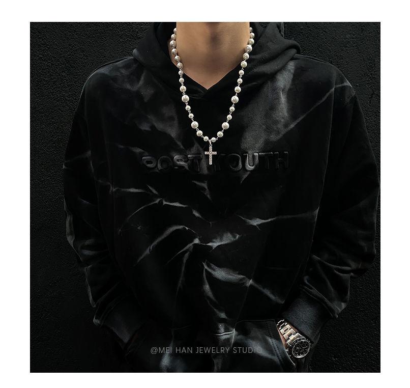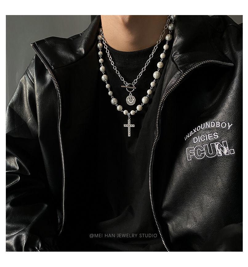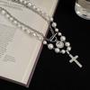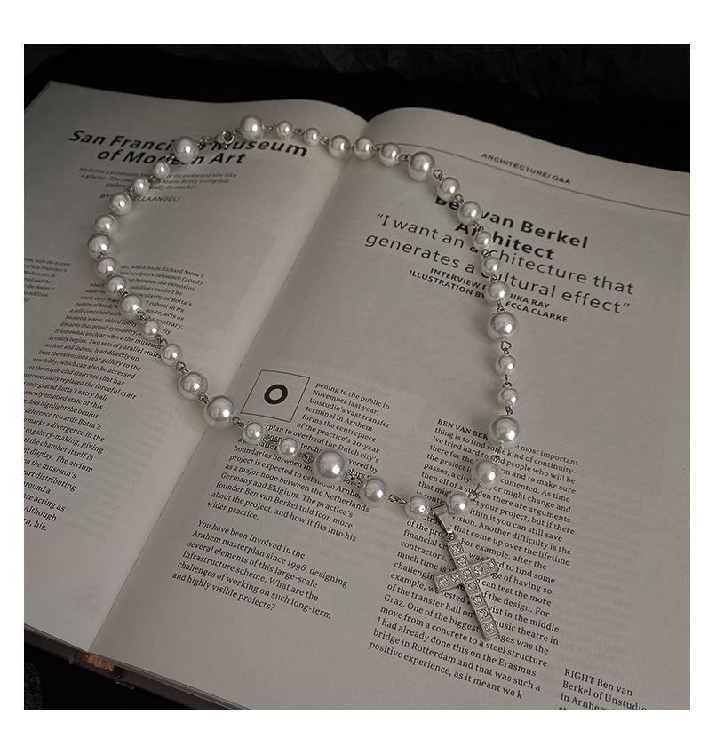 Collar de perlas estilo japonés y coreano con personalidad moderna y fresca, con colgante de cruz sonriente con incrustaciones de diamantes, joyería para parejas para hombres y mujeres.