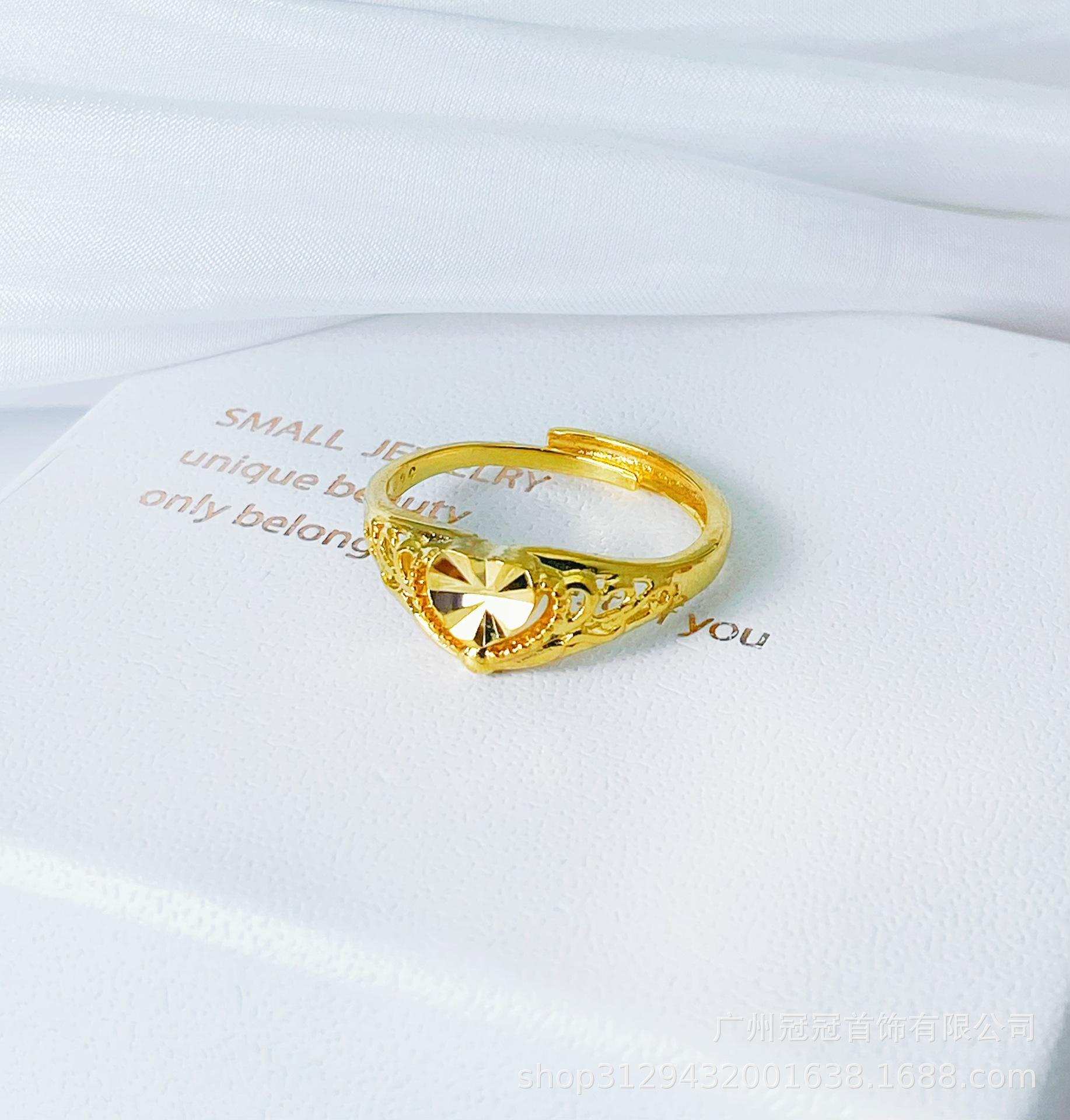 Anillo de Corazón Grabado Antiguo Chapado en Oro que No se Desvanece para Mujer, Anillo Abierto Ajustable de Estilo de Lujo Niche de Gama Alta