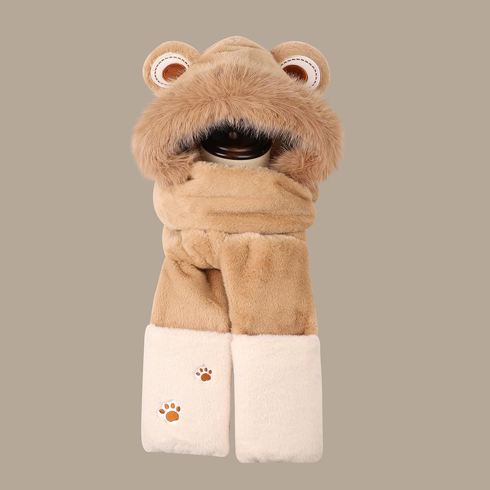 Las orejas y los guantes del oso tienen diseños bordados, y sus patas son monísimas. El pelaje alrededor de las mejillas es extenso y el interior es de doble grosor, lo que lo hace súper cálido. Además, el pelaje es delicado y suave, y no pica.
