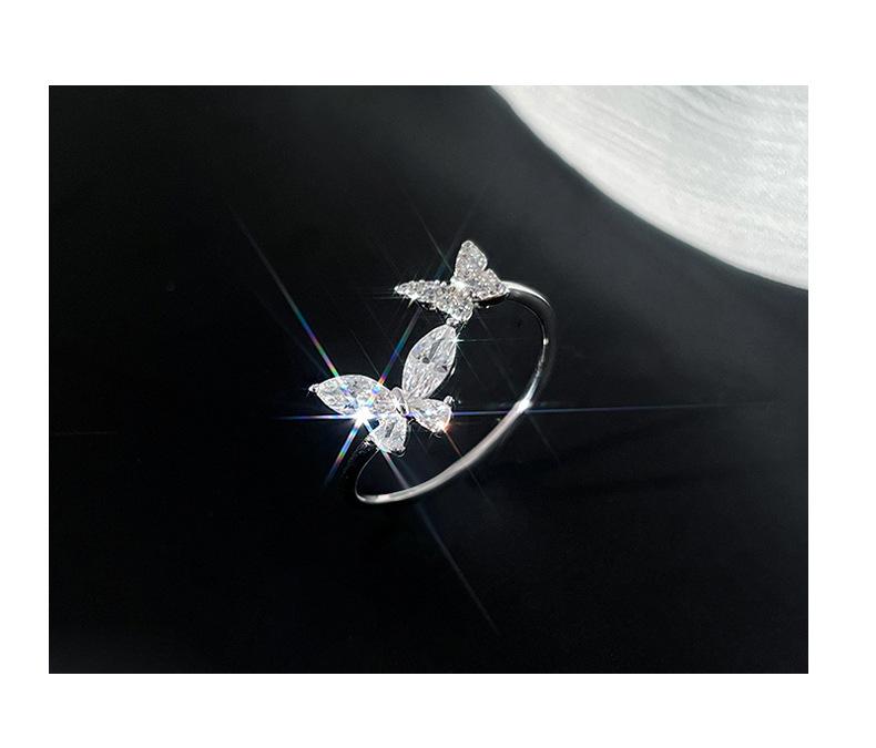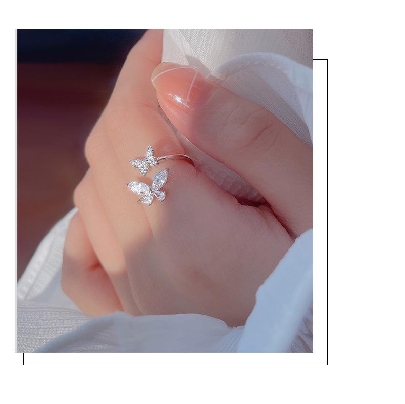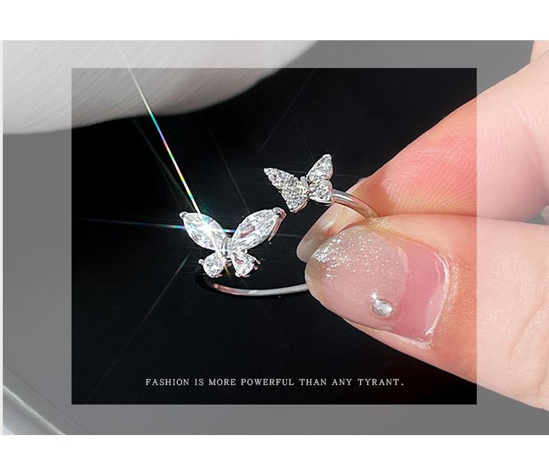 Anillo de Mariposa Femenino Sentido de Diseño Nicho Ins Trendy Nicho Micro-incrustado Anillo de Zirconia Anillo de Dedo Ajustable para Dieta