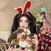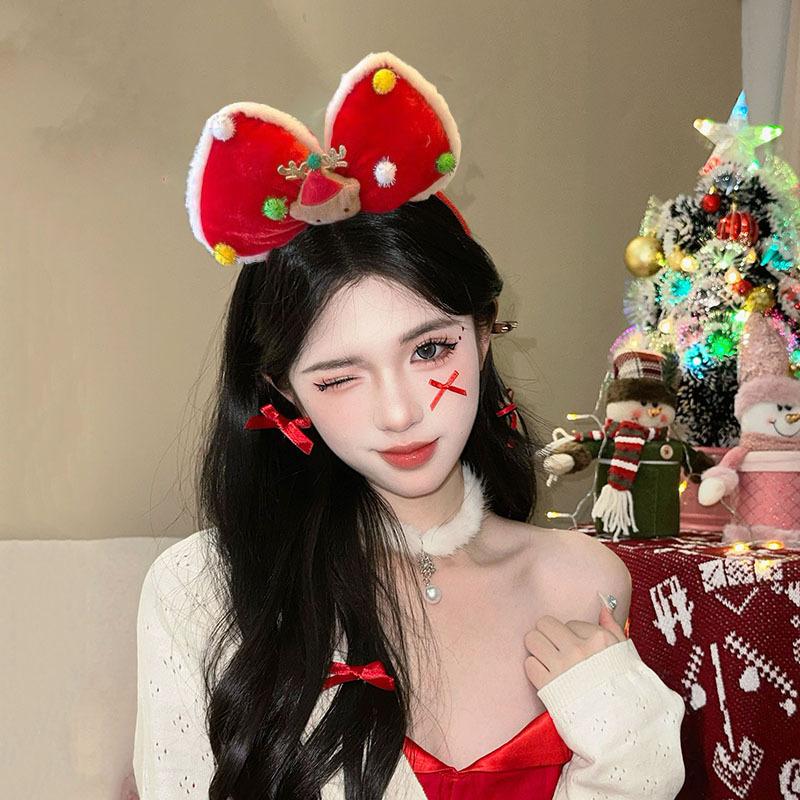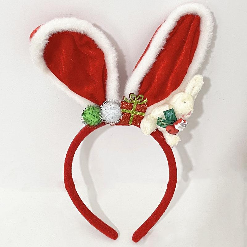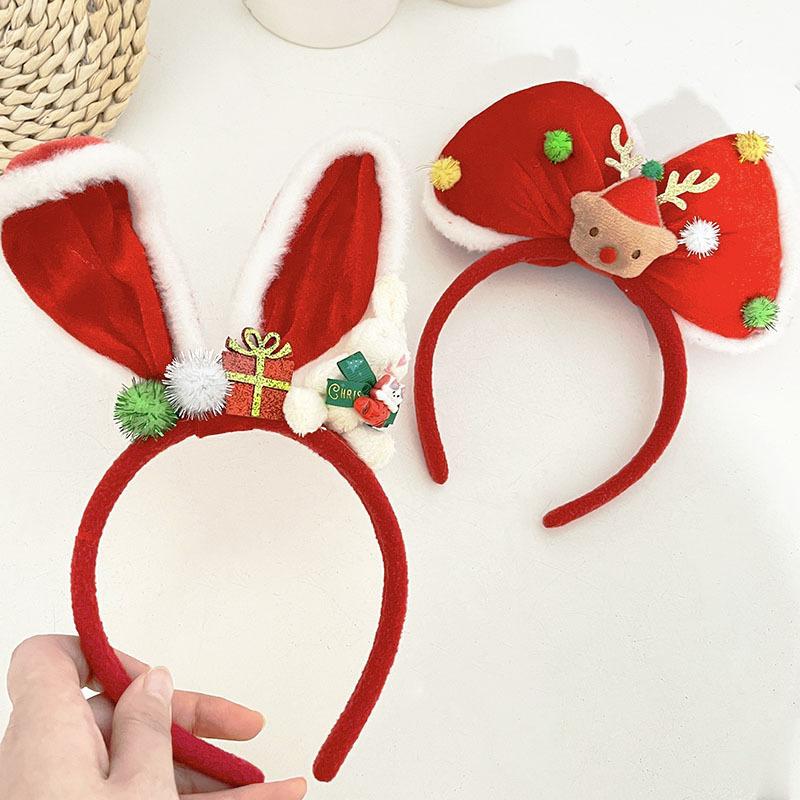 Compra Diadema navideña con forma de conejito, con orejas de conejo rojas de dibujos animados, accesorios para el cabello con lazo al por mayor en Joom.pro