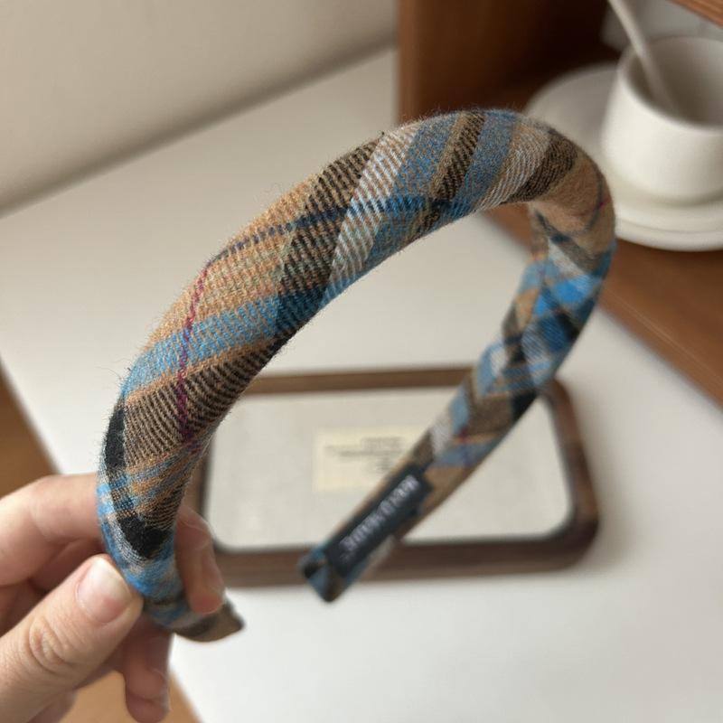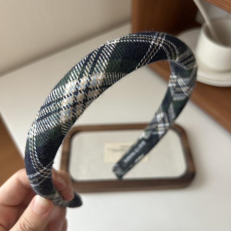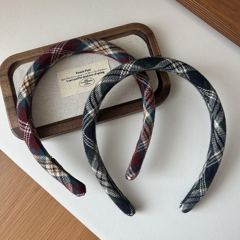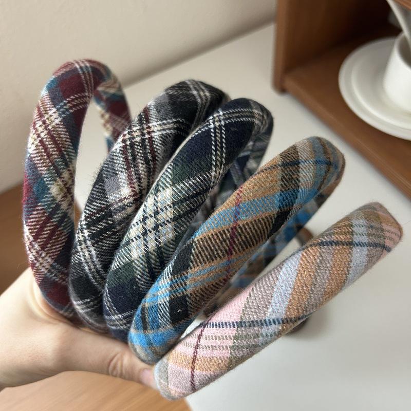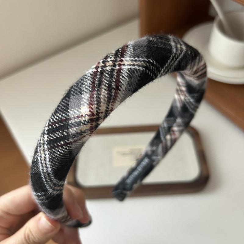Diadema fina estilo academia retro japonesa y coreana, banda para el cabello con esponja a cuadros, temperamento que combina con todo, pinzas para el cabello de parte superior craneal alta, accesorios para el cabello para mujeres