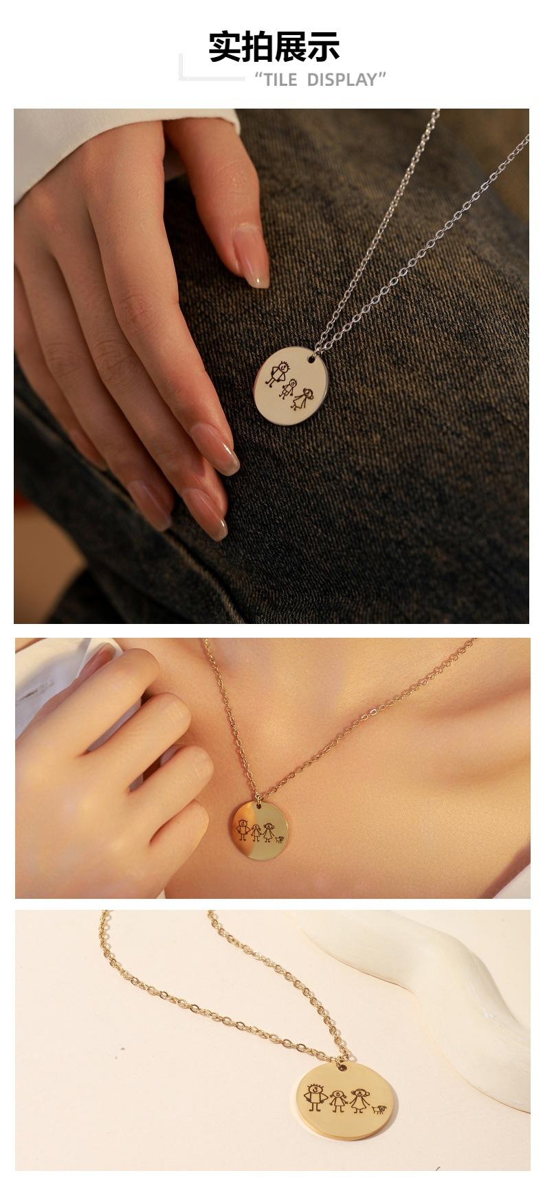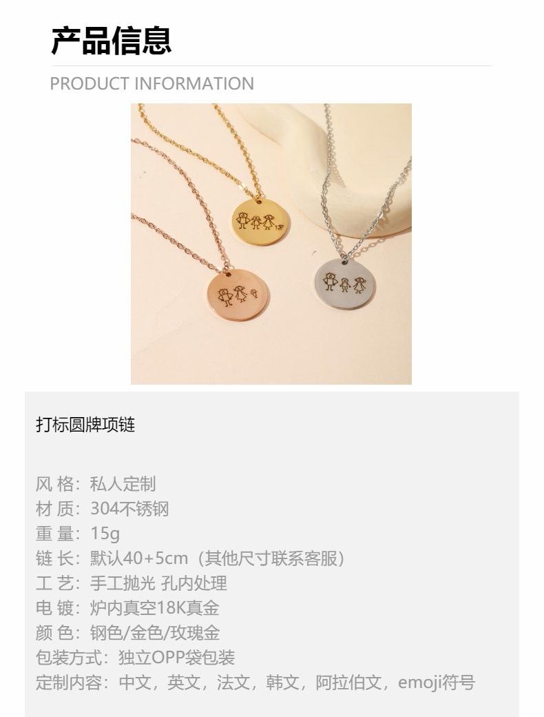 Nuevo colgante de collar pequeño personalizado transfronterizo con diseño de disco de acero inoxidable grabado láser, colgante redondo de marca