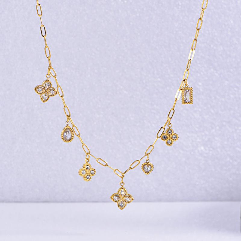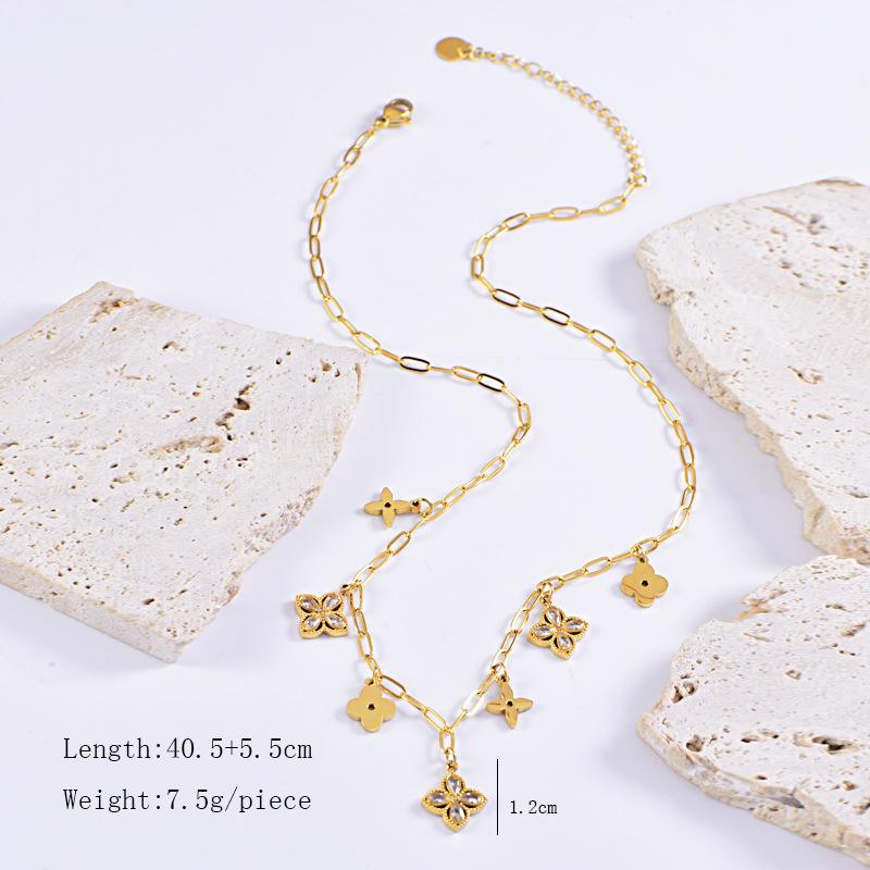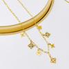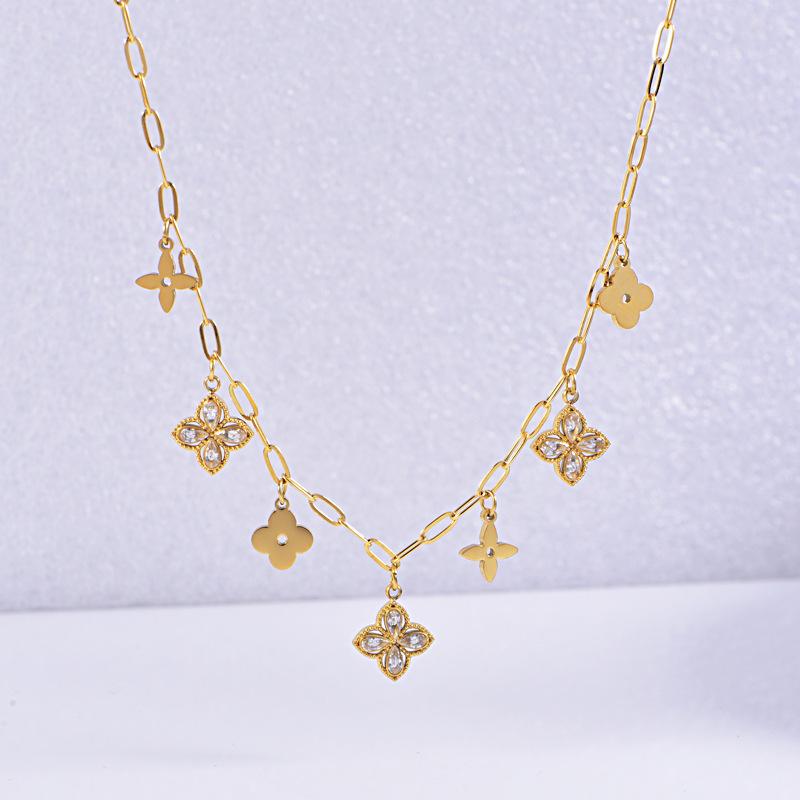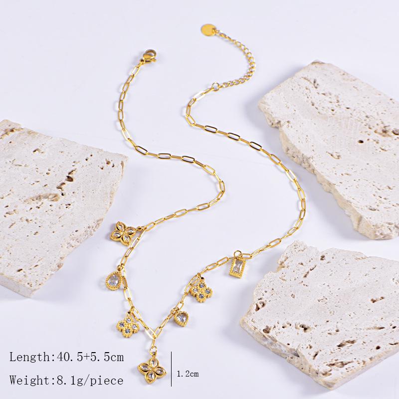 Collar de clavícula de cuatro hojas con incrustaciones de diamantes, estilo transfronterizo europeo y americano, cadena de lana con diamantes cuadrados en forma de gota de agua, joyería de acero de titanio de alta calidad para mujer.