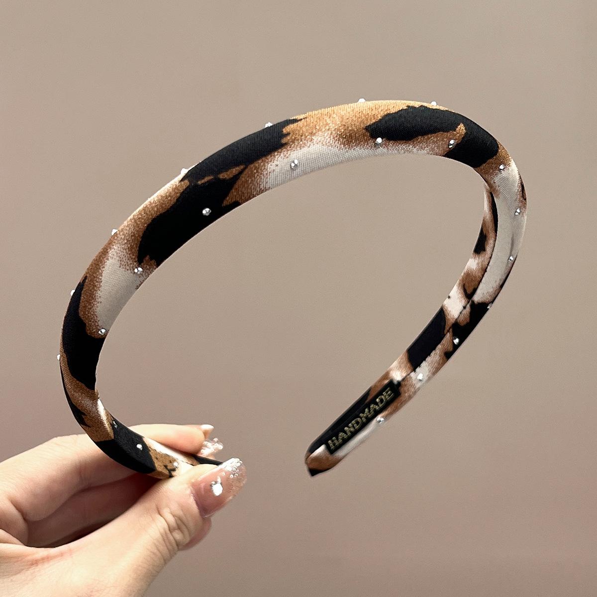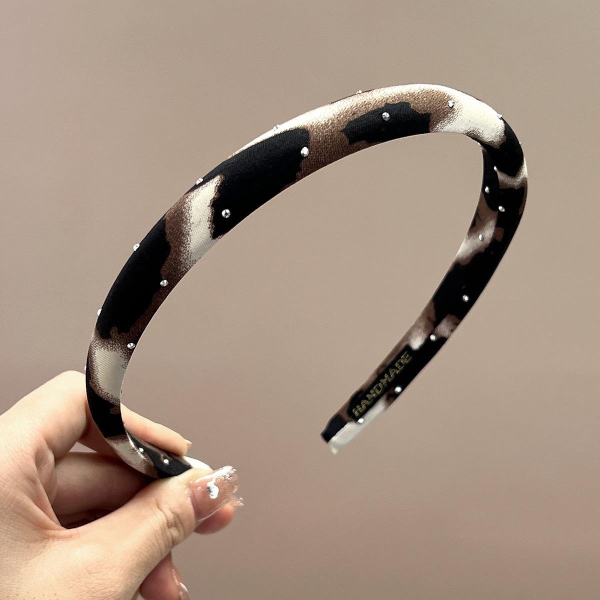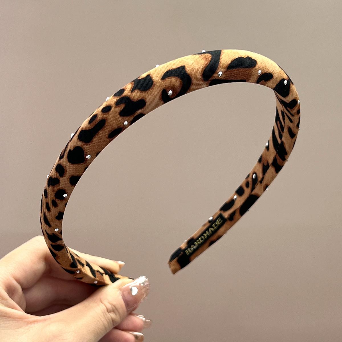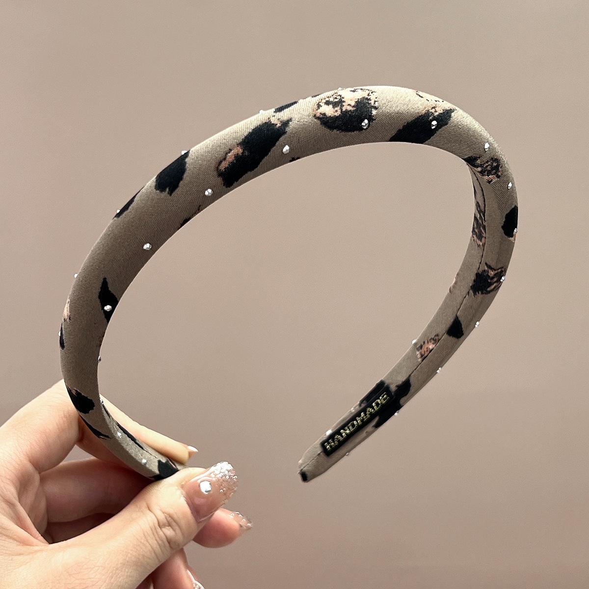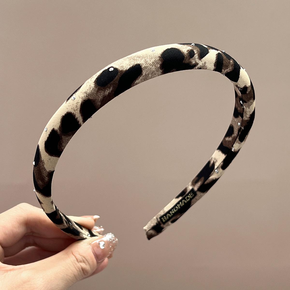 Thin + beige + full diamond leopard print headband