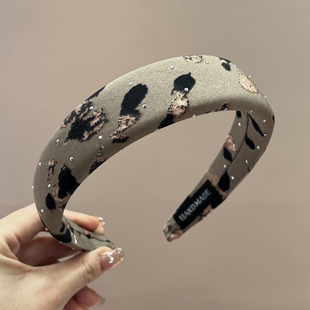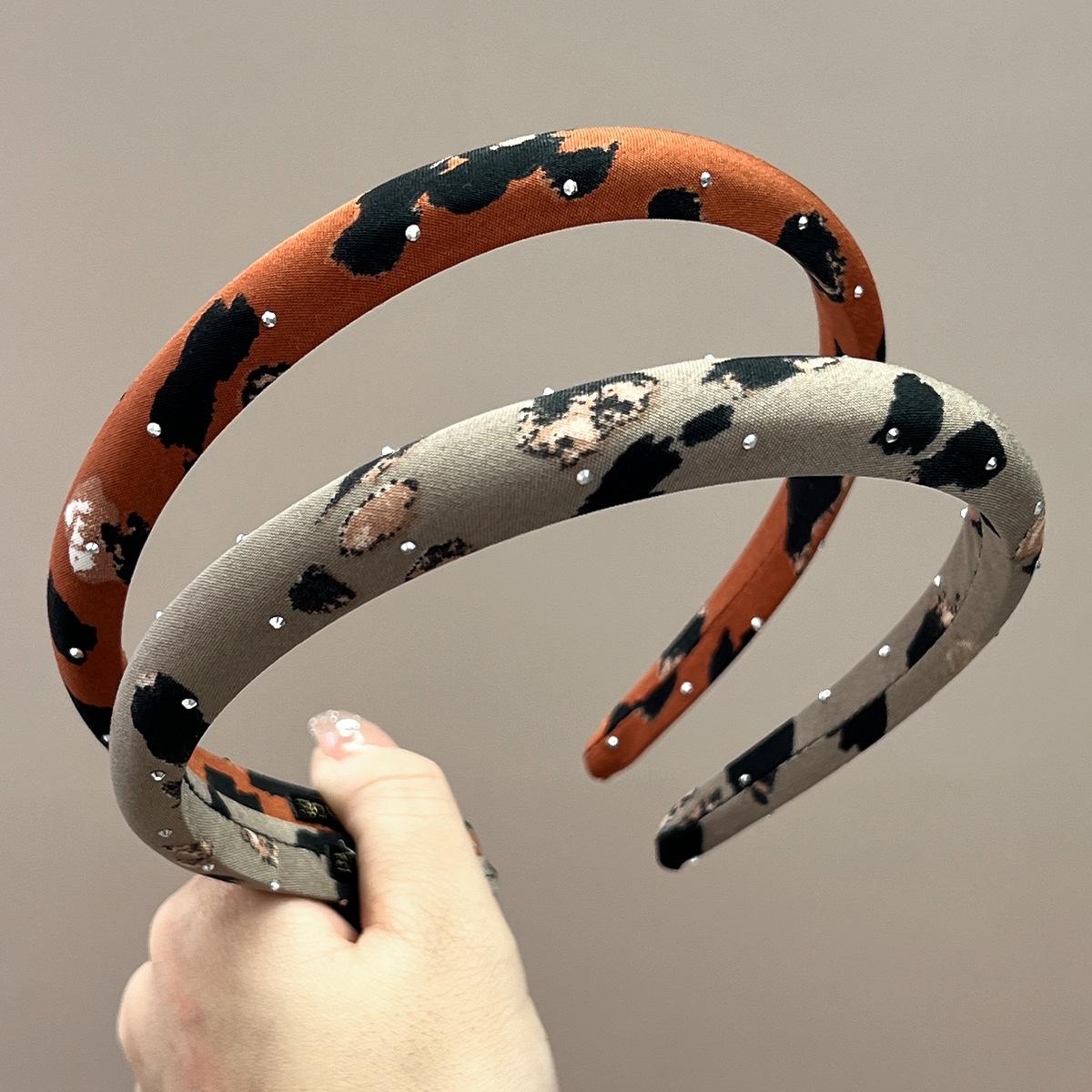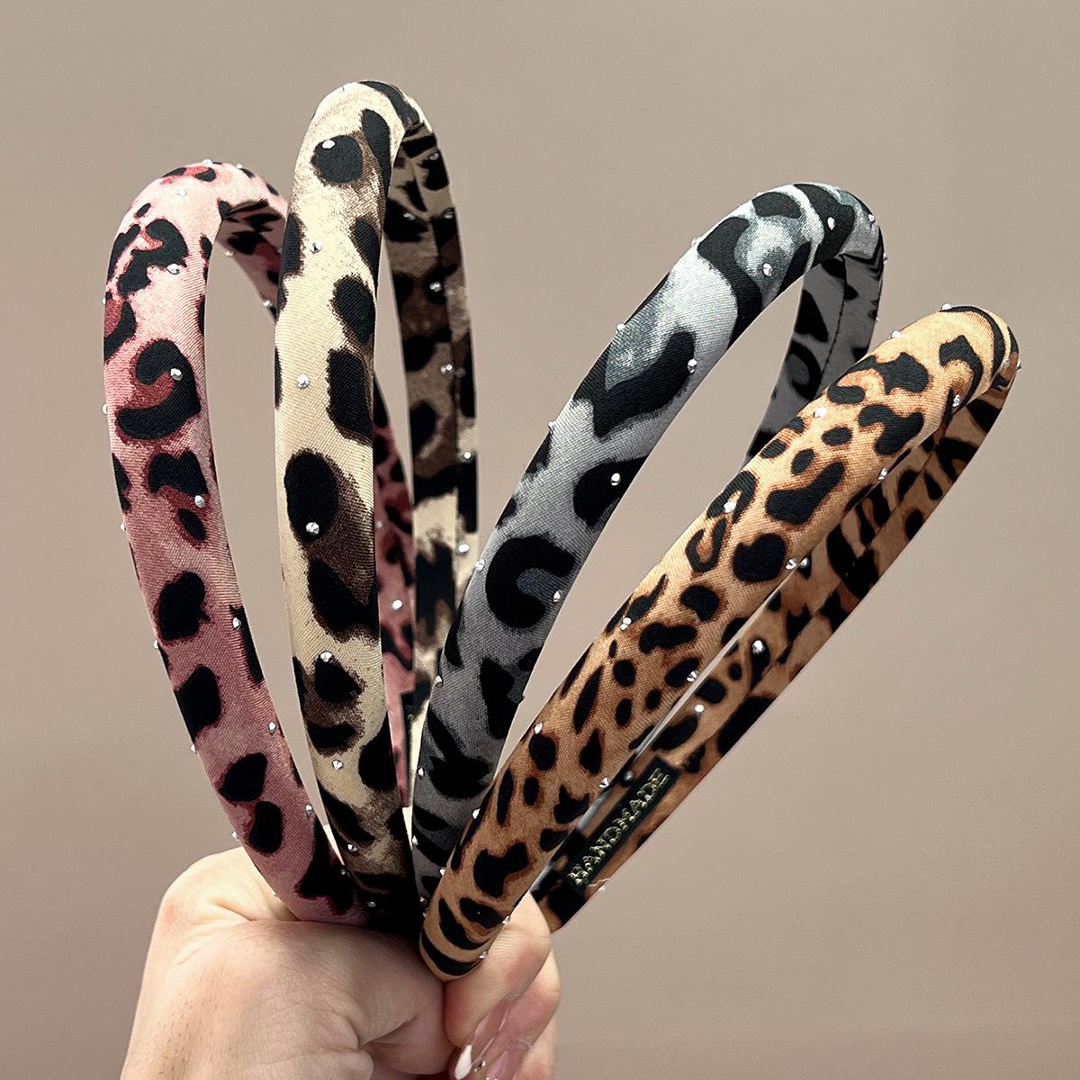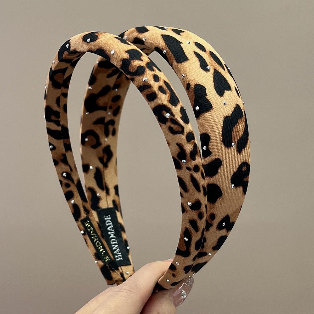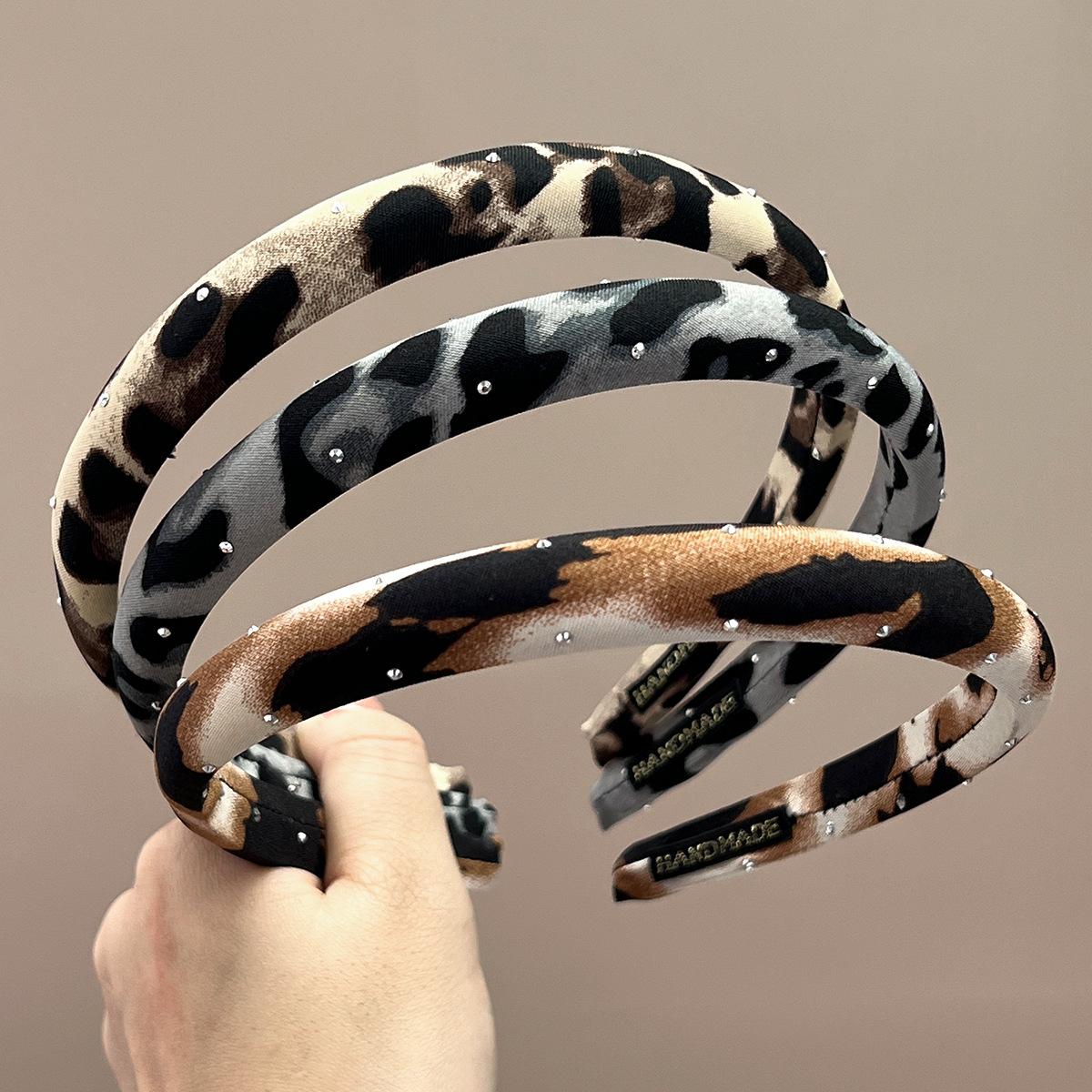 Thin + beige + full diamond leopard print headband