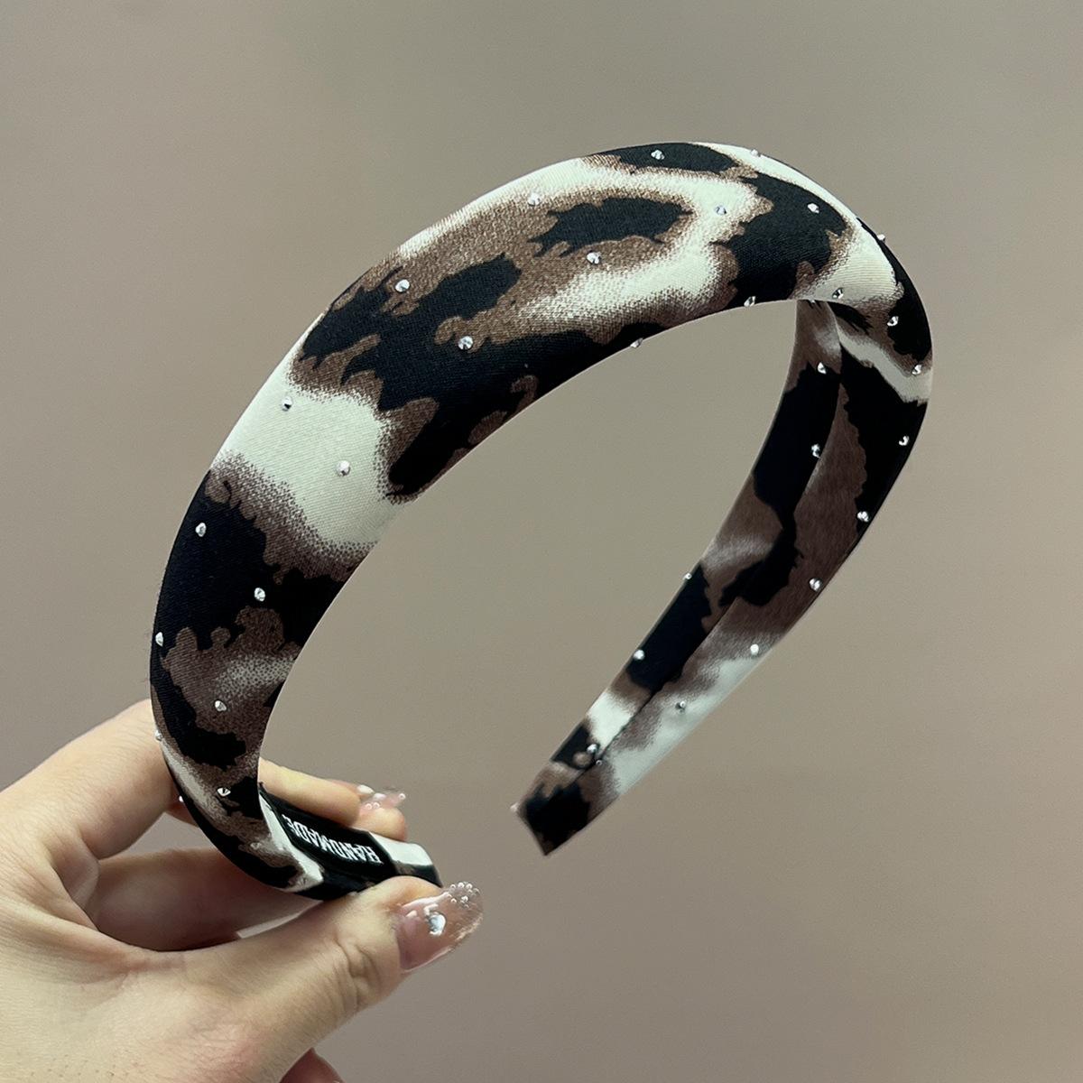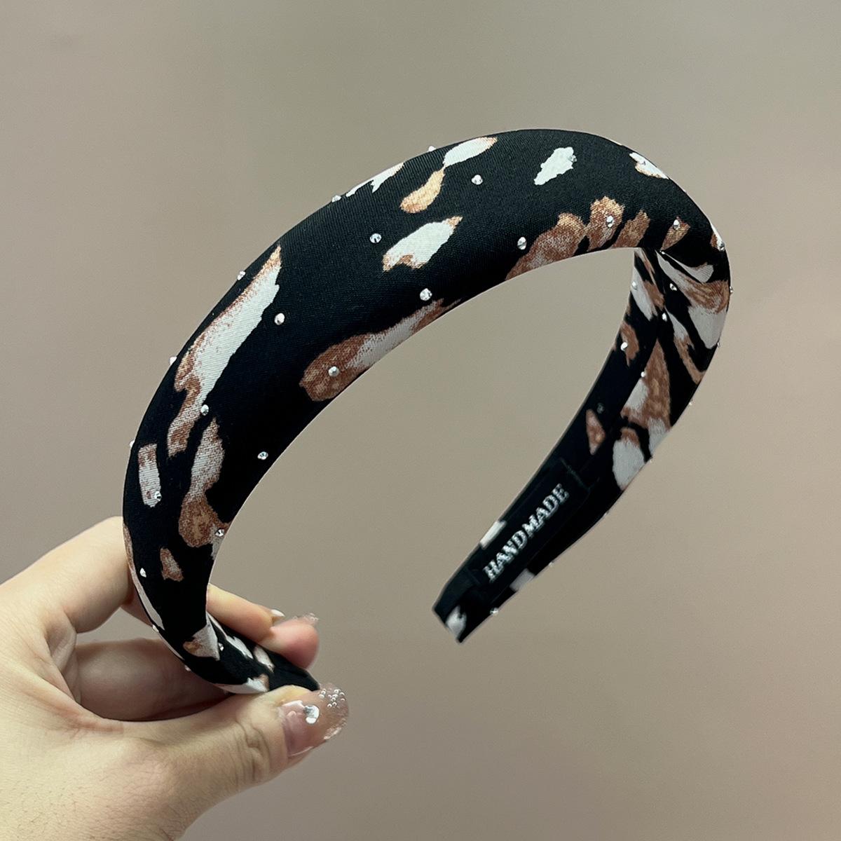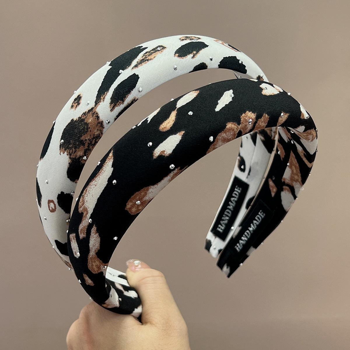 Thin + black, white and brown + full diamond leopard print headband