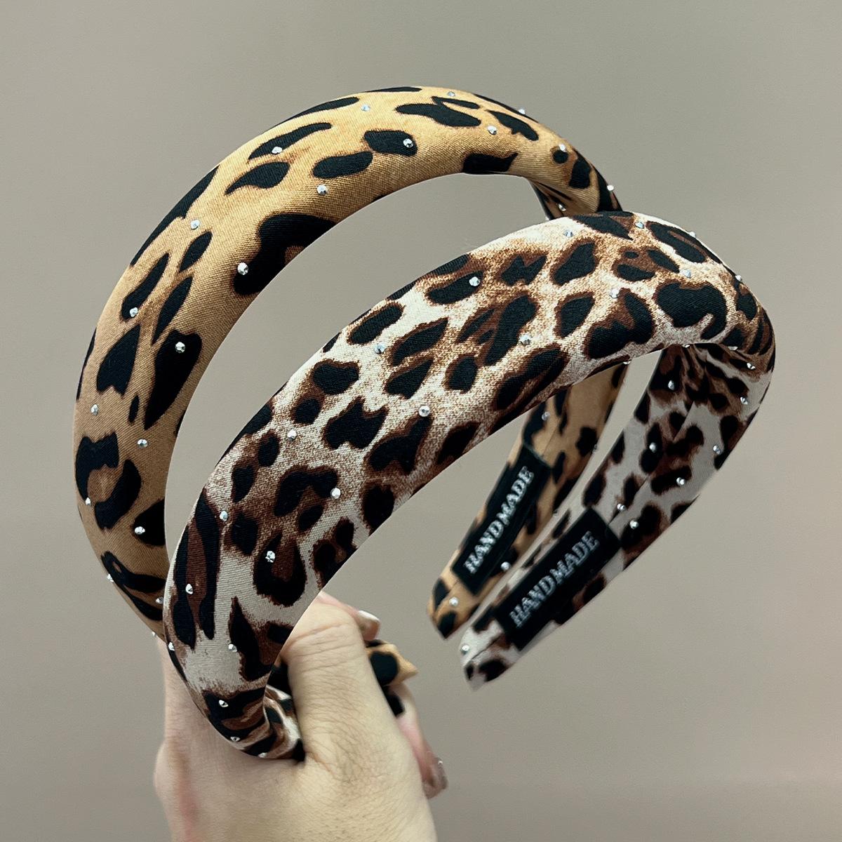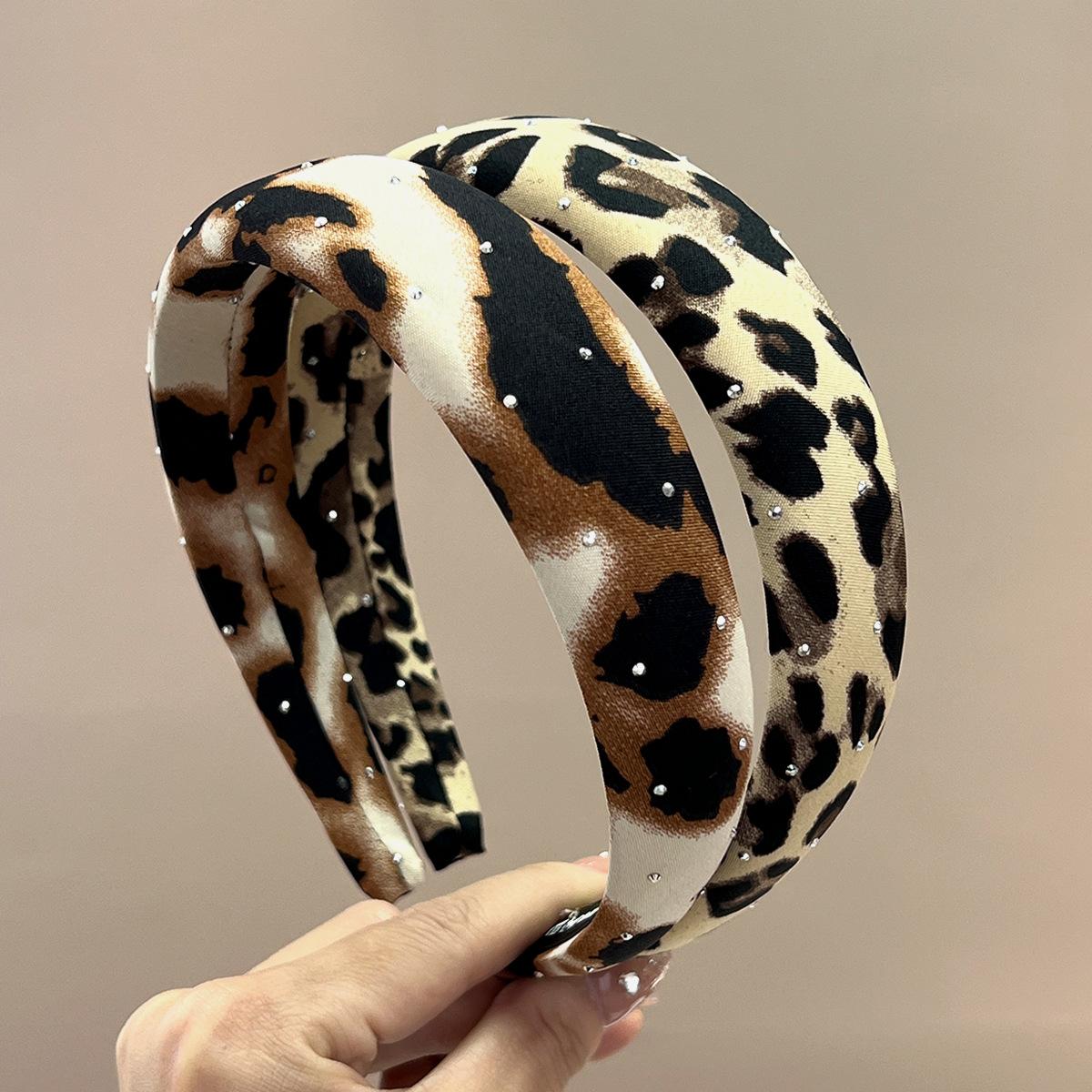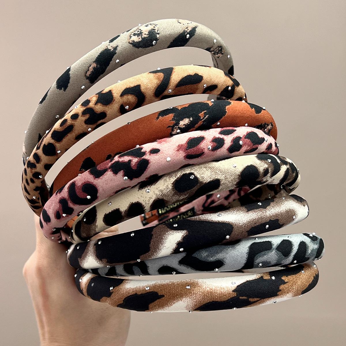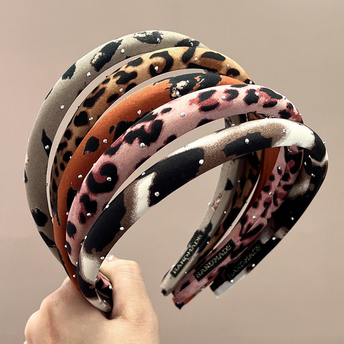 Wide + pink + full diamond leopard print headband, Wide + brown + full diamond leopard print headband, Wide + ...