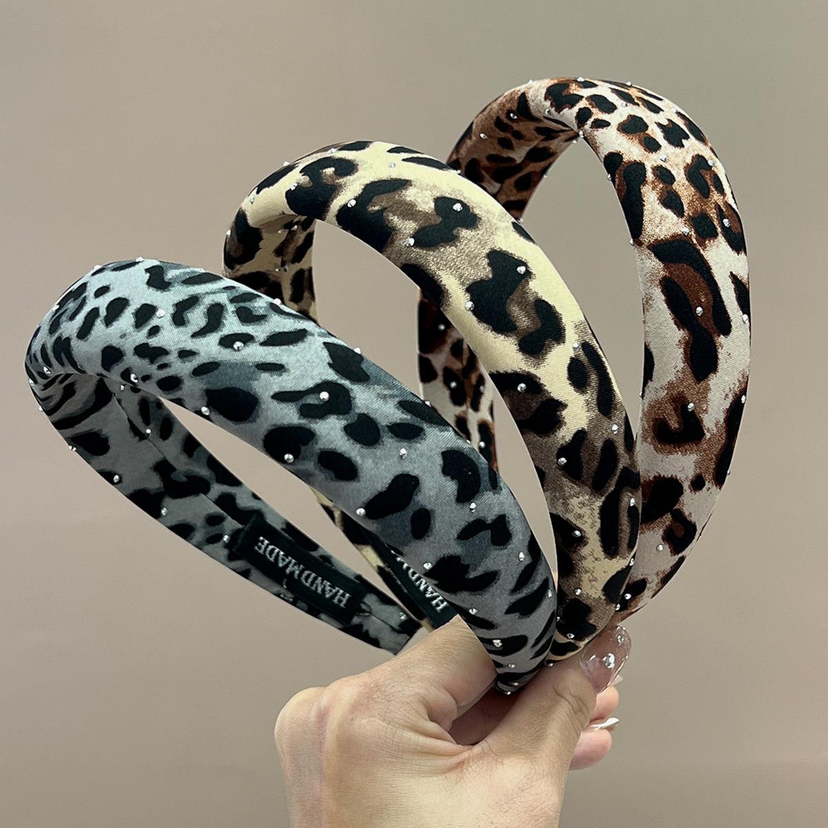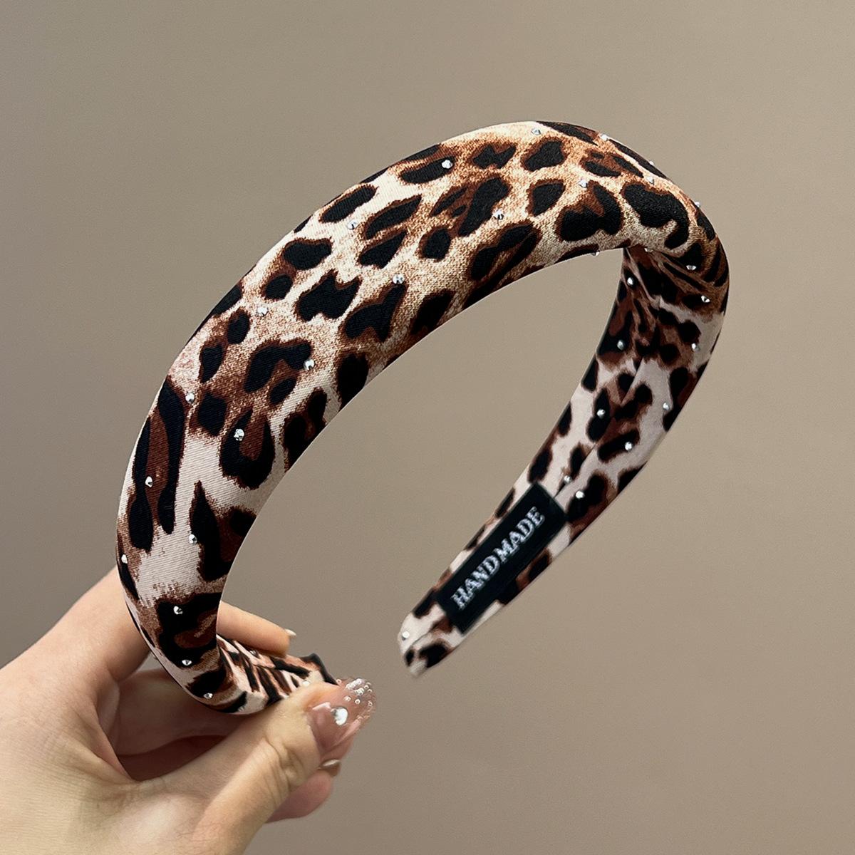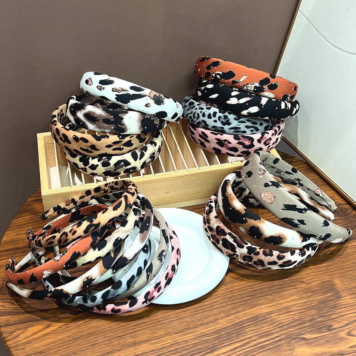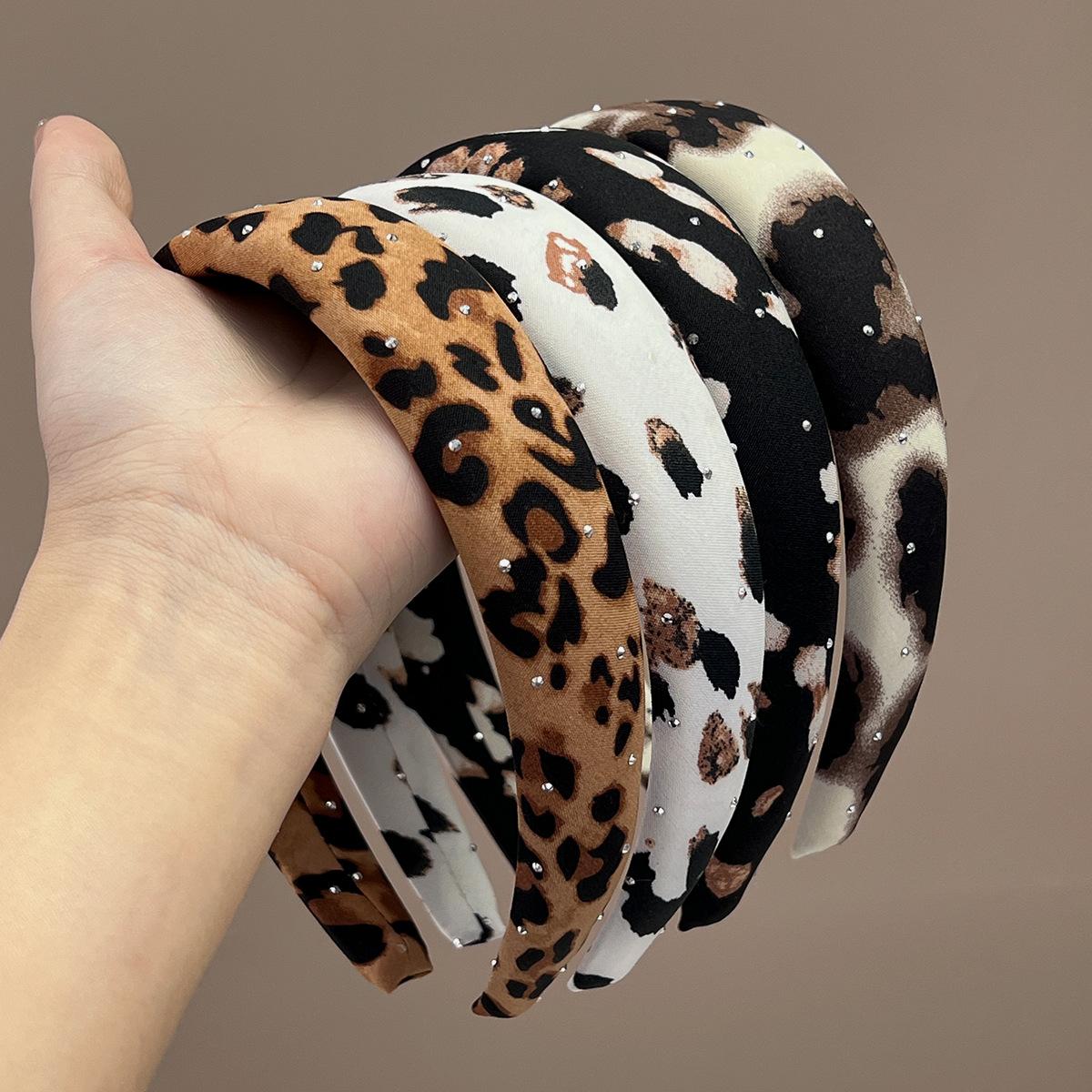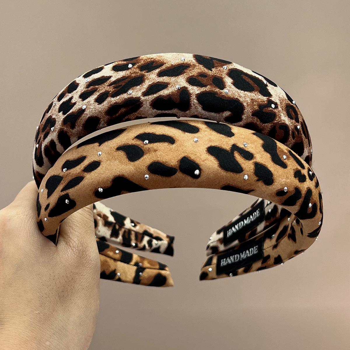 Wide + pink + full diamond leopard print headband, Wide + brown + full diamond leopard print headband, Wide + ...