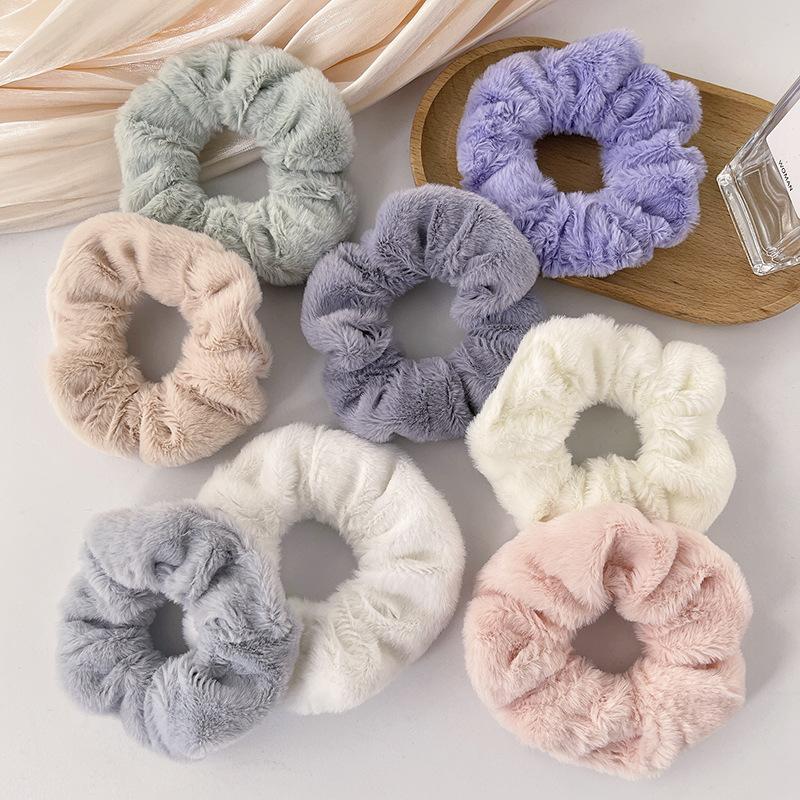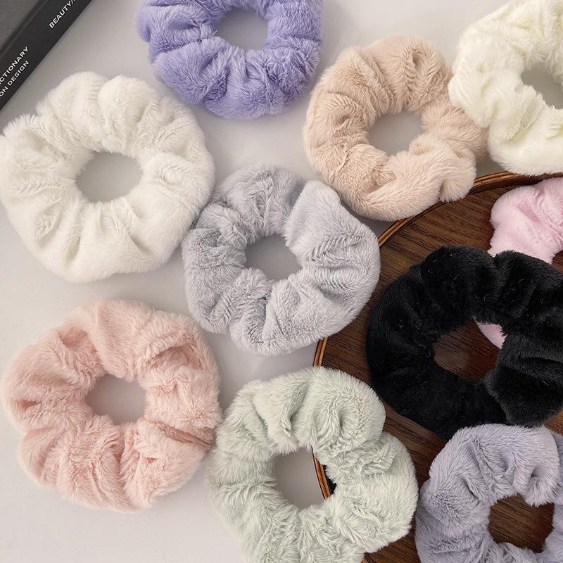 Banda para el cabello de felpa para otoño e invierno, banda de goma sencilla para el cabello, linda banda para el cabello coreana, accesorios para el cabello peludo para mujeres, venta al por mayor