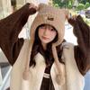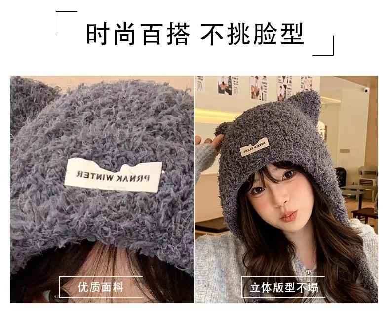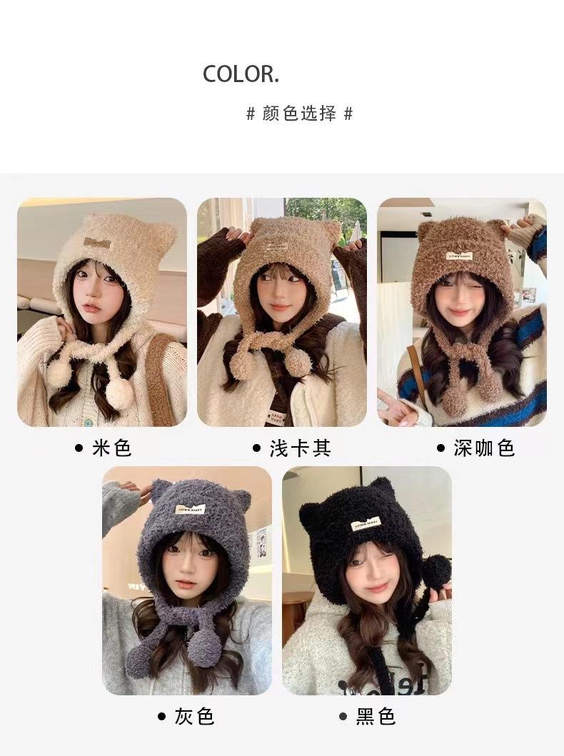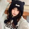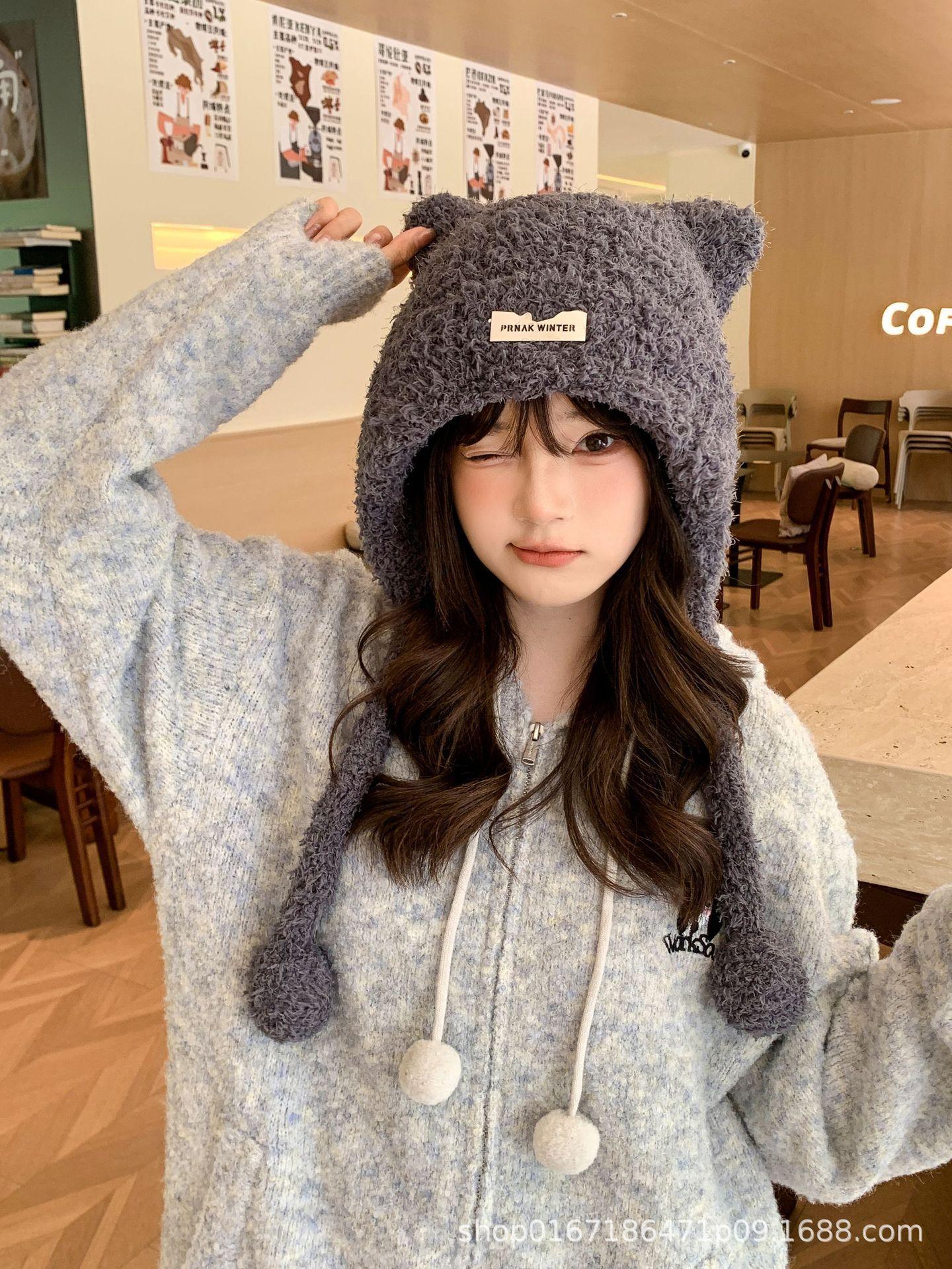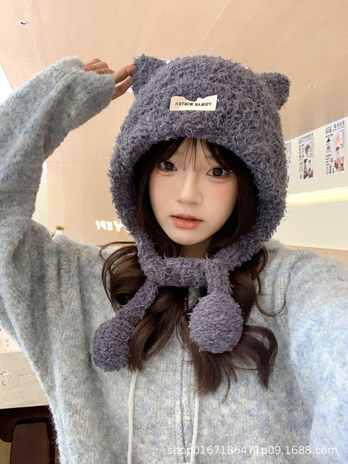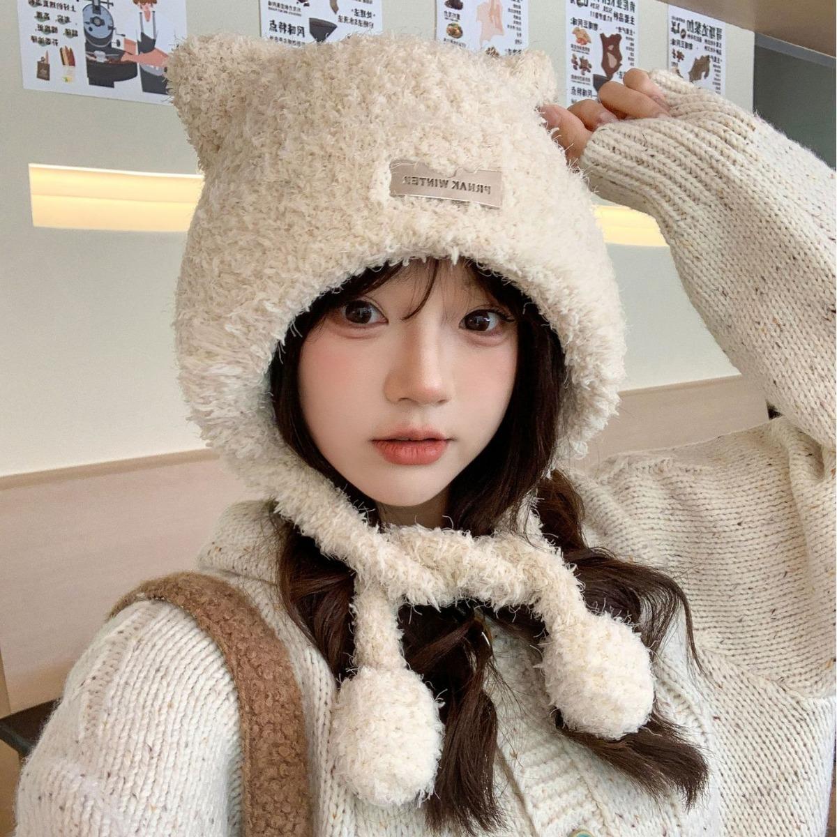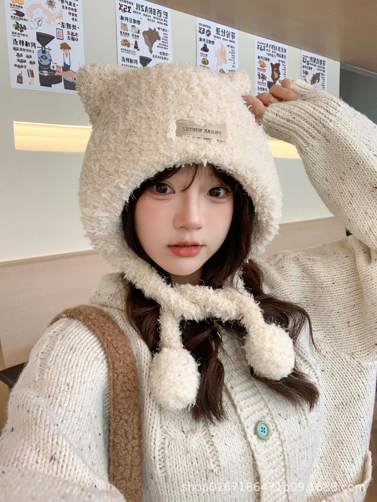 Gorro de oso bonito de otoño e invierno para mujer, de felpa, nuevo gorro de punto coreano, cálido y combinable con protección para las orejas, grueso y moderno.