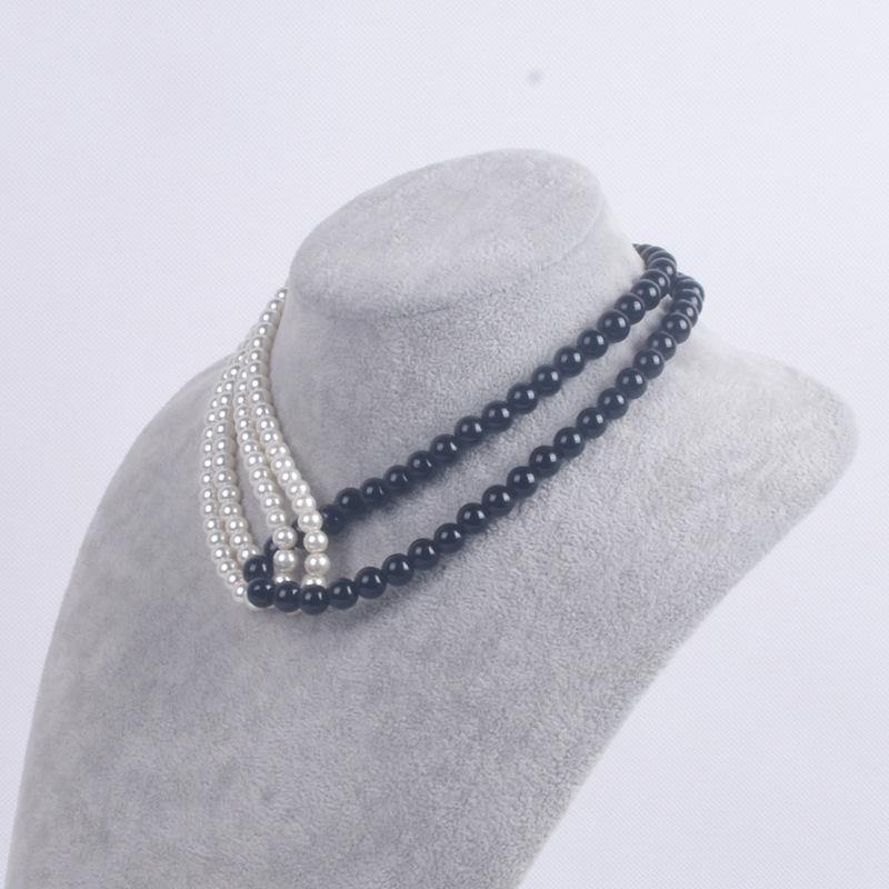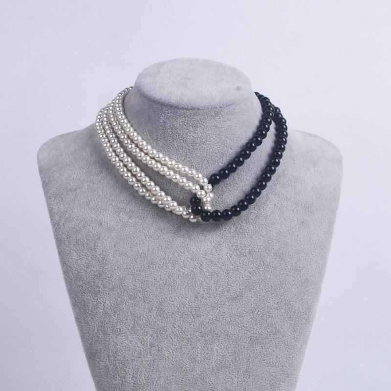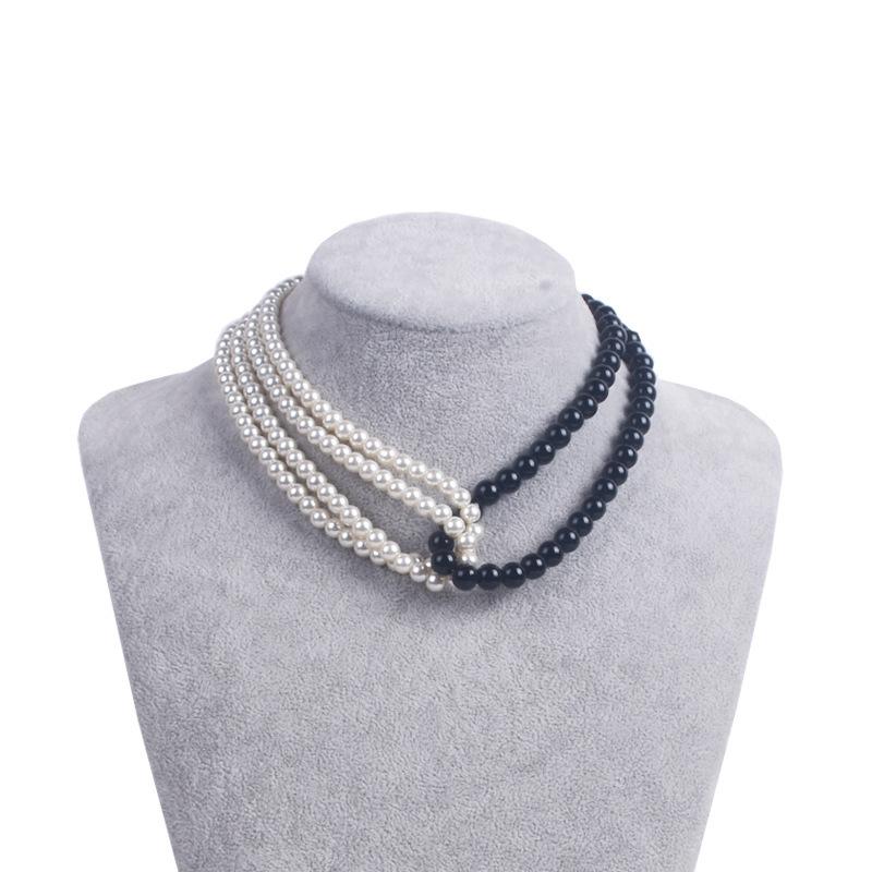 Collar de perlas de vidrio para mujer, moderno, cruzado, blanco y negro, hecho a mano, estilo francés, europeo y americano.