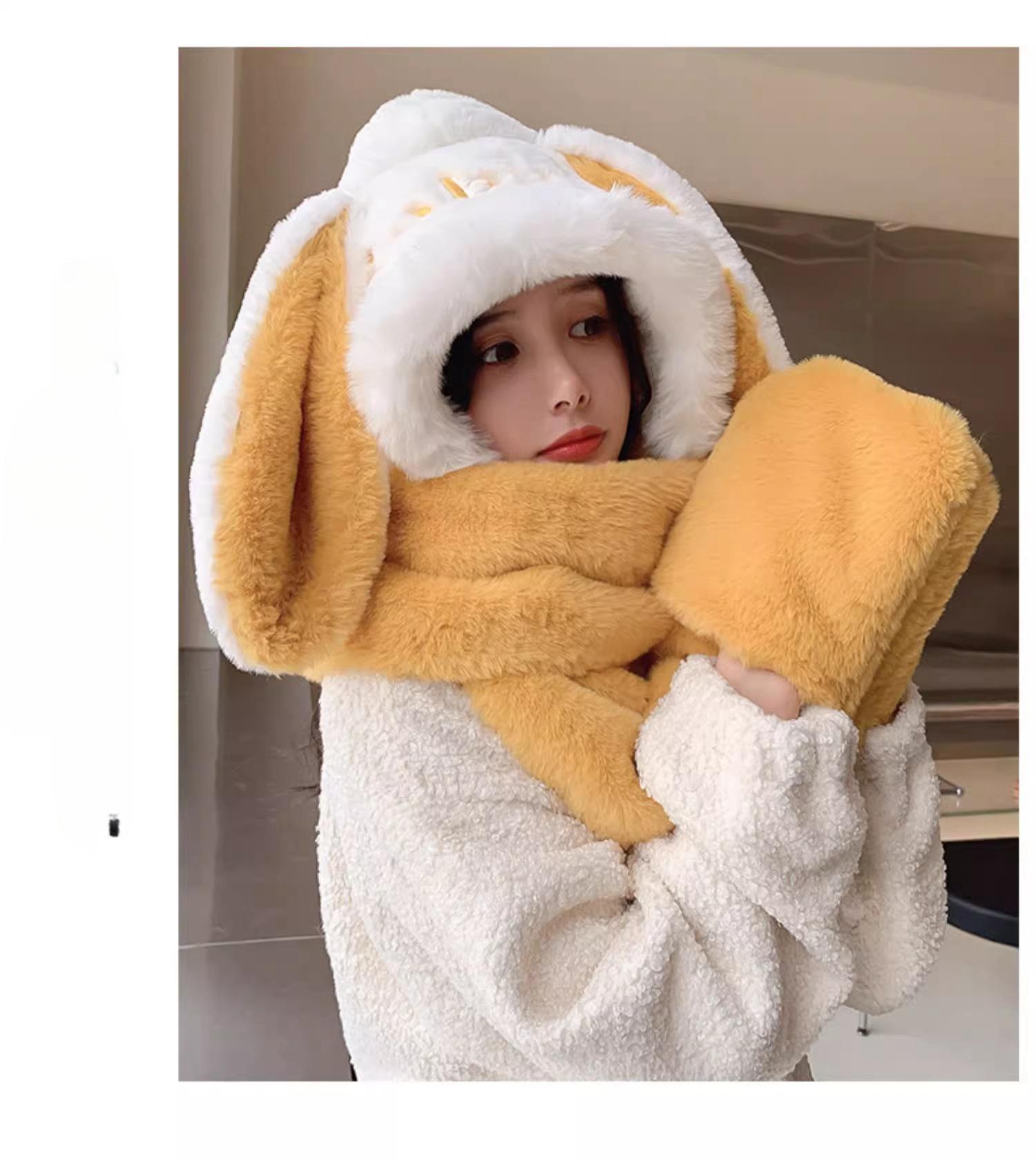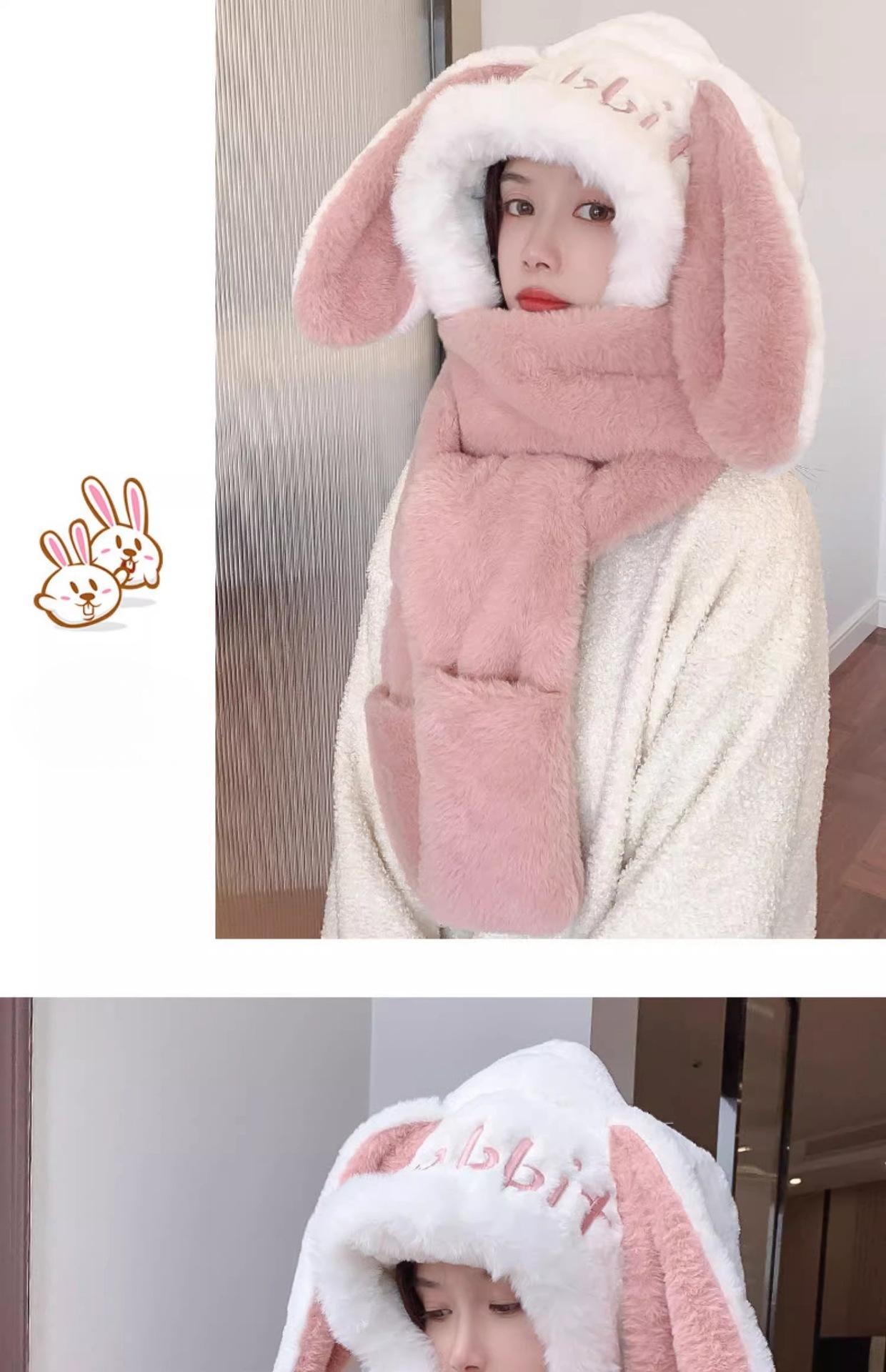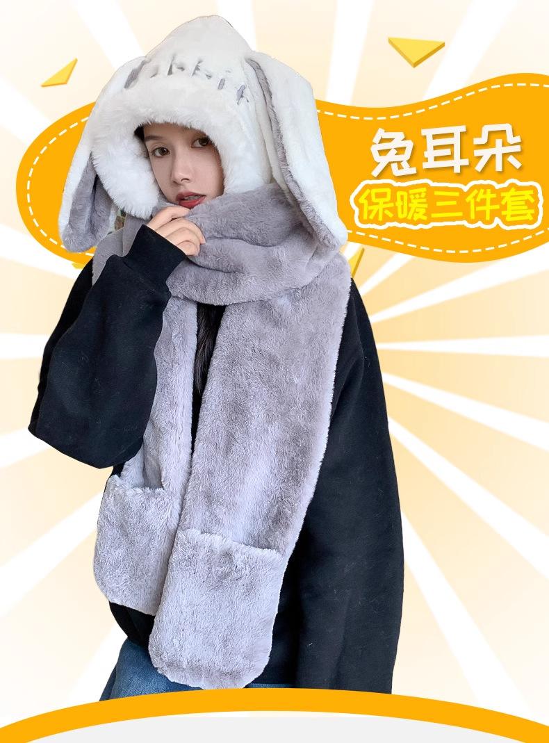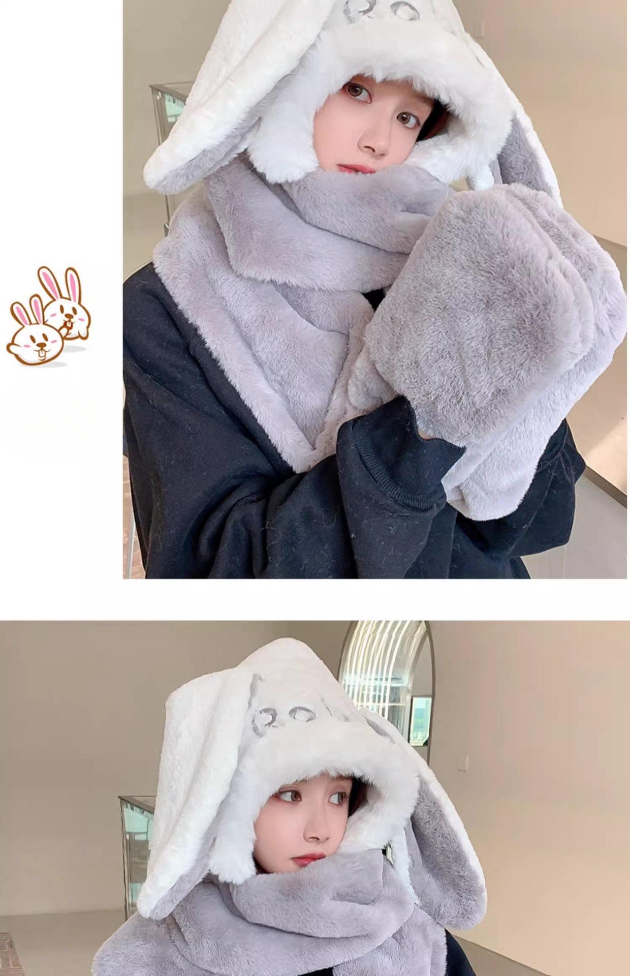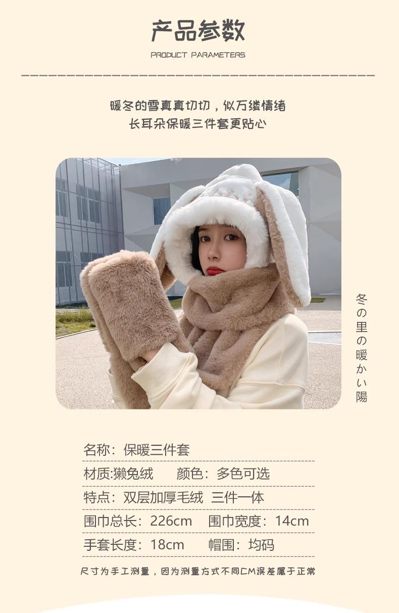 Guantes de cuello de una pieza gruesos y cálidos con orejas grandes de conejo para padres e hijos, gorro de invierno de tres piezas con protección para las orejas para mujer