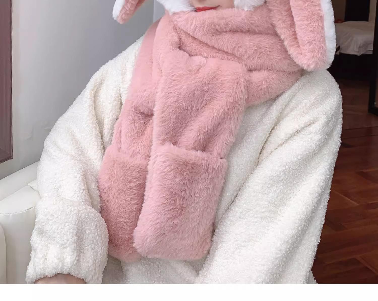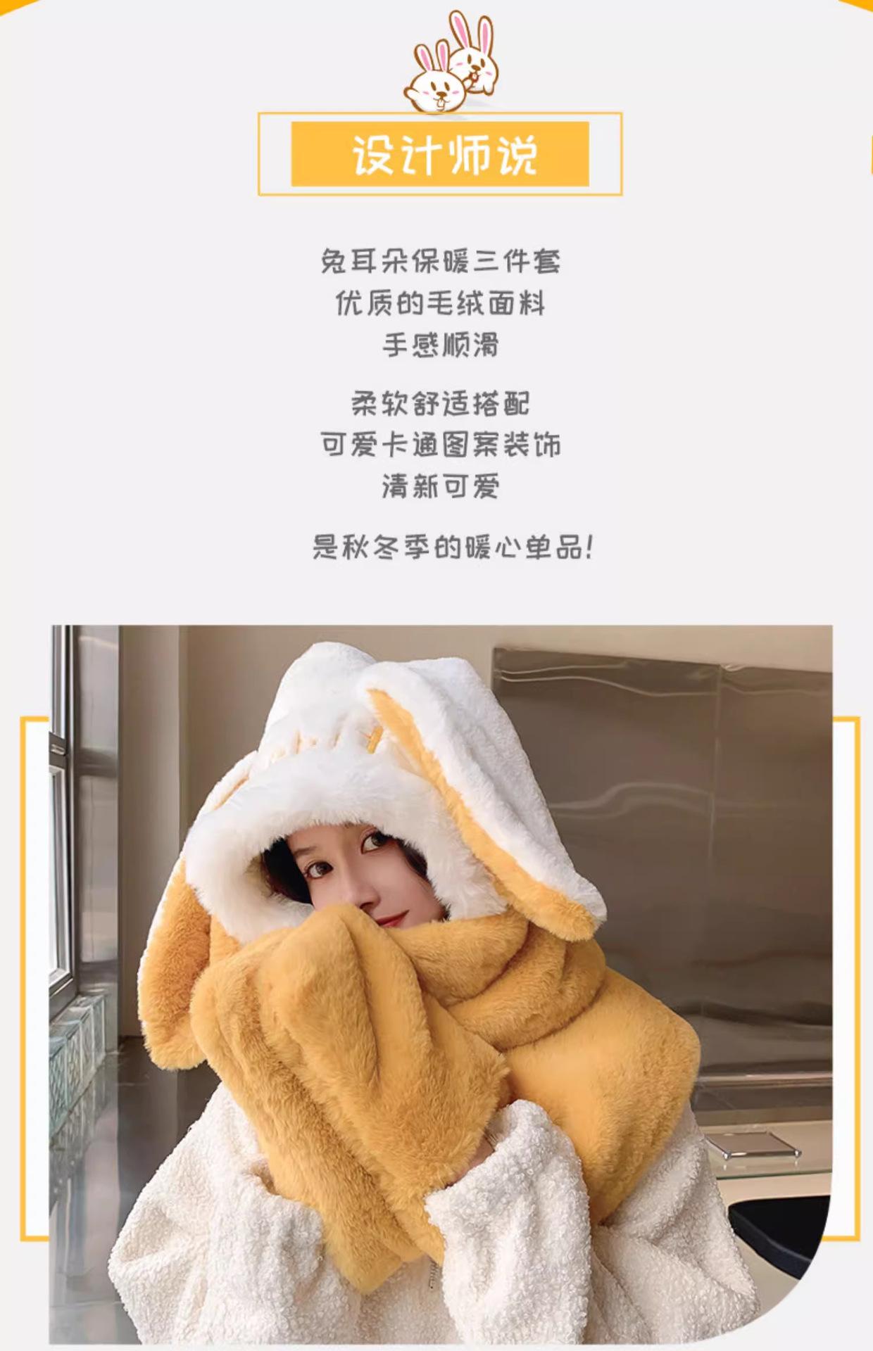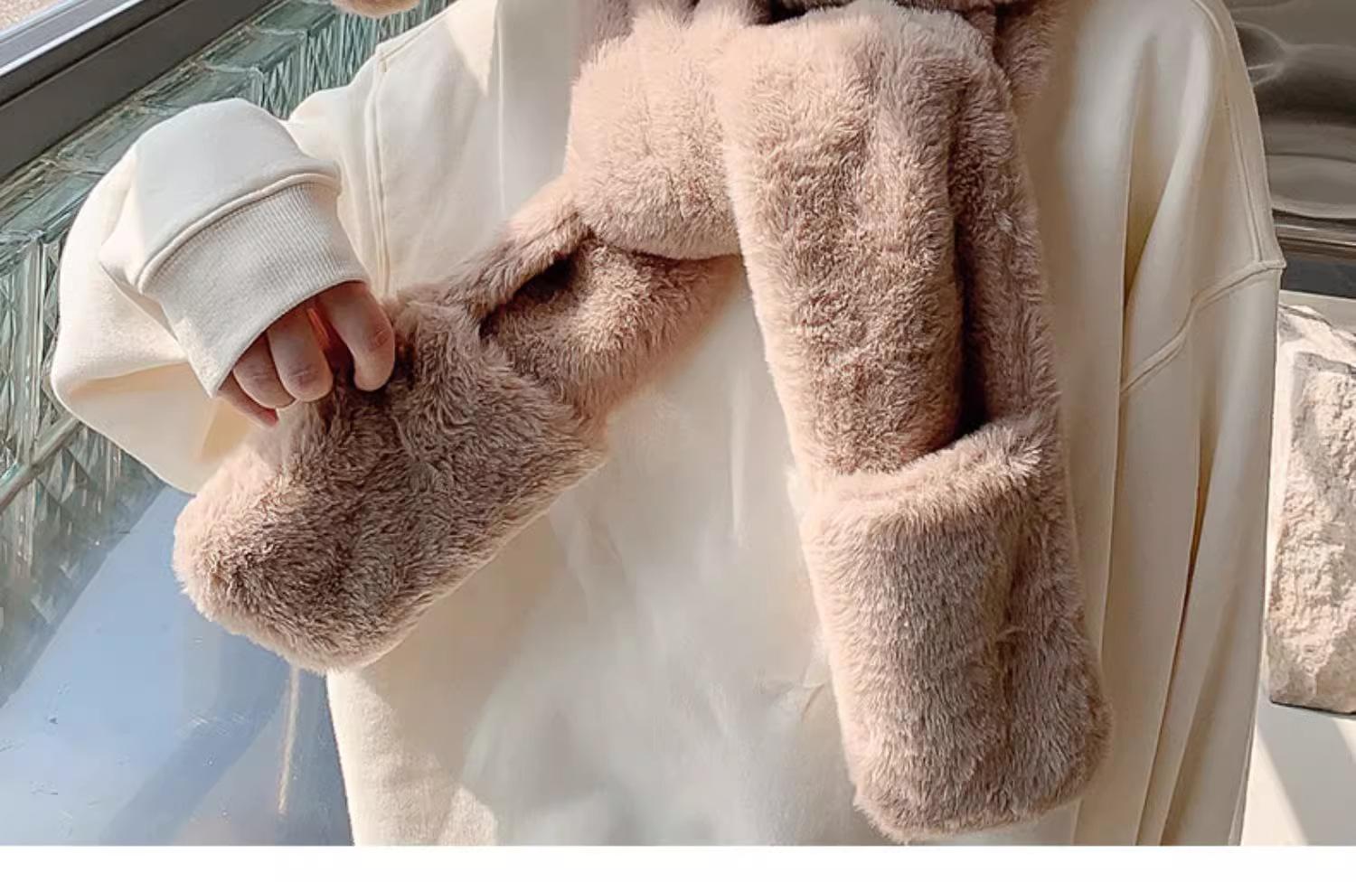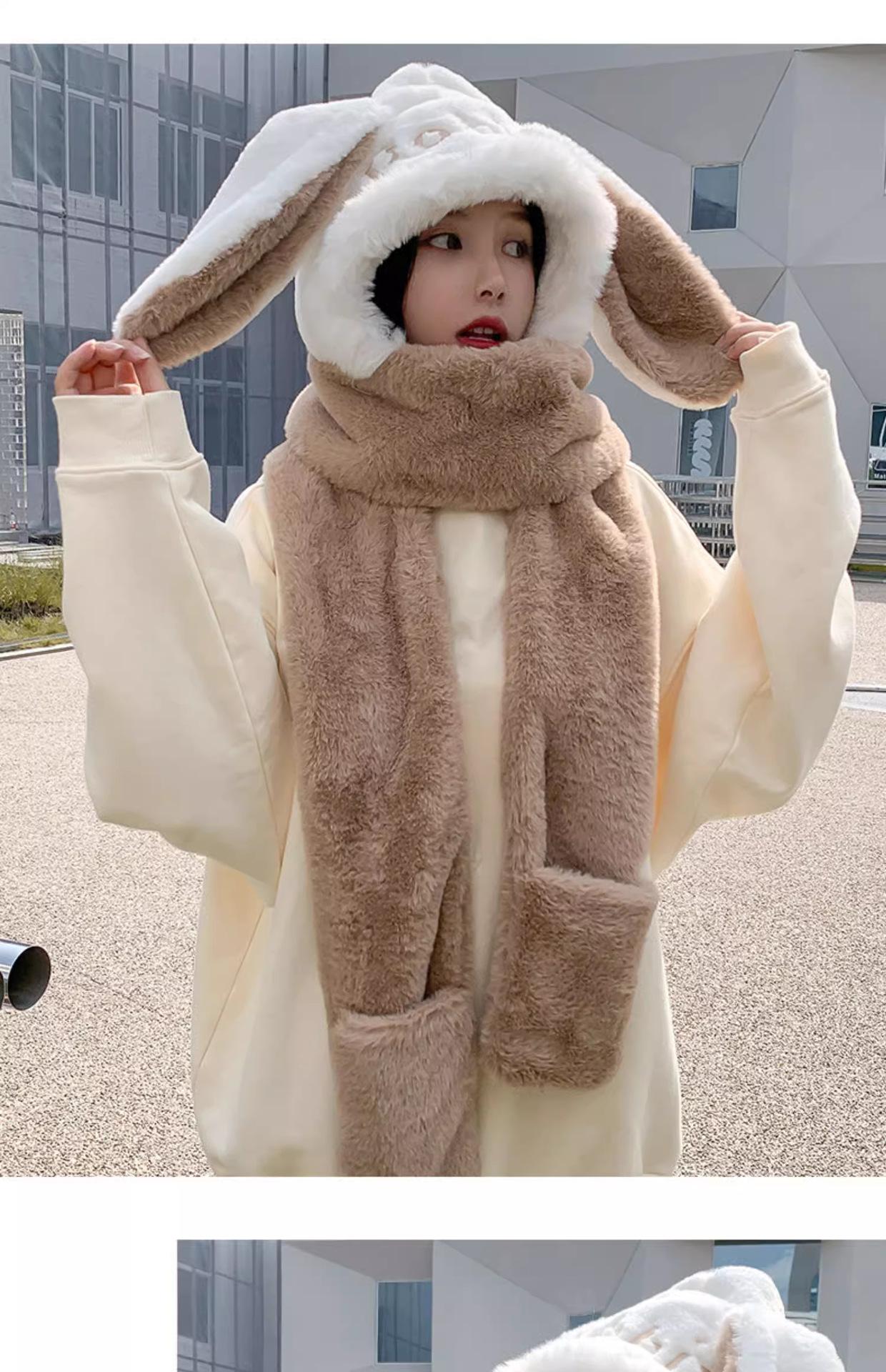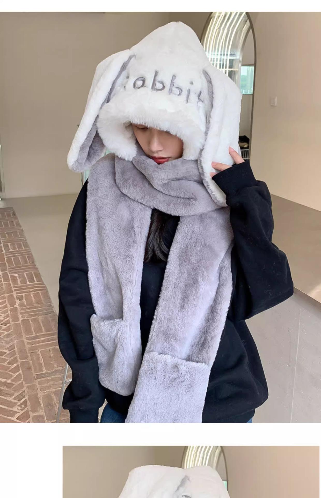 Guantes de cuello de una pieza gruesos y cálidos con orejas grandes de conejo para padres e hijos, gorro de invierno de tres piezas con protección para las orejas para mujer