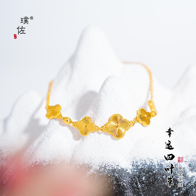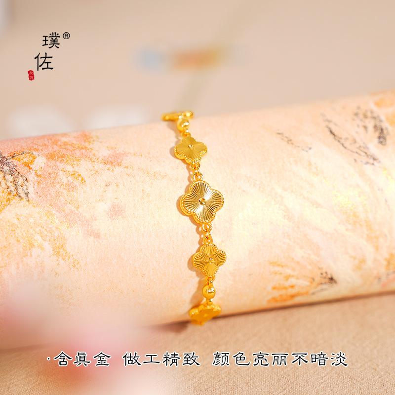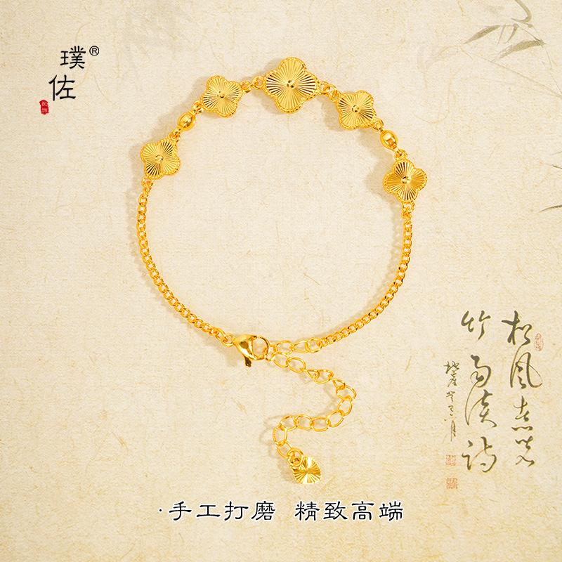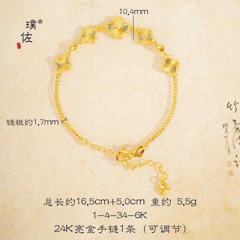 Joyería de oro con pulsera de cinco flores de oro brillante 24K con láser, pulsera de trébol de cuatro hojas, pulsera de cuentas de transferencia súper brillantes, joyería para mujer