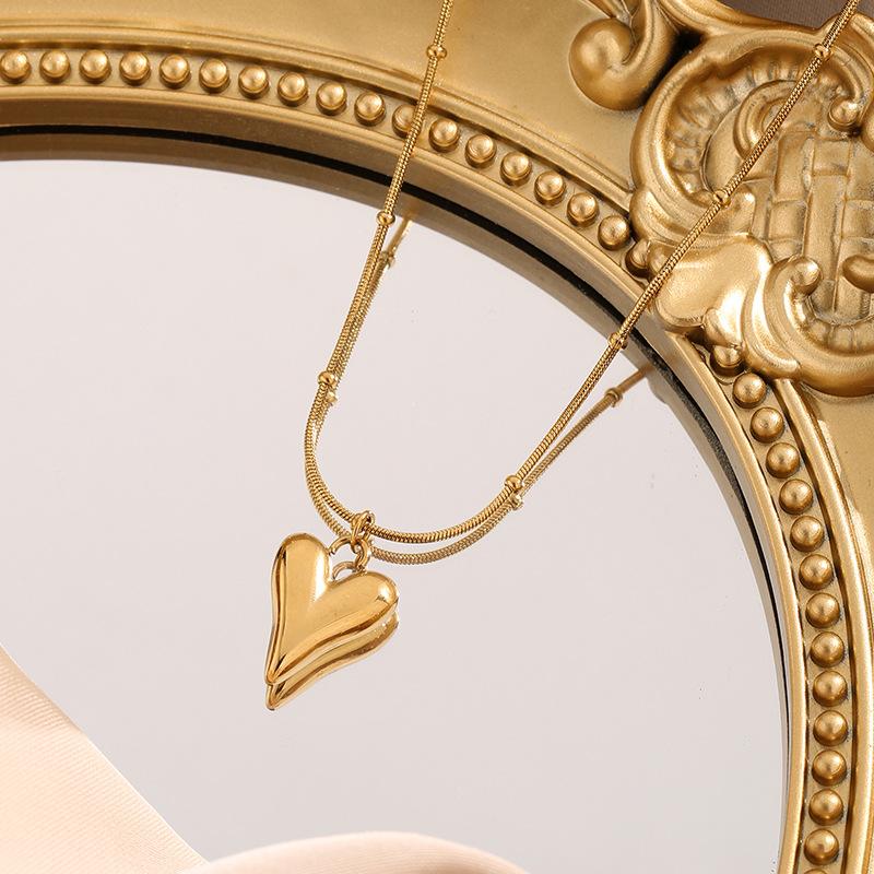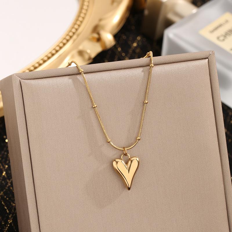 Collar de corazón de amor de lujo ligero de acero de titanio para mujer, elegante, popular en Internet, estilo simple y frío, cadena de clavícula, diseño de nicho, para novias a la moda.