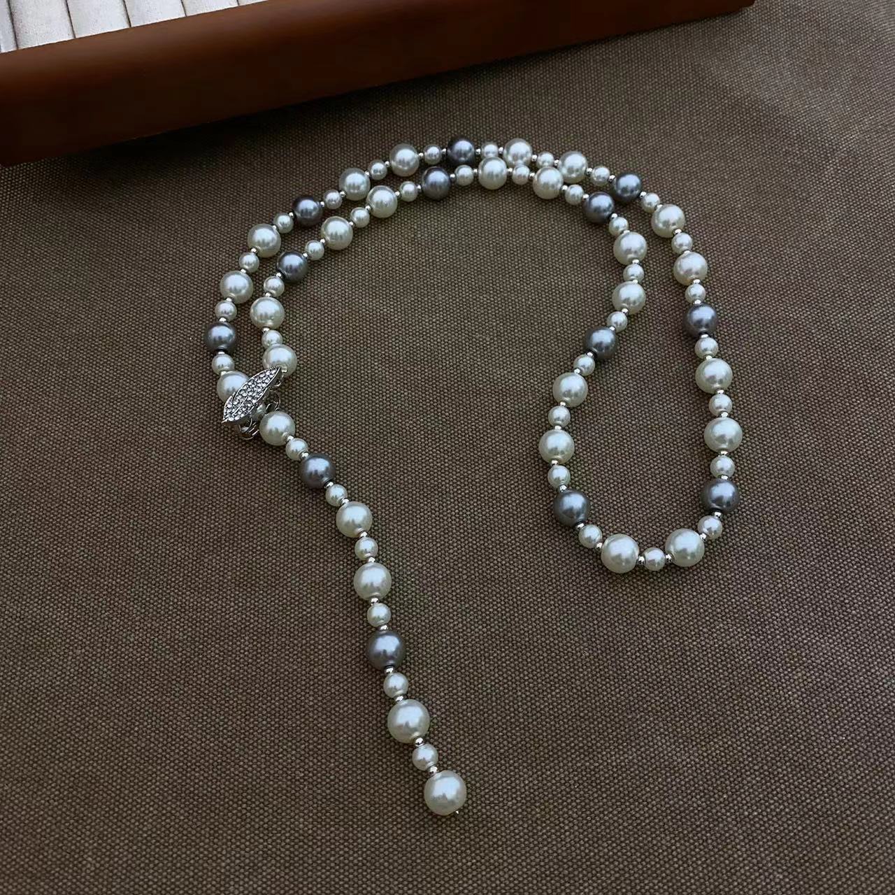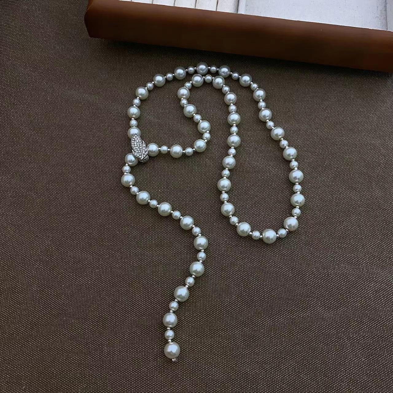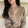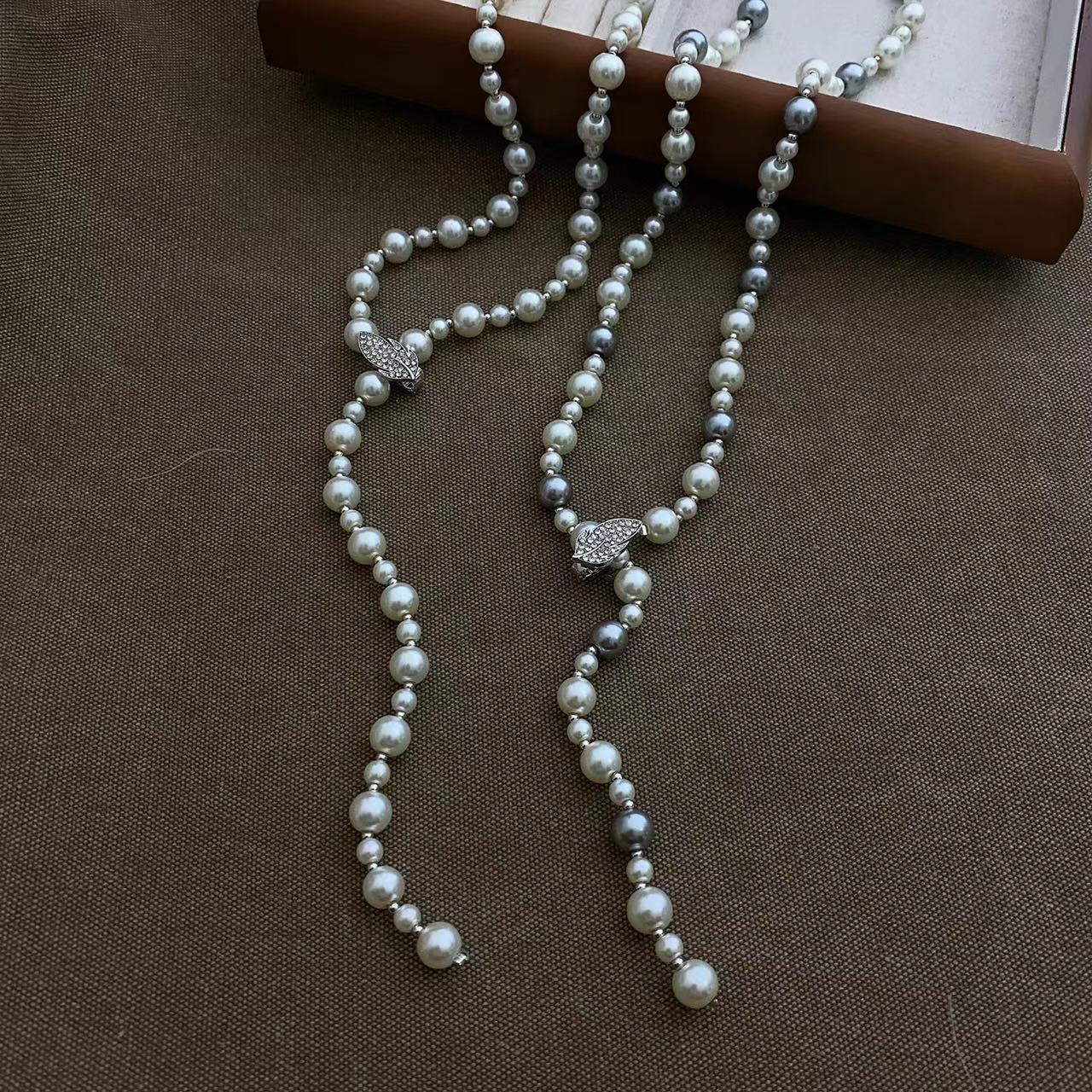 Collar largo de perlas de nuevo estilo para mujer, cadena de lana con perlas de hoja de árbol de alta gama, elegante, combina con todo, accesorios de otoño e invierno.