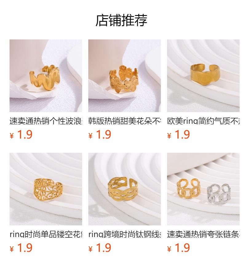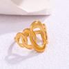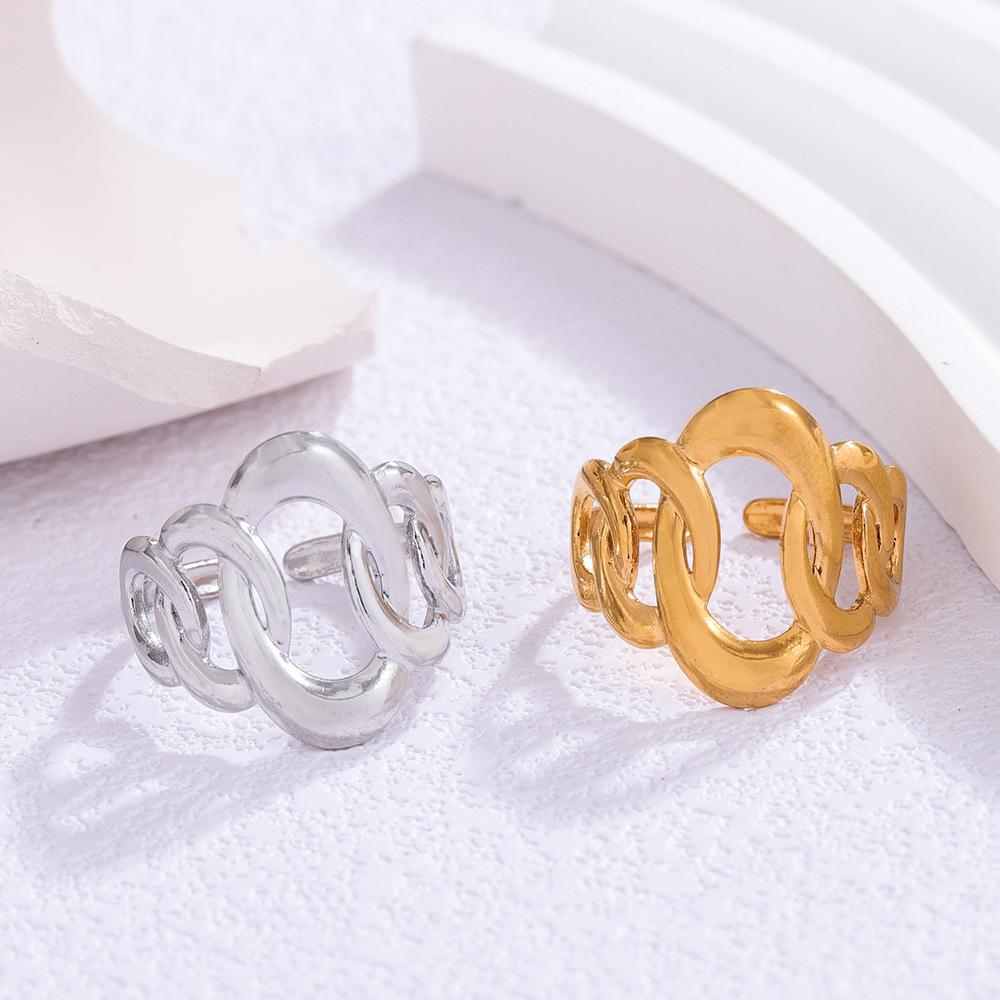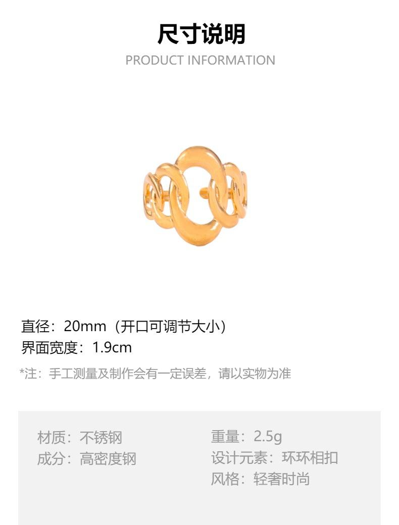 Anillo abierto de acero de titanio con diseño creativo de lujo, ligero y europeo y americano, para mujer, de nicho de moda, chapado en oro, de acero inoxidable con retención de color.