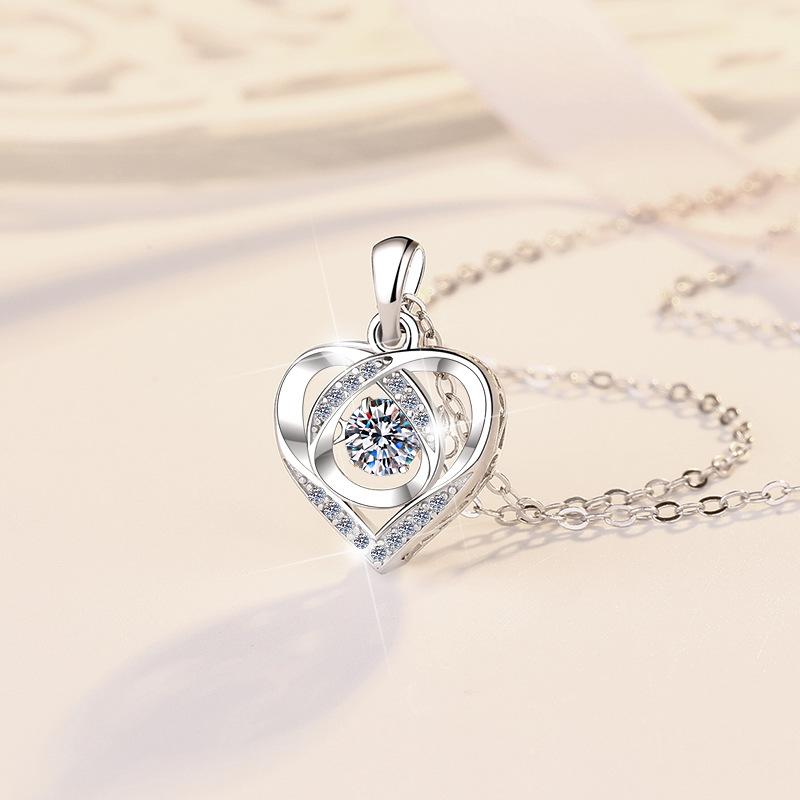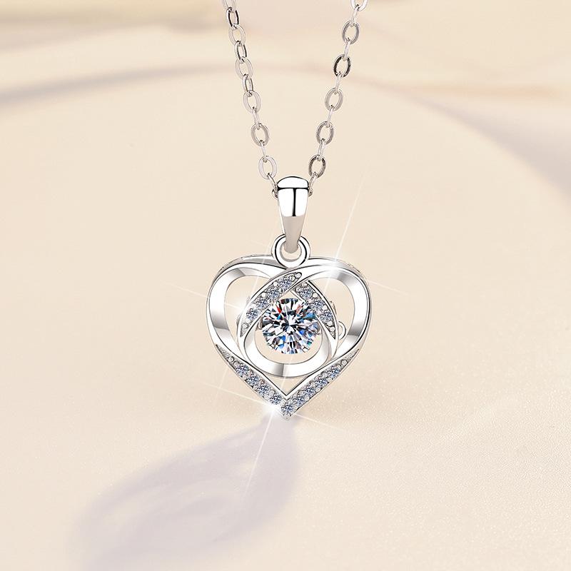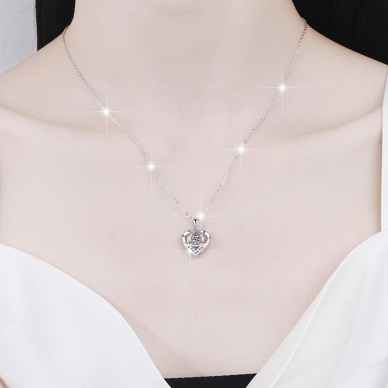 Collar de Plata Esterlina S925 Moda para Mujer Colgante de Moissanita Colorida en Forma de Corazón Latiente Cadena Clavicular Joyería de Plata Venta al por Mayor Transfronteriza