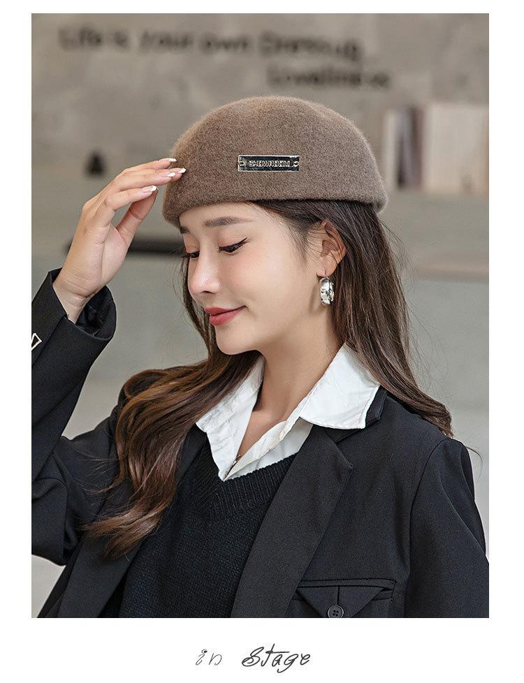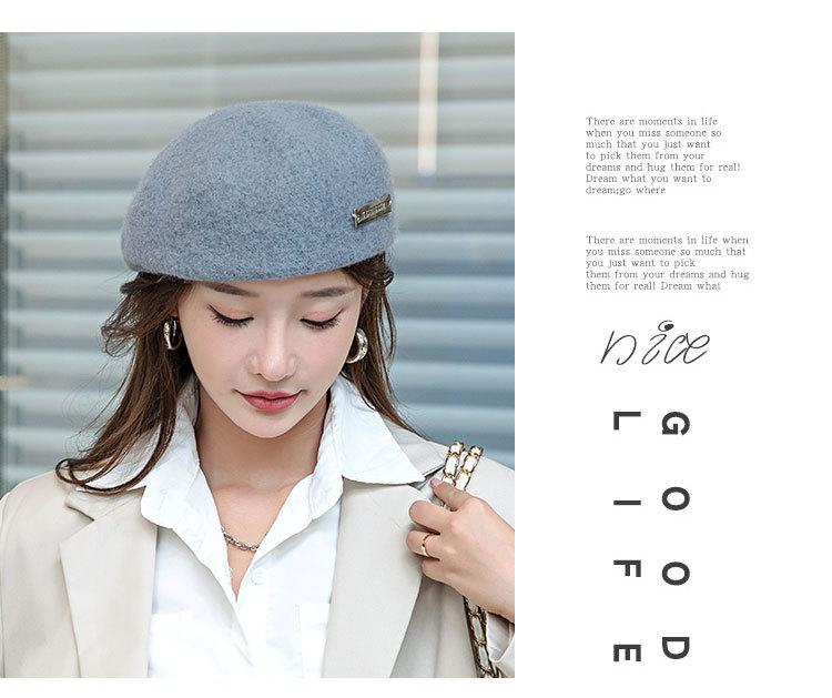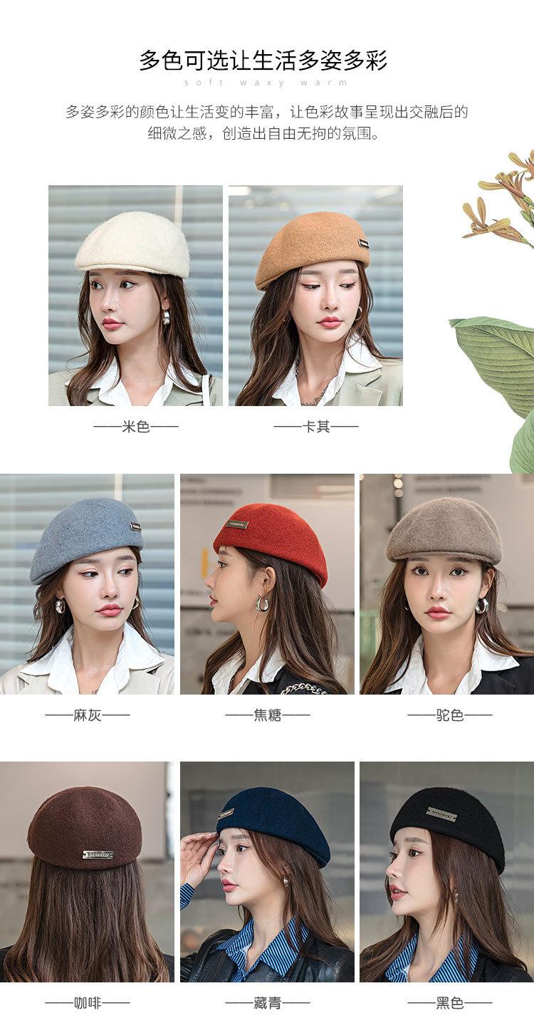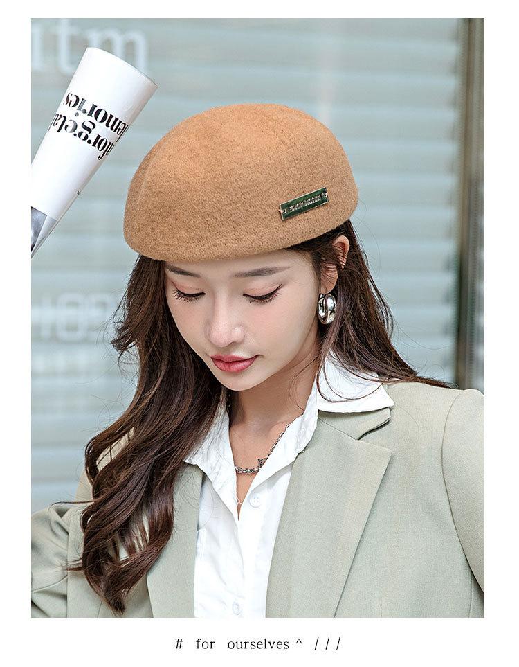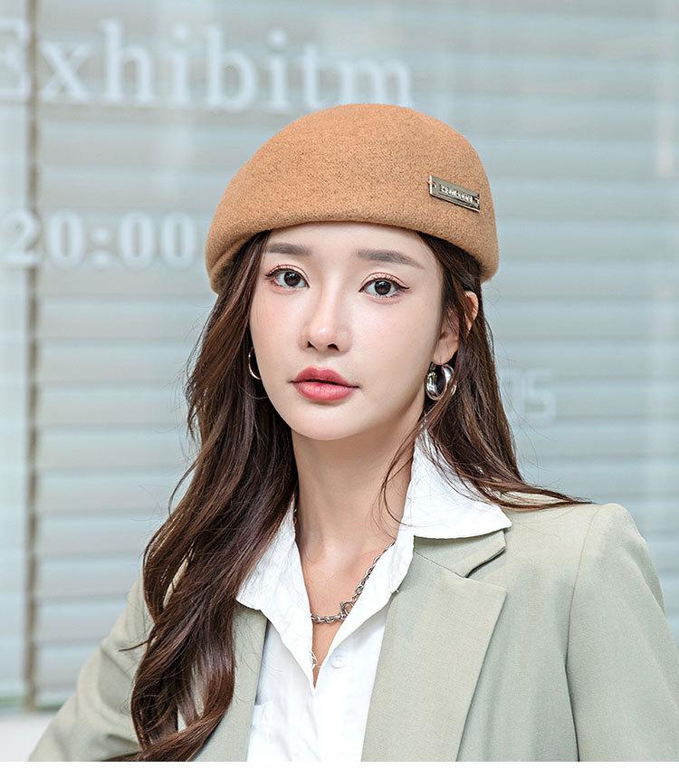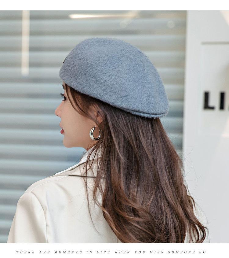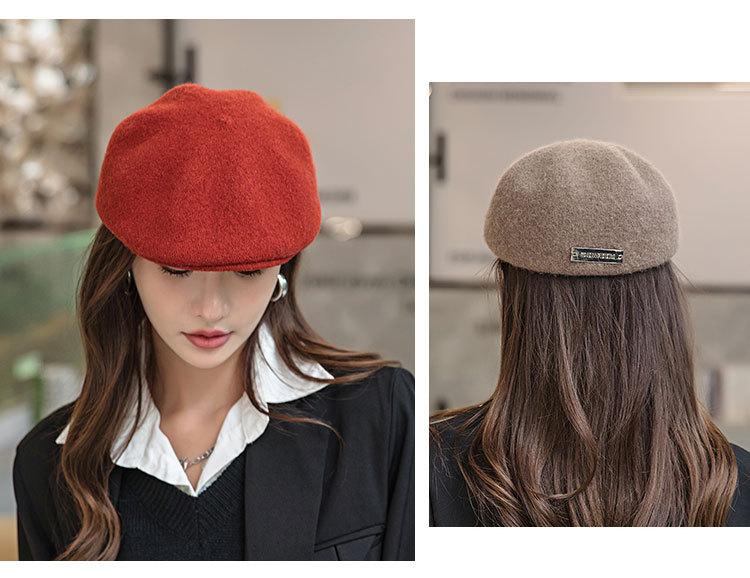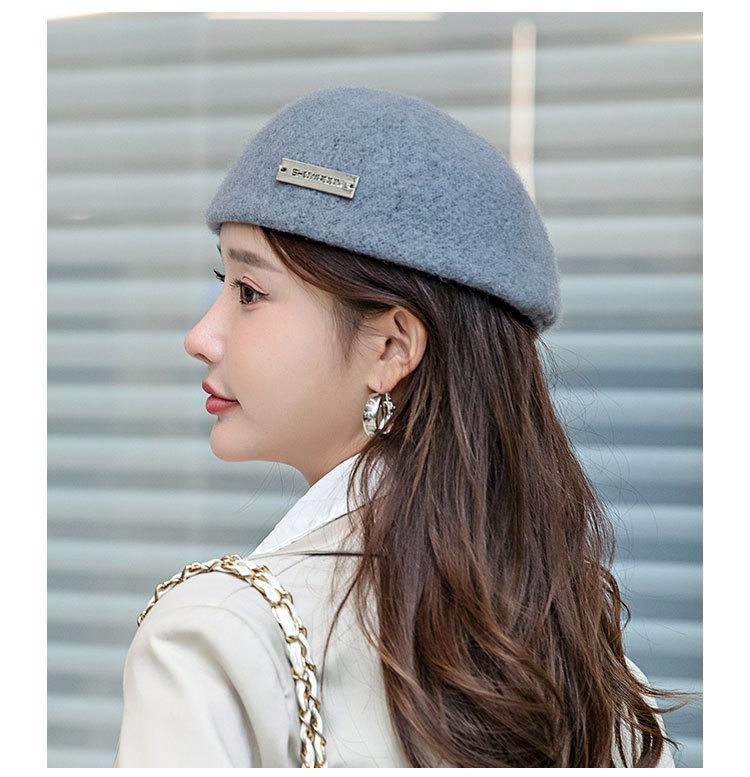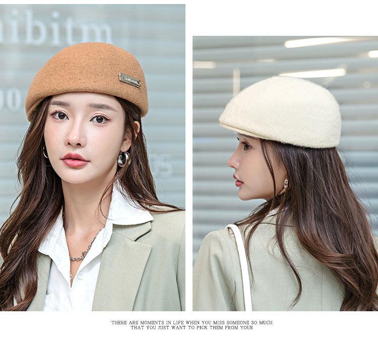 Boina de lana de otoño e invierno para mujer, estilo británico, retro, de color liso, estilo pintor japonés, venta al por mayor