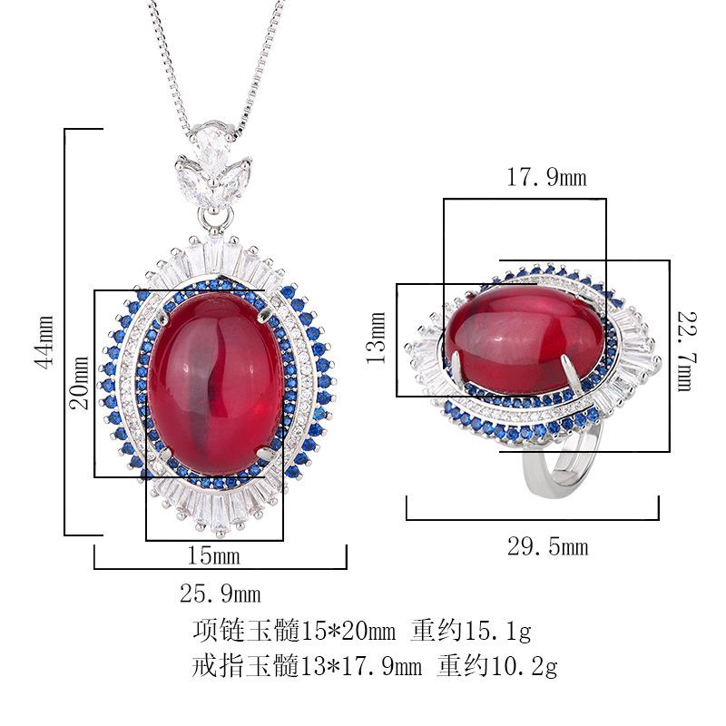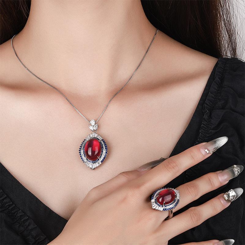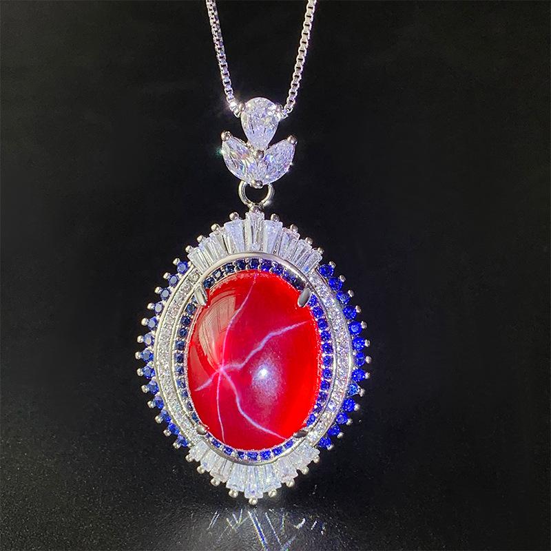 Red corundum six-pointed star light pendant with chain, Red corundum six-pointed star light ring