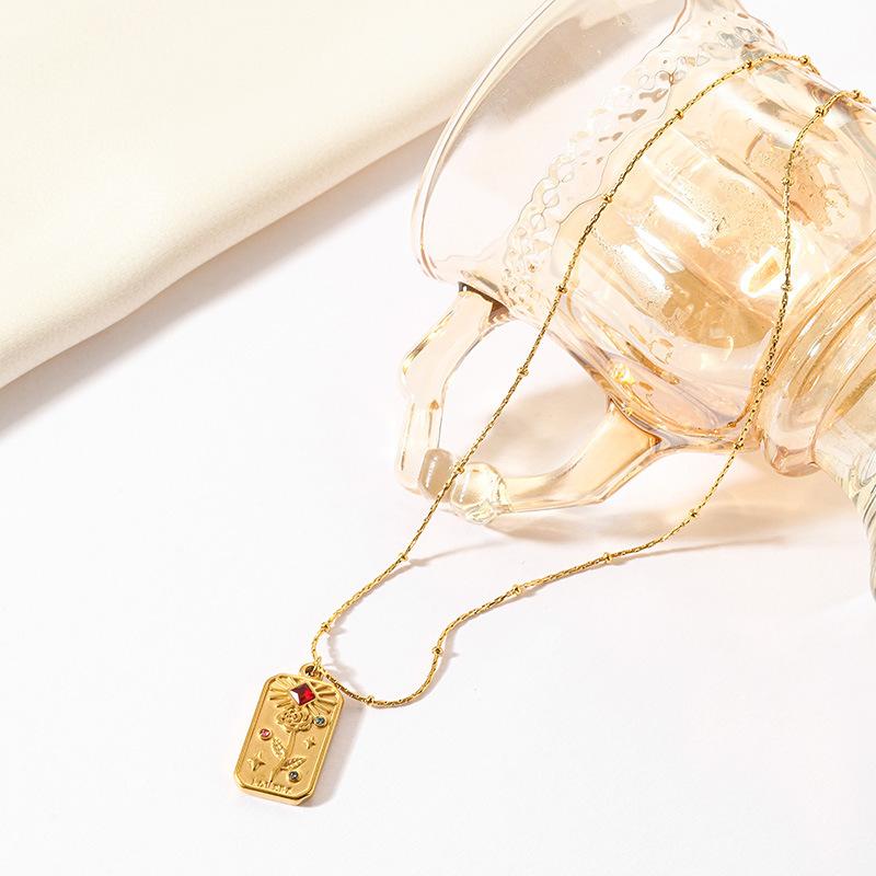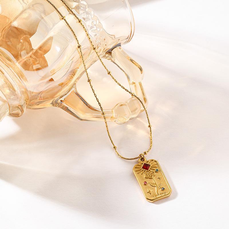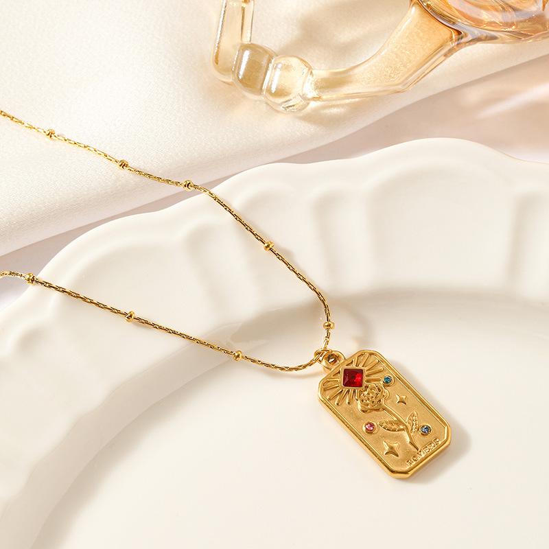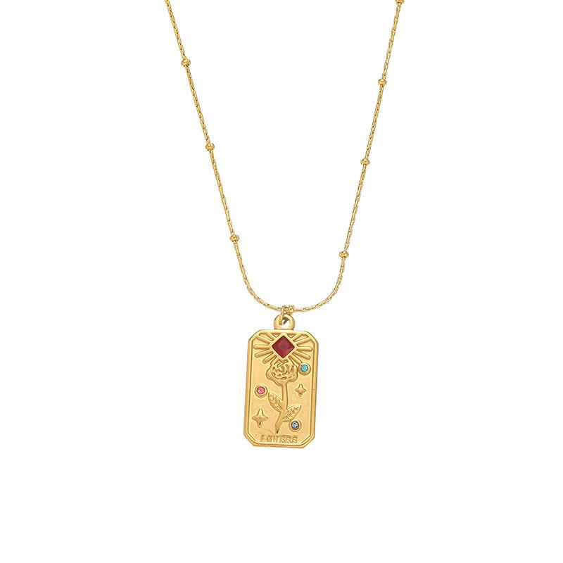Collar Europeo y Americano Simple Cuadrado Marca Estrella Luna Acero Titanio Diamante Palma Flor Todo Combinable Lazo Camiseta Cadena Clavícula Nuevo