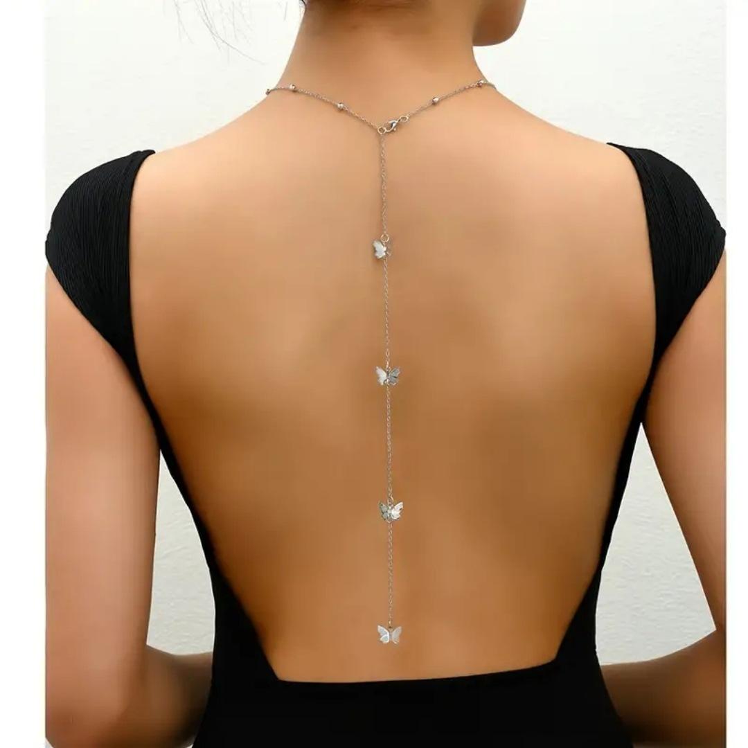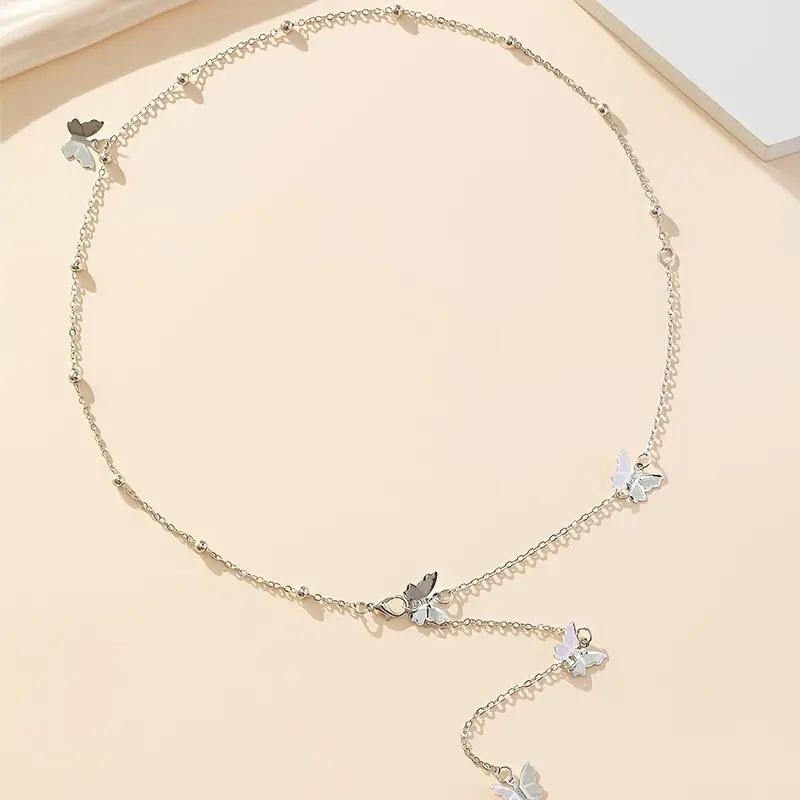 Joyería transfronteriza europea y americana, moda, borla de mariposa, cadena trasera sexy, collar largo simple para mujer, collar de cadena de clavícula con animal