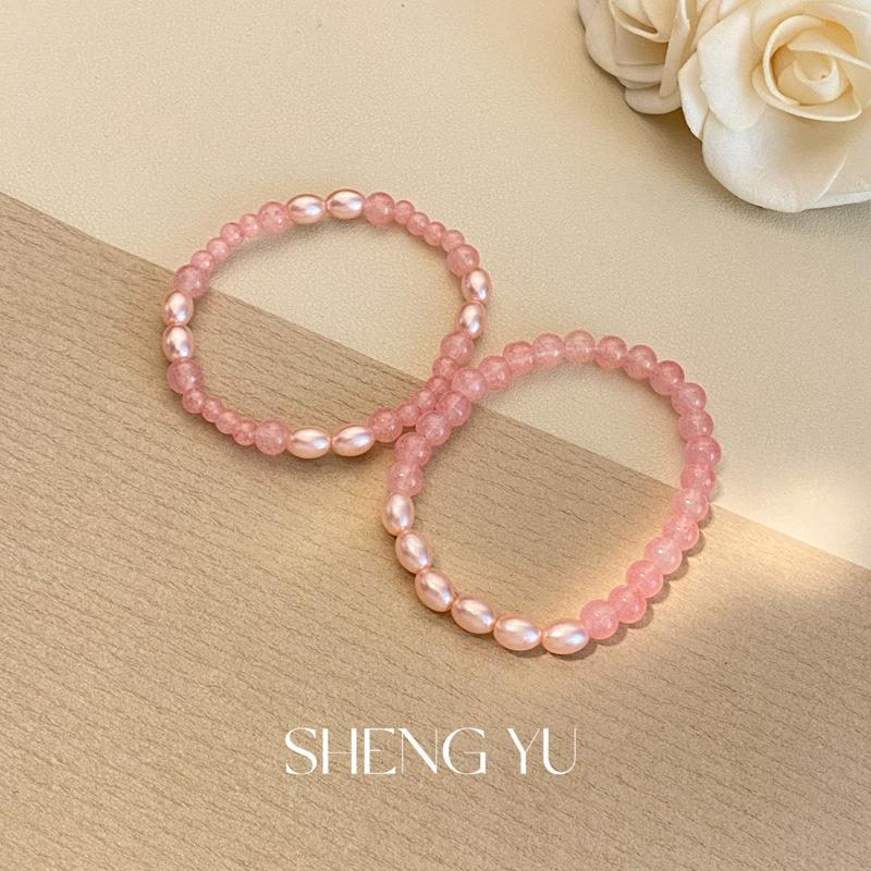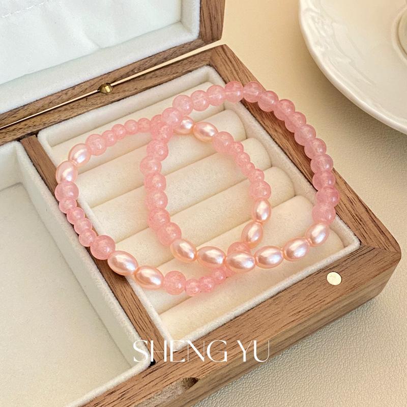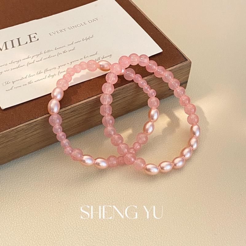 Pulsera Nueva 2024 Estilo Simple Dulce Perla Imitación Cristal de Fresa Exquisita Lujo Ligero Nicho Único Pulsera de Mujer