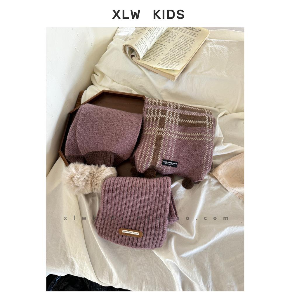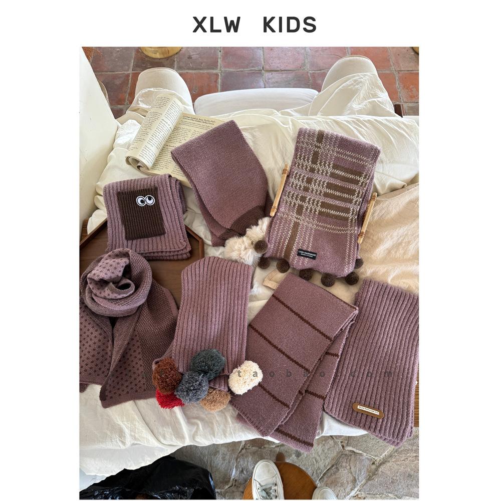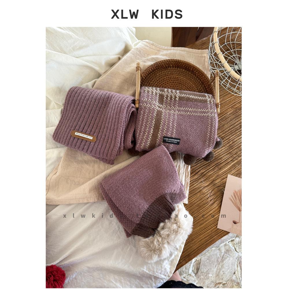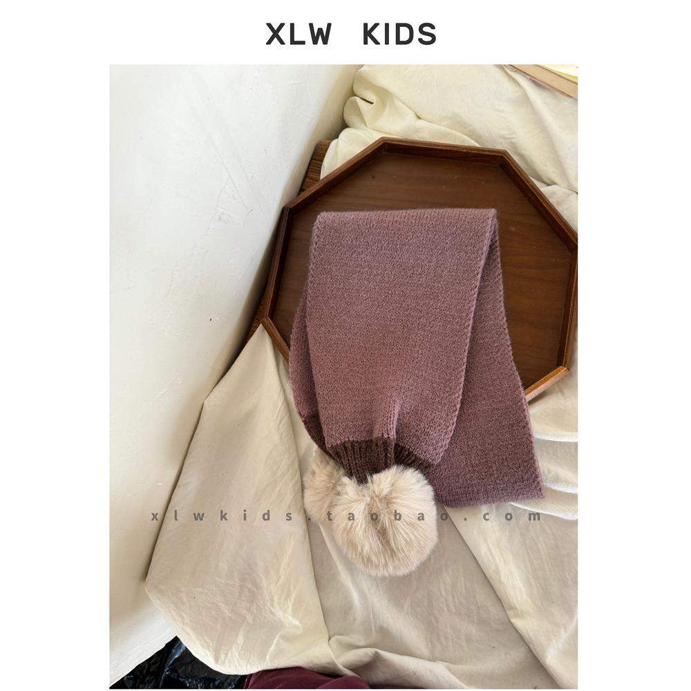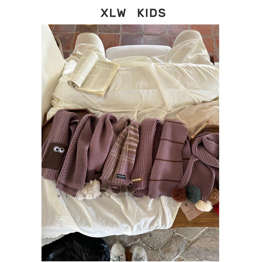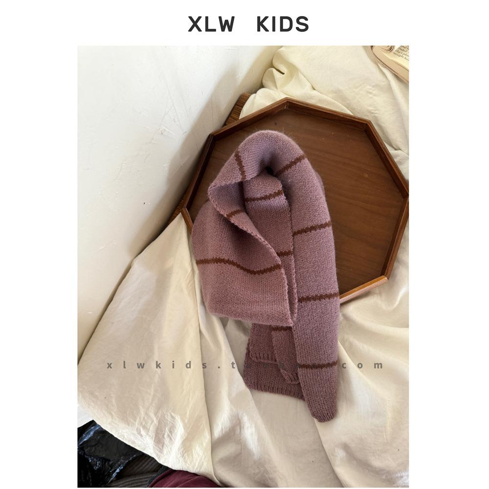 Piel morada ~ Bufanda infantil estilo ins coreano otoño e invierno para niños y niñas, gruesa, cálida, tejida, con combinación de colores, bufanda a prueba de frío