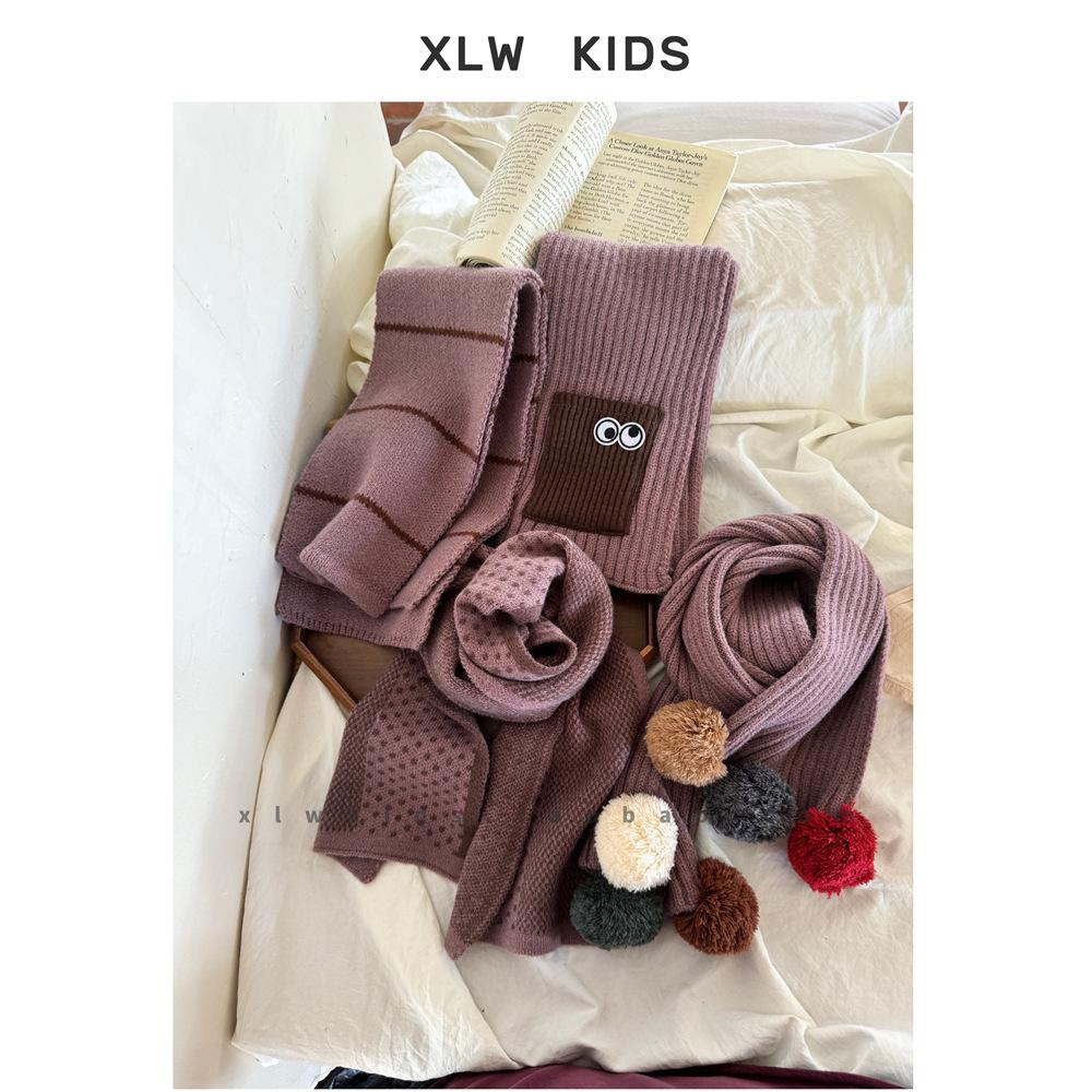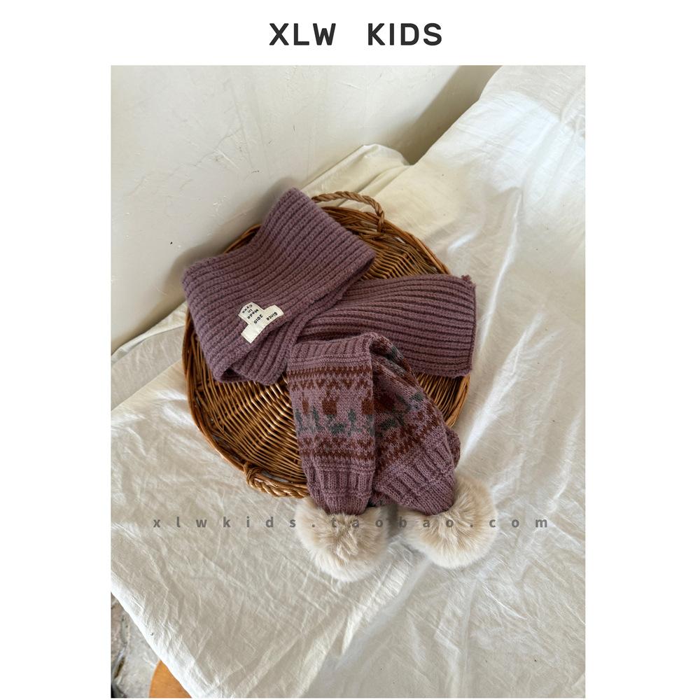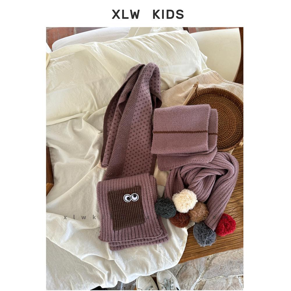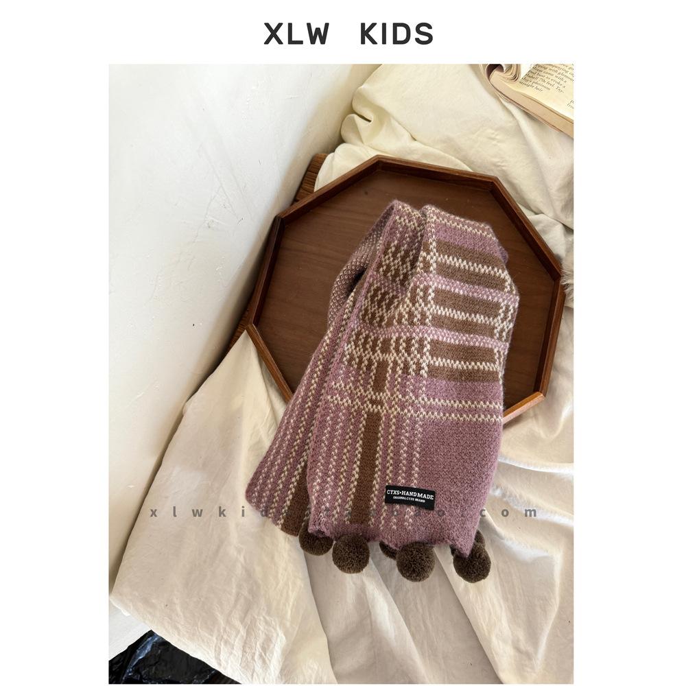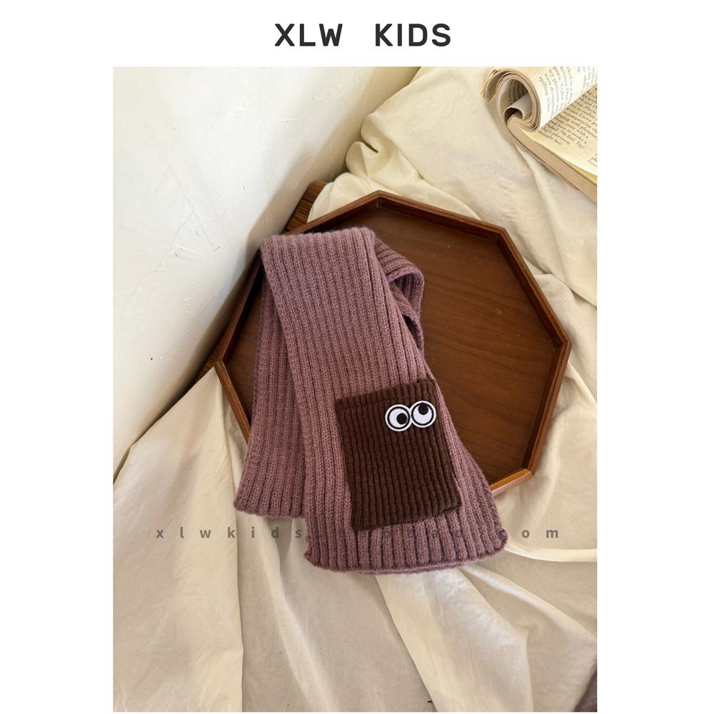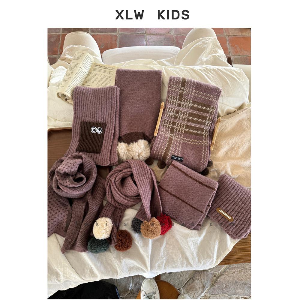 Piel morada ~ Bufanda infantil estilo ins coreano otoño e invierno para niños y niñas, gruesa, cálida, tejida, con combinación de colores, bufanda a prueba de frío