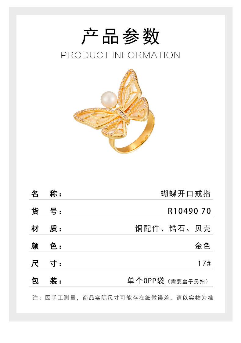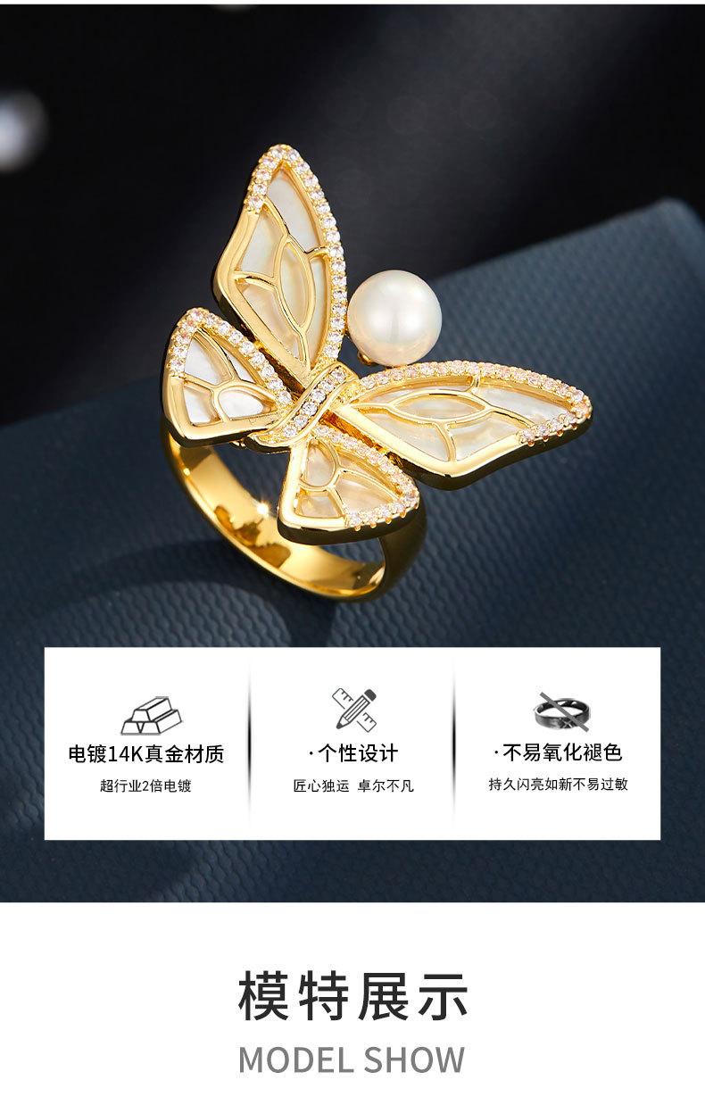 New hot selling ring ring, Mu yu open hollow butterfly mother-of-pearl ring