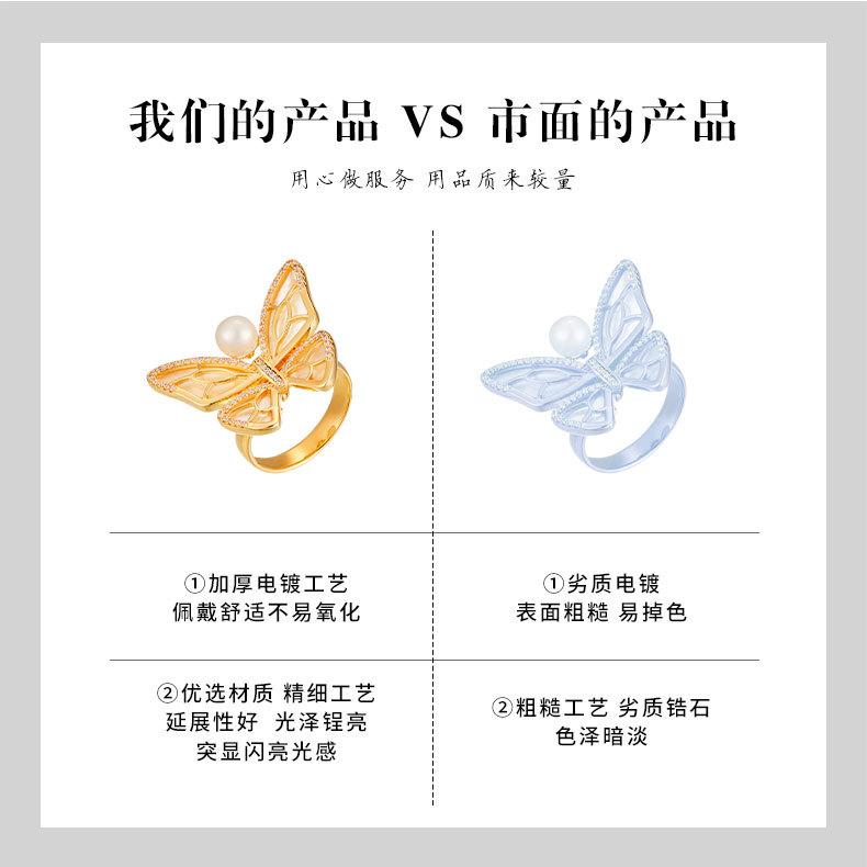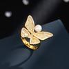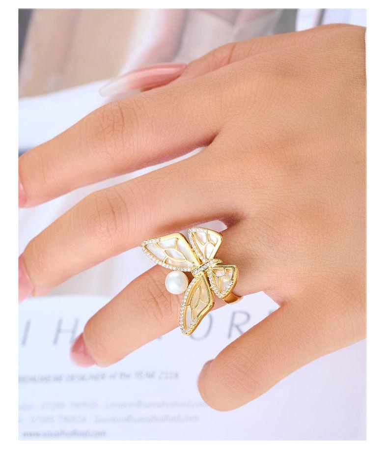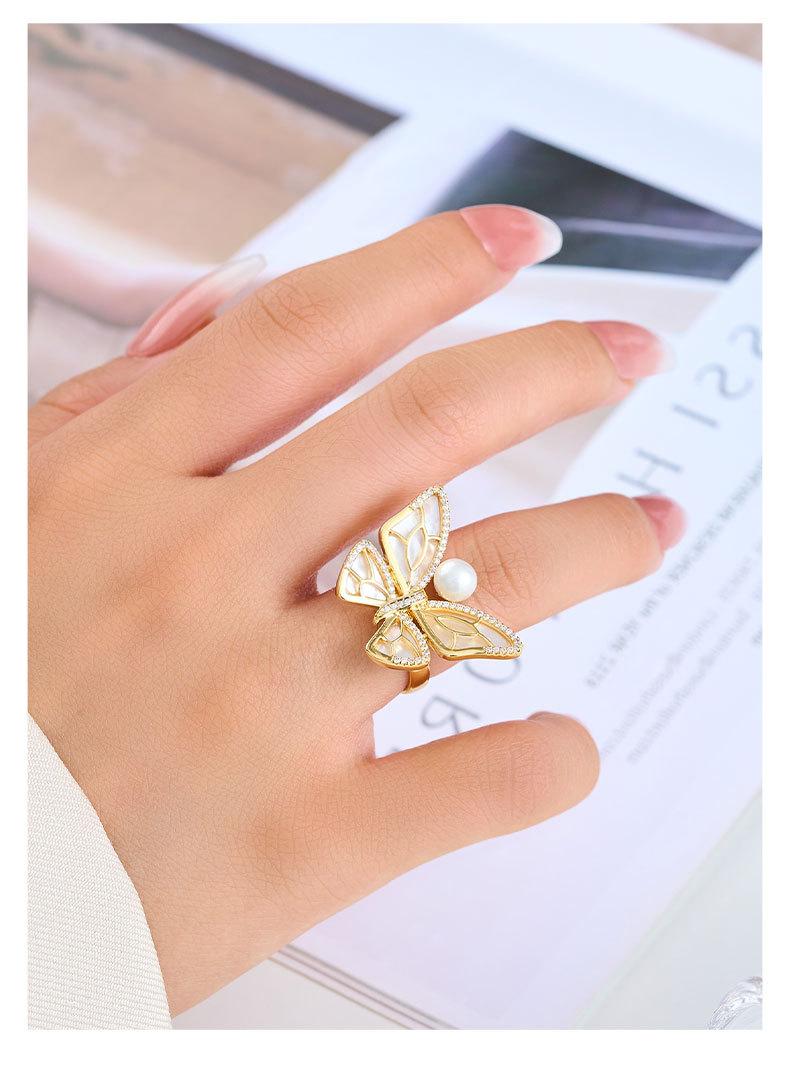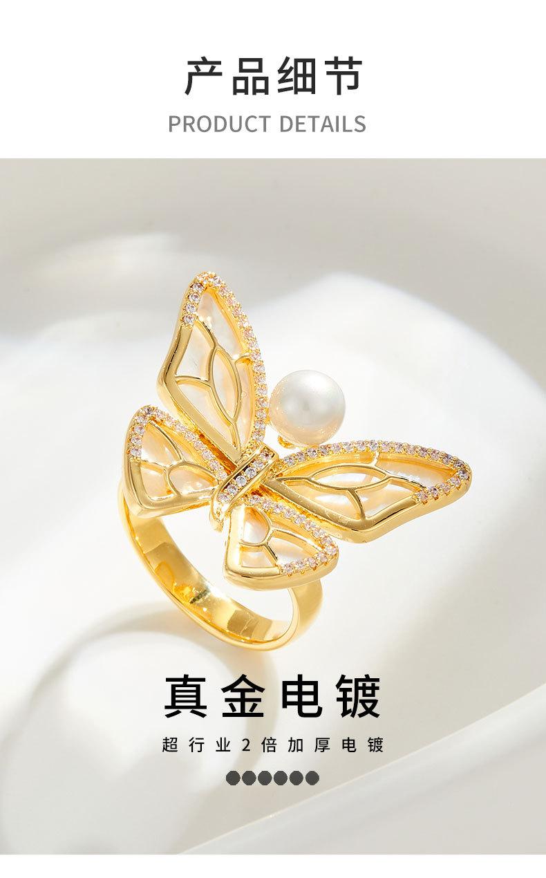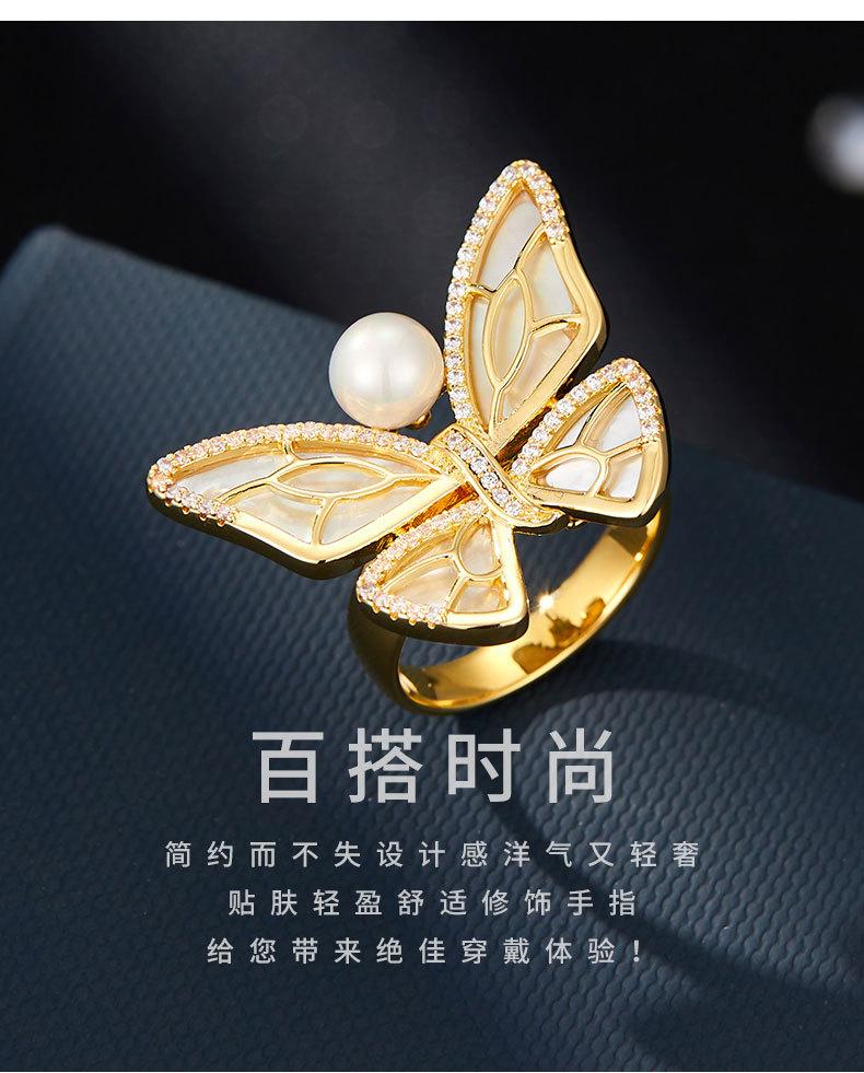 Anillo de Luz de Mariposa Hueca Abierta Lujo Sentido de Alta Gama Imitación Perla Insecto Anillo de Dedo Nuevo Anillo de Venta Caliente Anillo