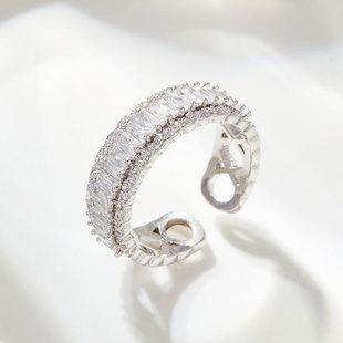 Anillo de circonio completo de alta gama europeo y americano brillante, anillo de dedo índice abierto micro-incrustado de alta gama a la moda, anillo nuevo ajustable