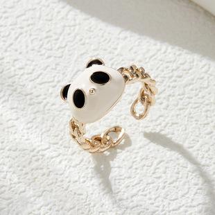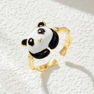 Anillo abierto de panda rojo lindo y encantador, moderno y creativo, anillo de dedo índice de animal pequeño con gota de aceite, nuevo anillo ajustable